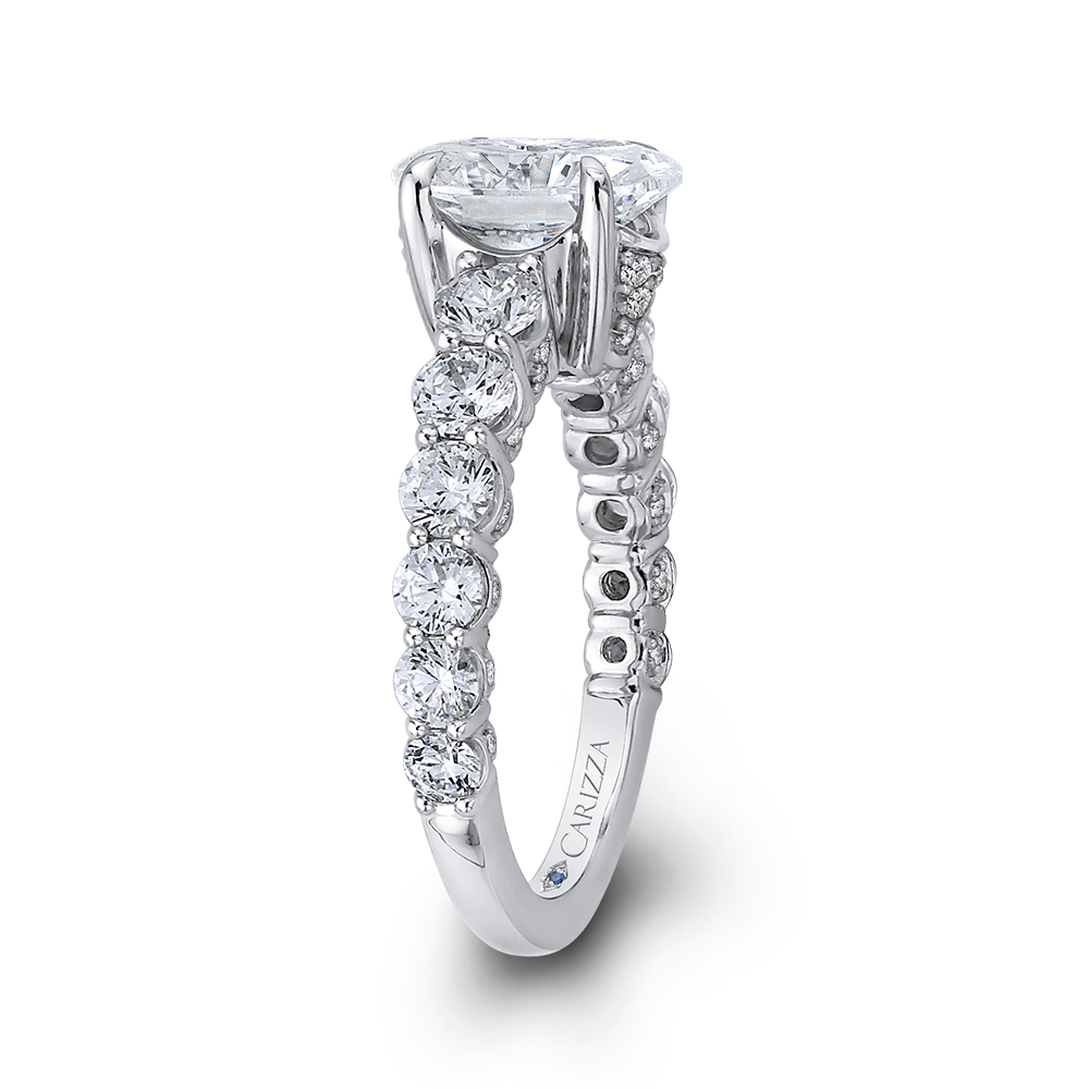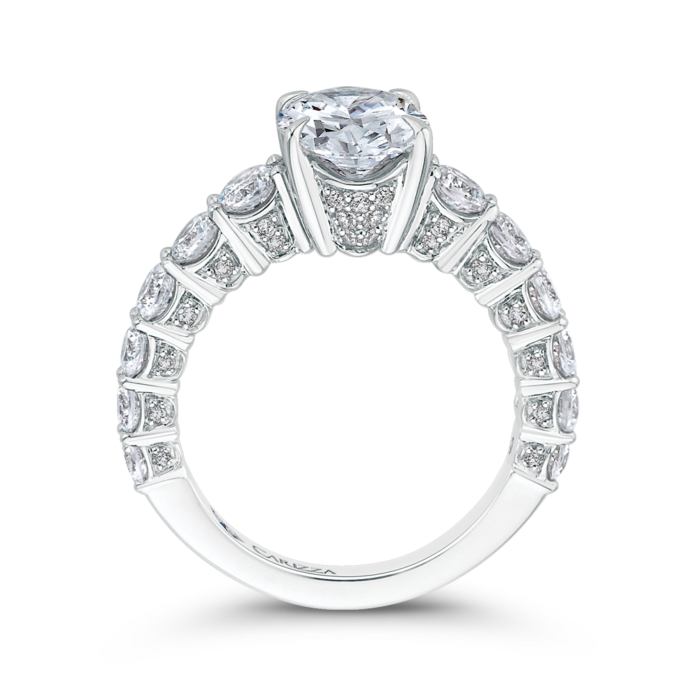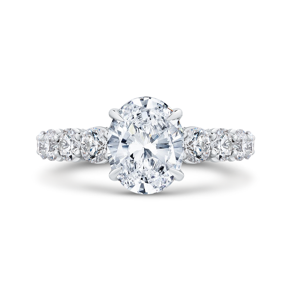 This exquisite oval cut diamond engagement ring in 14K white gold exudes timeless elegance and sophistication. The semi-mount setting allows you to choose the perfect center stone to symbolize your love and commitment. A stunning choice for a bride who appreciates classic beauty and impeccable craftsmanship.