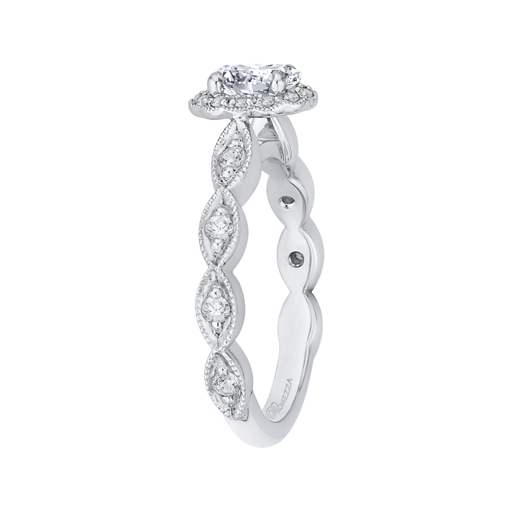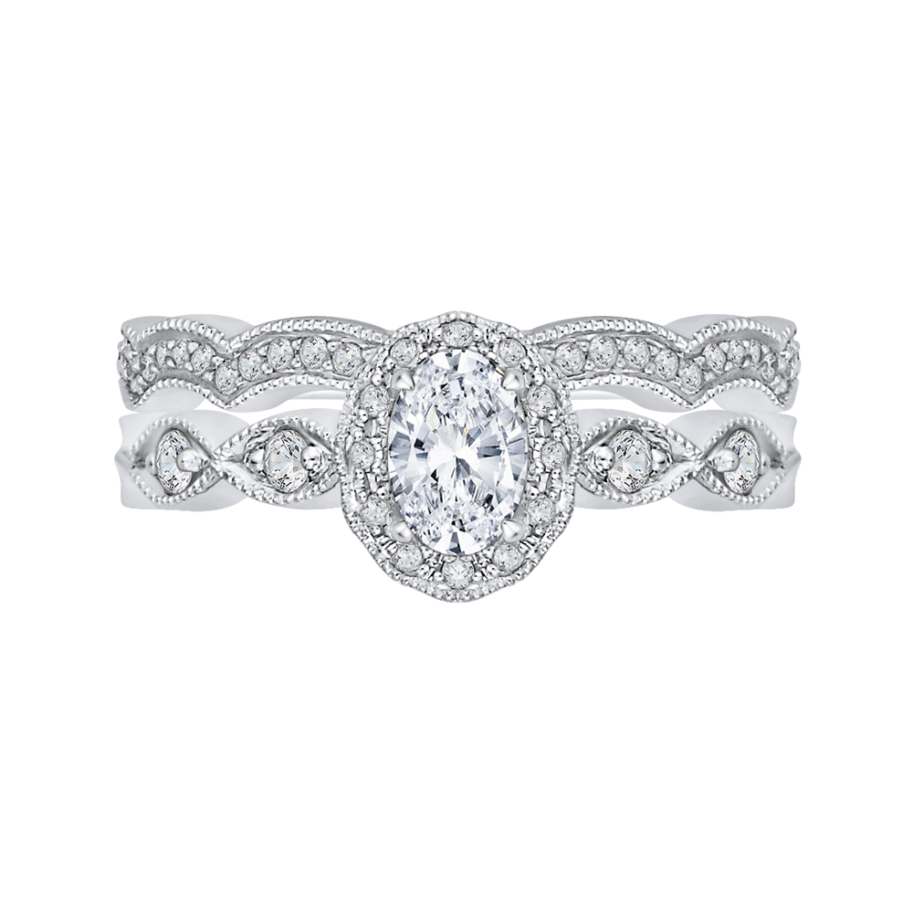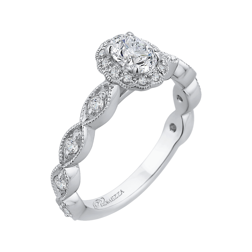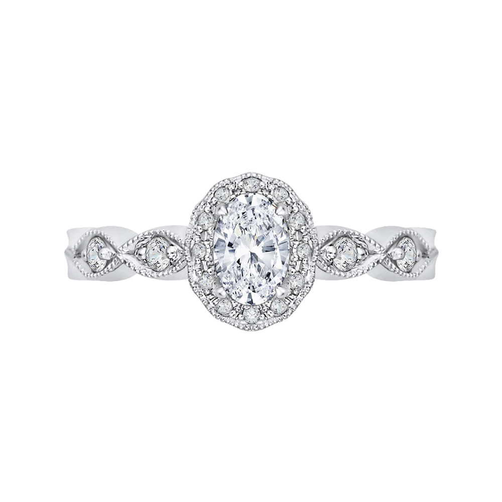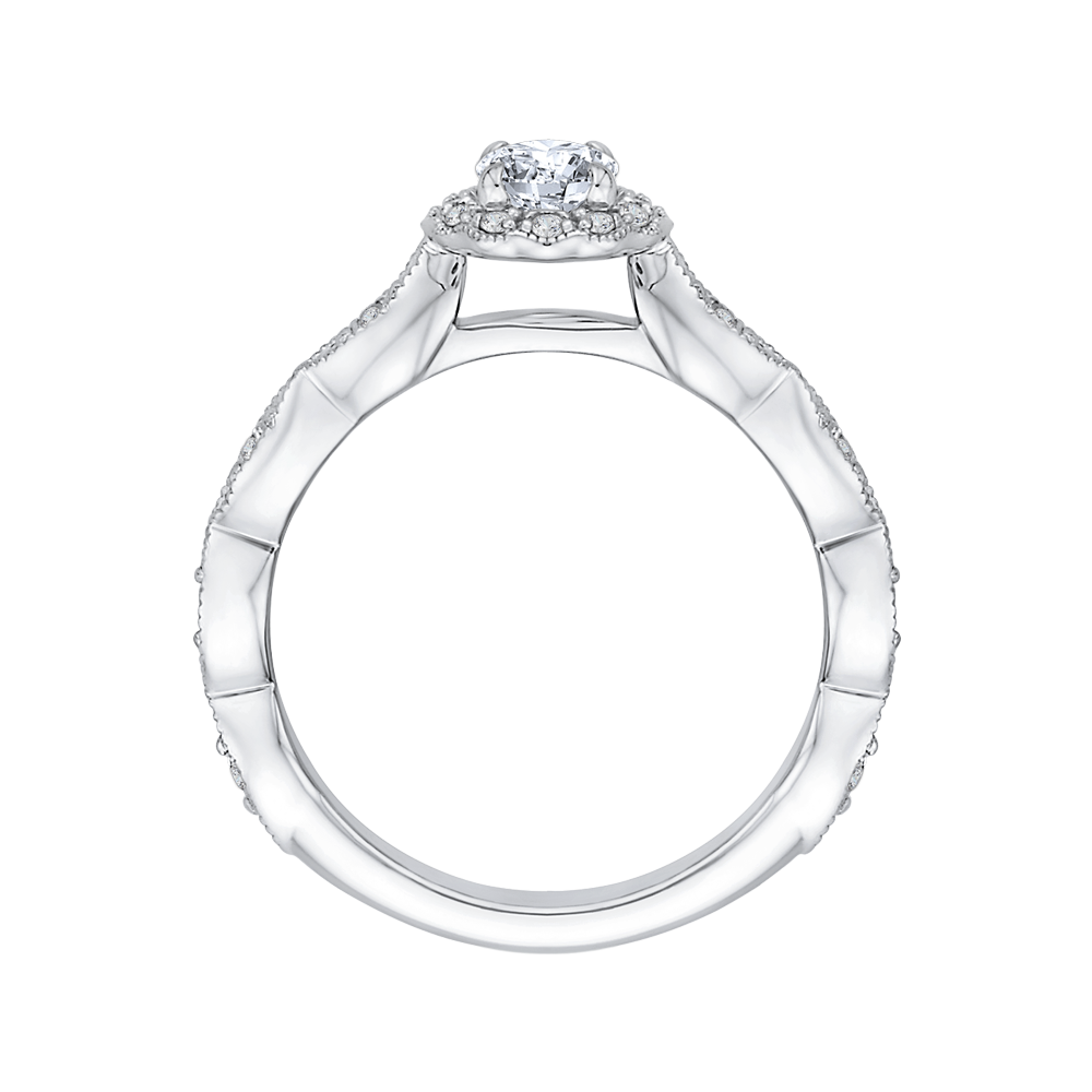 Oval Cut Diamond Halo Engagement Ring in 14K White Gold