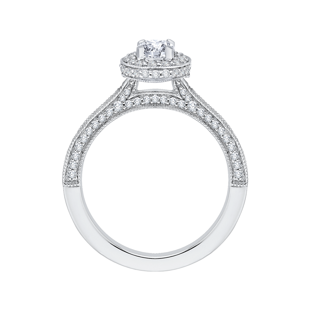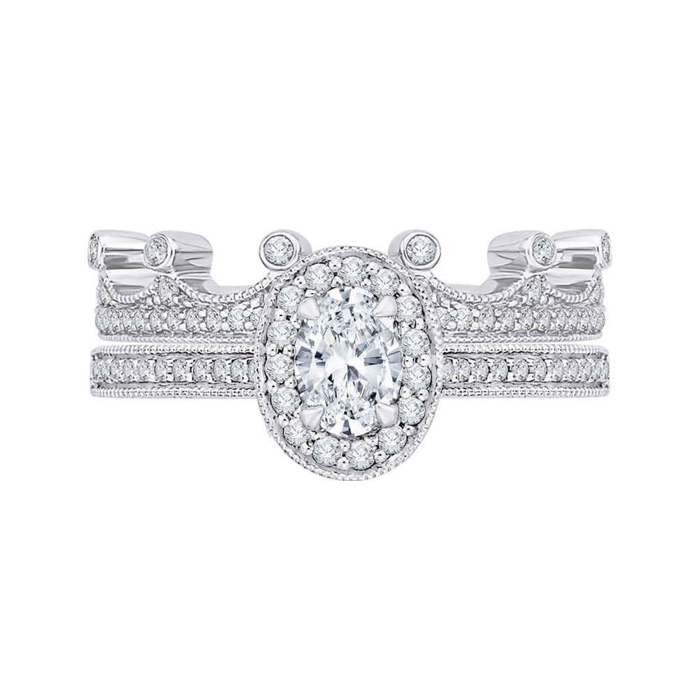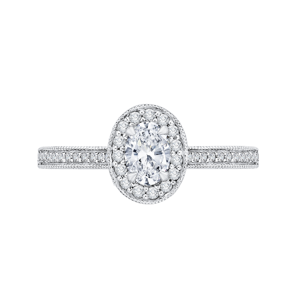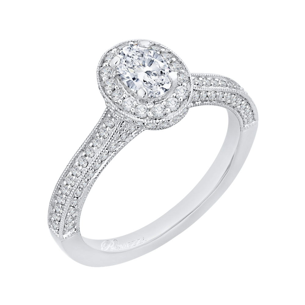 Oval Cut Diamond Halo Engagement Ring in 14K White Gold