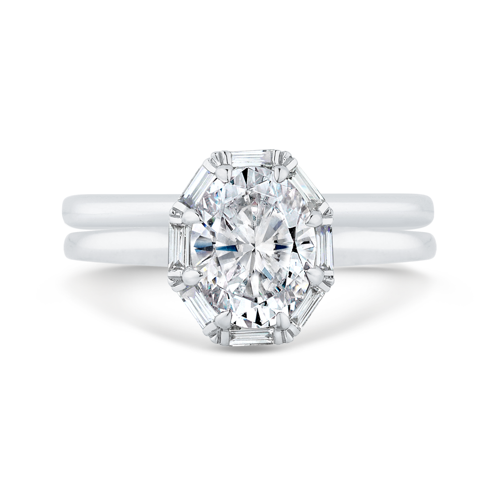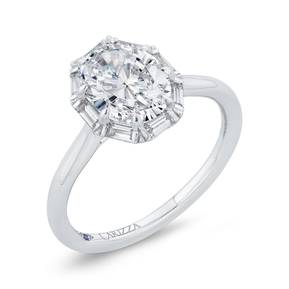 Oval Cut Diamond Halo Engagement Ring in 14K White Gold (Semi-Mount)