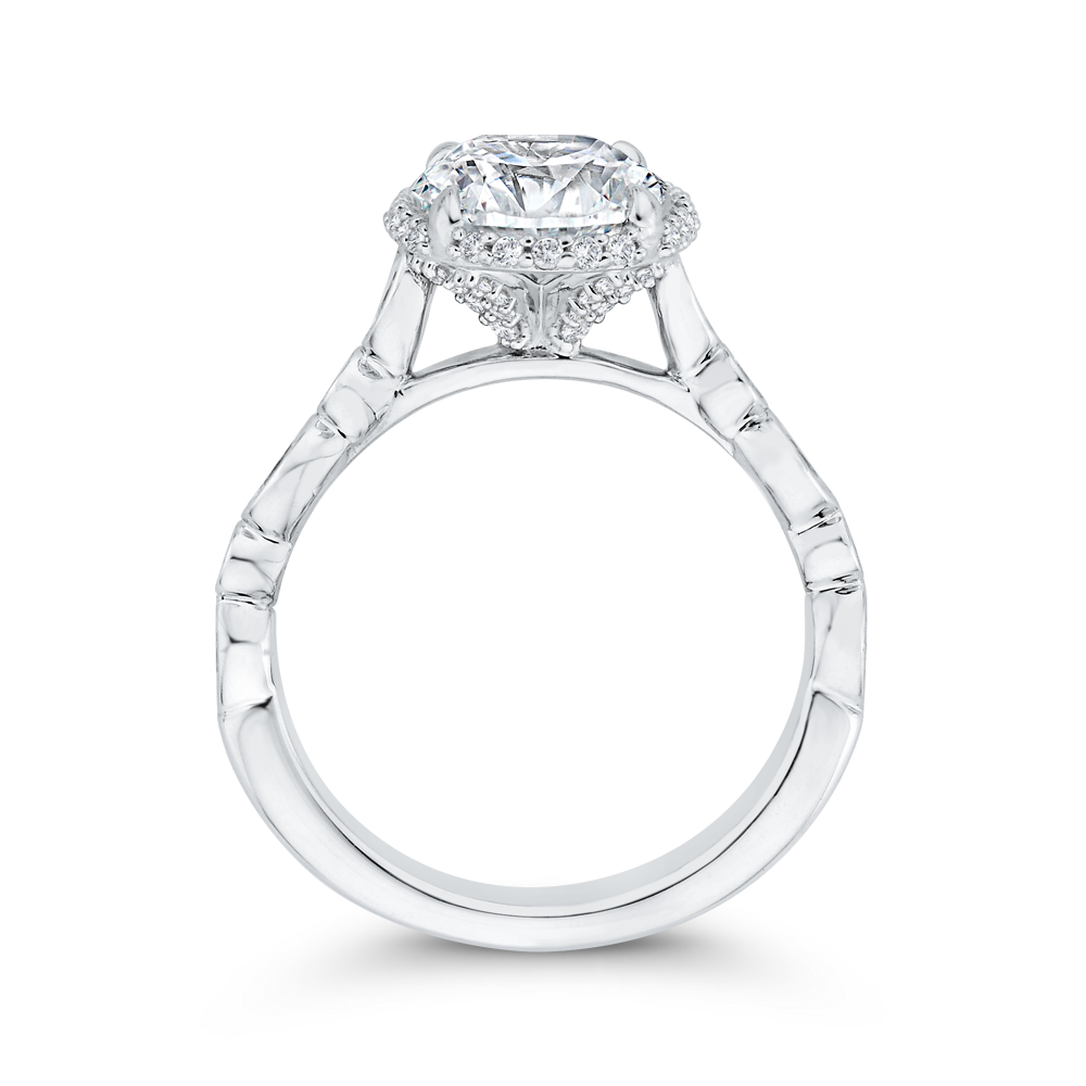 Oval Cut Diamond Halo Engagement Ring in 18K White Gold (Semi-Mount)
