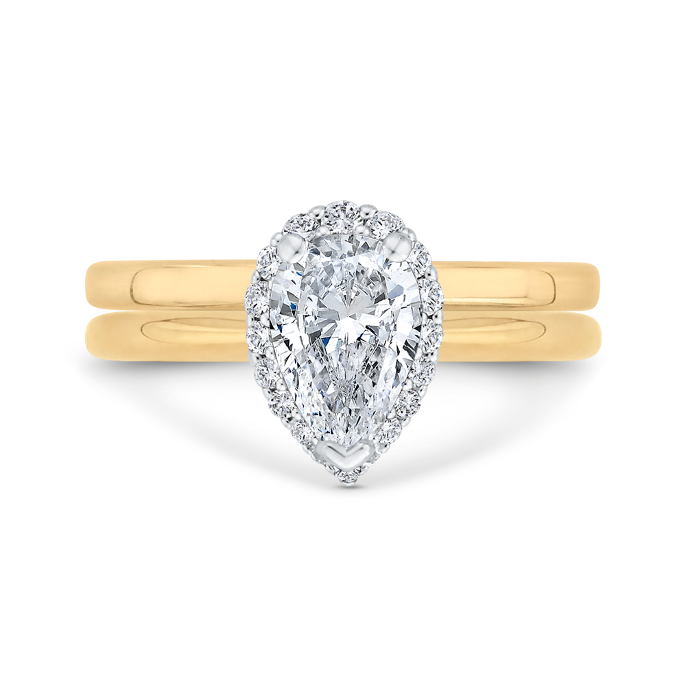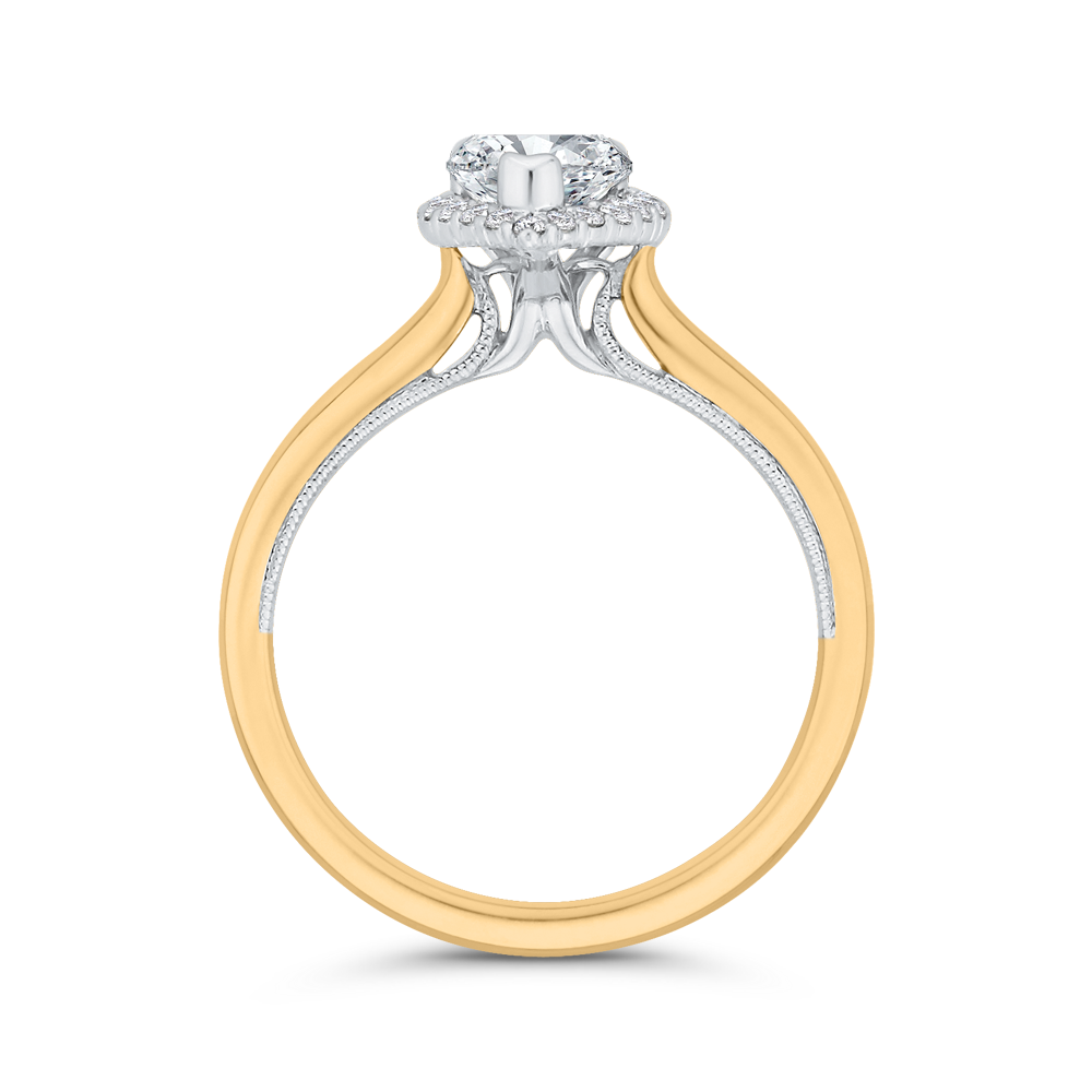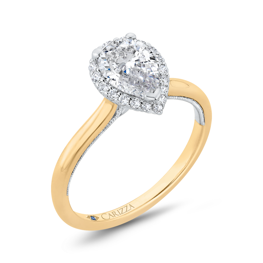 Pear Cut Diamond Halo Engagement Ring in 14K Two Tone Gold (Semi-Mount)