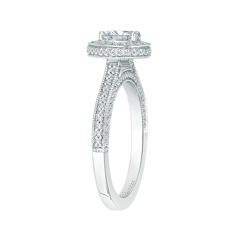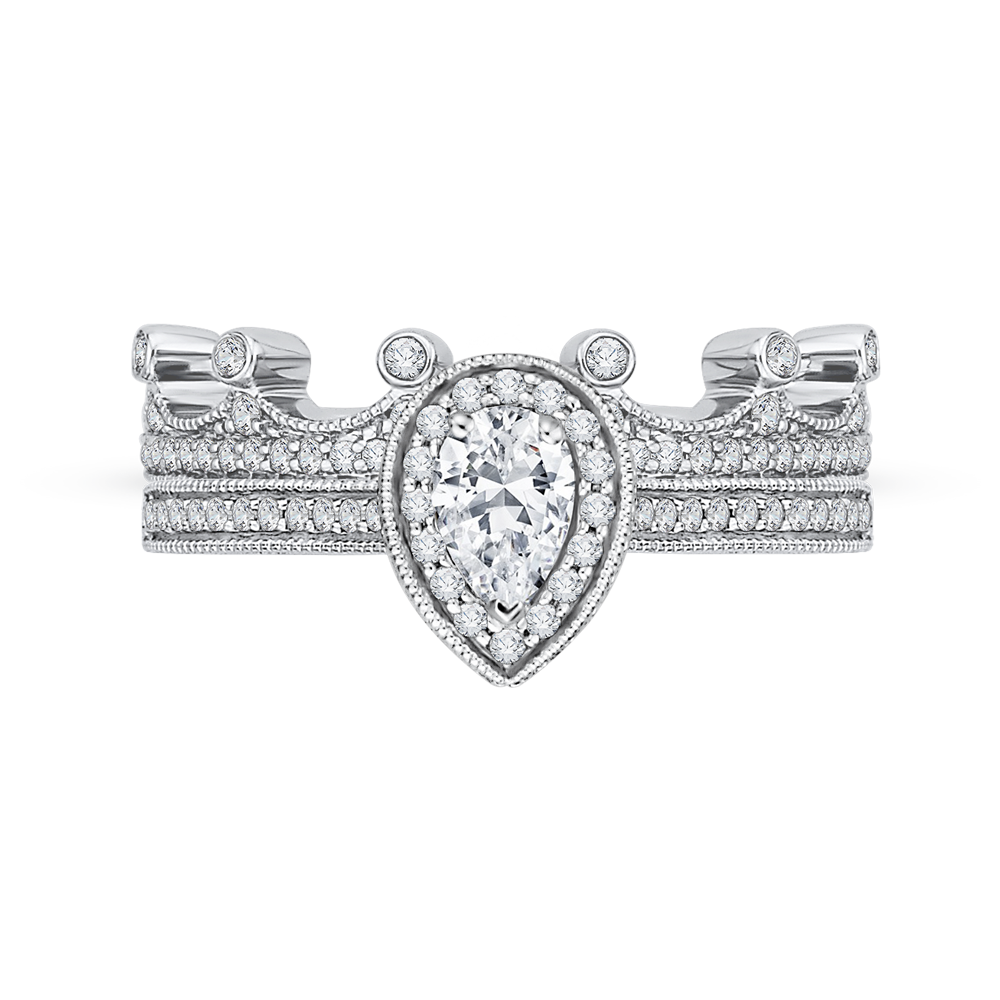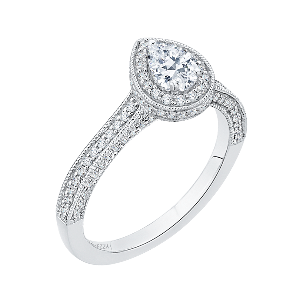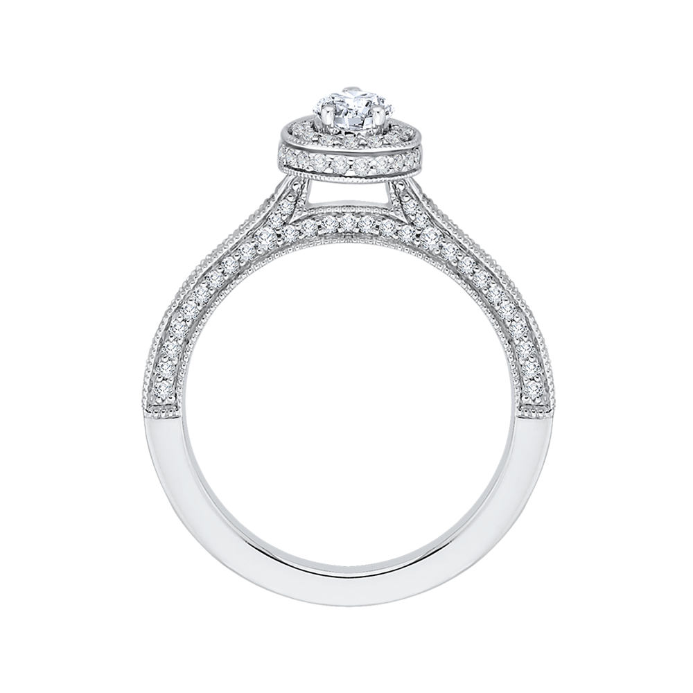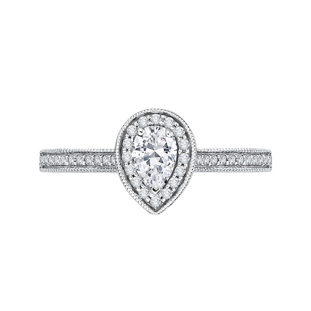 Pear Cut Diamond Halo Engagement Ring in 14K White Gold