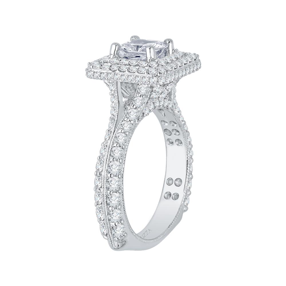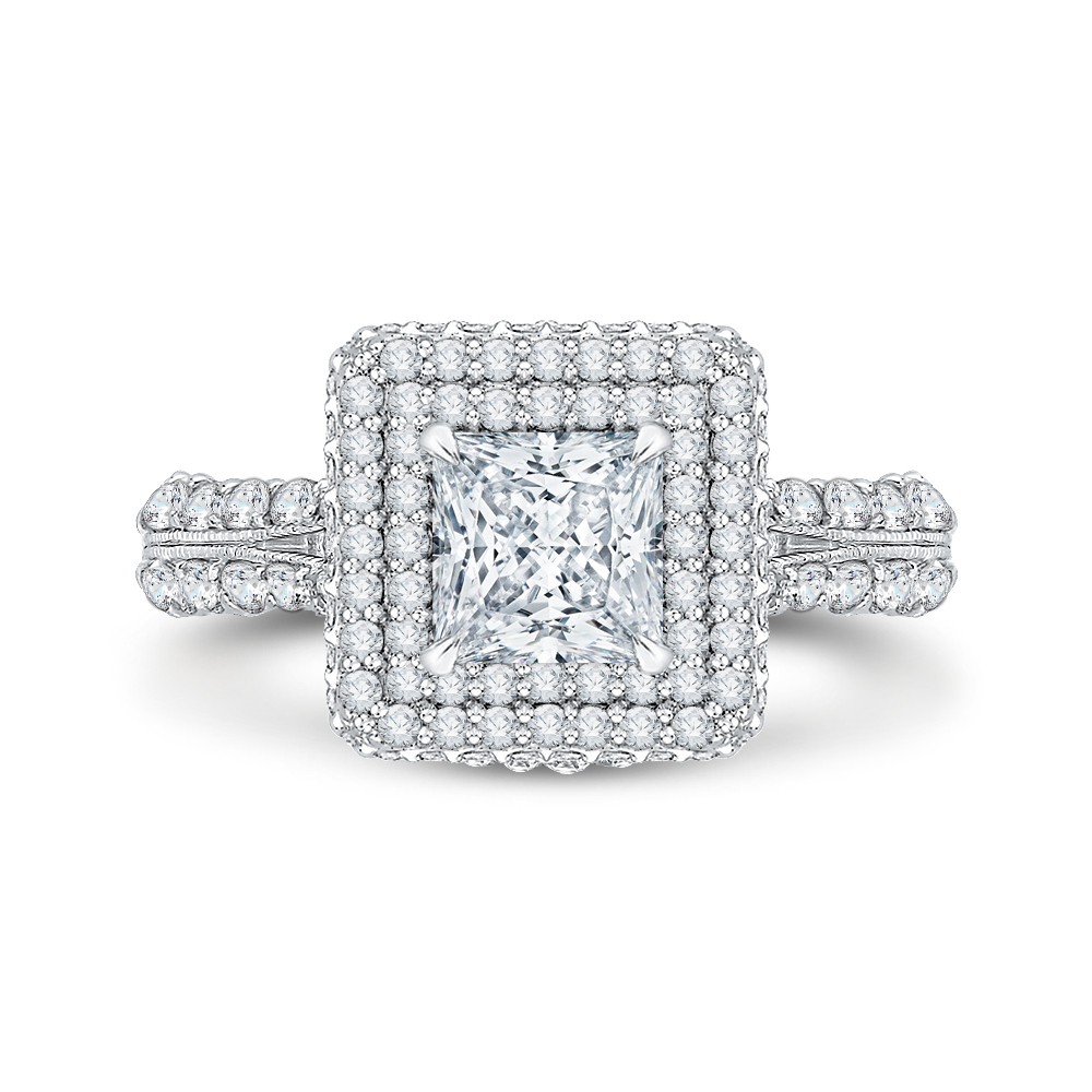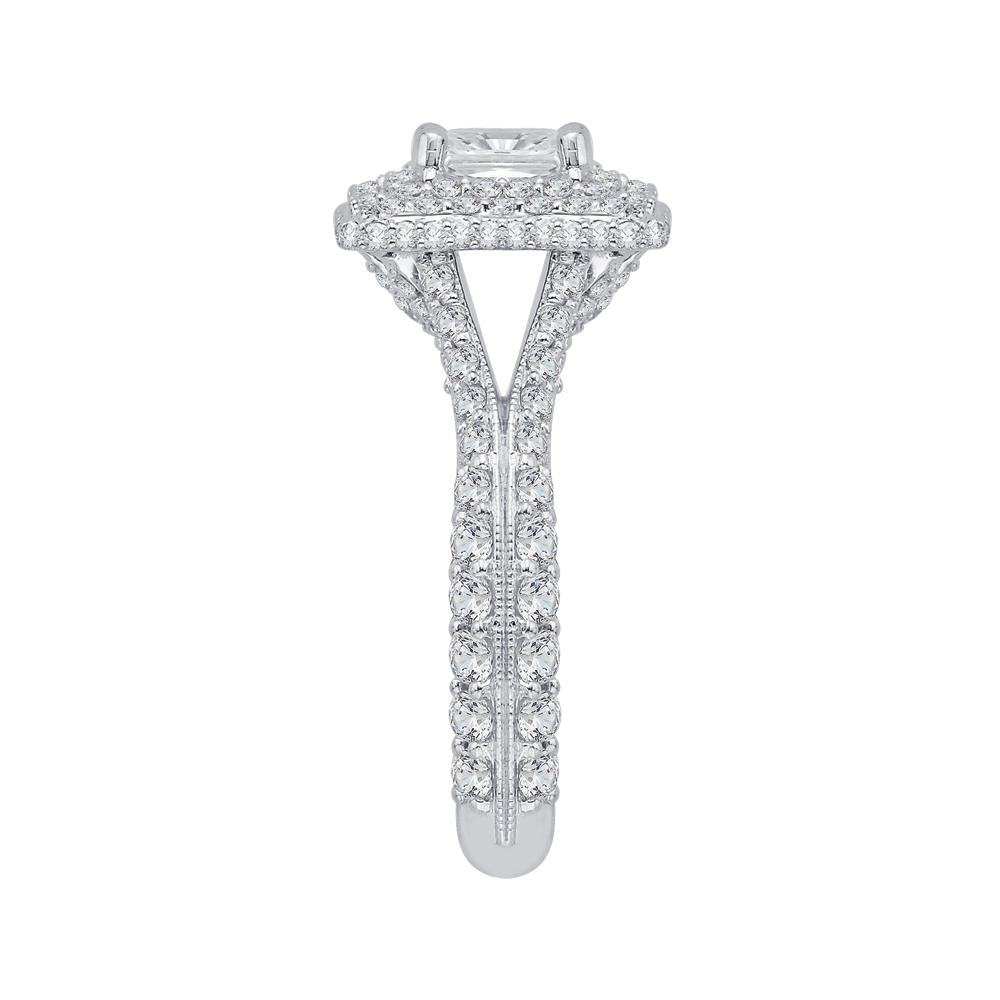 Princess Cut Diamond Double Halo Engagement Ring in 14K White Gold (Semi-Mount)