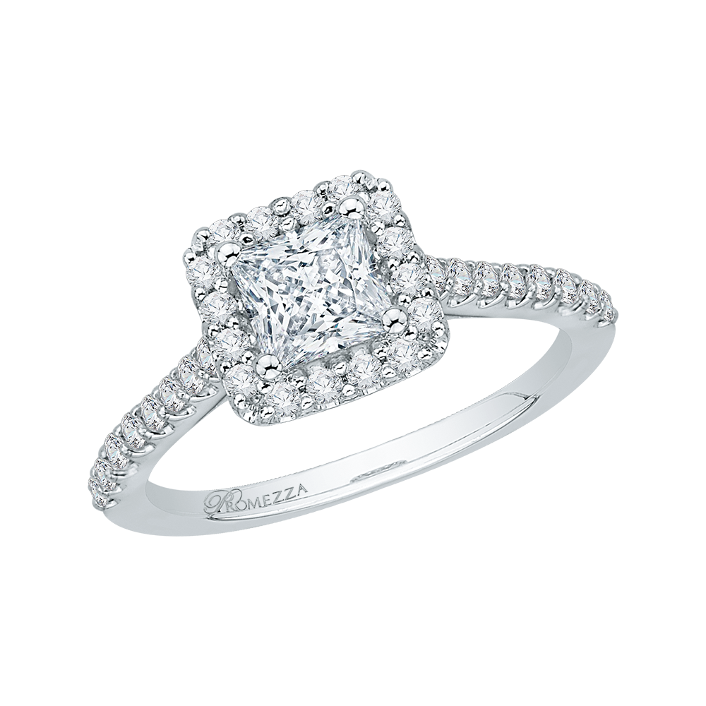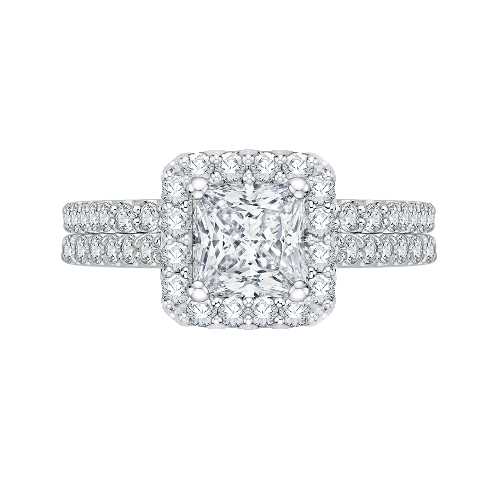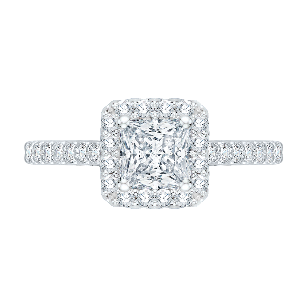 Princess Cut Diamond Halo Engagement Ring in 14K White Gold