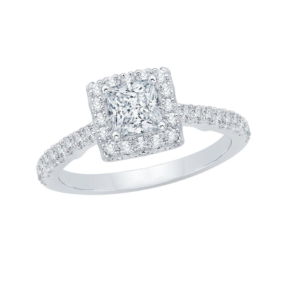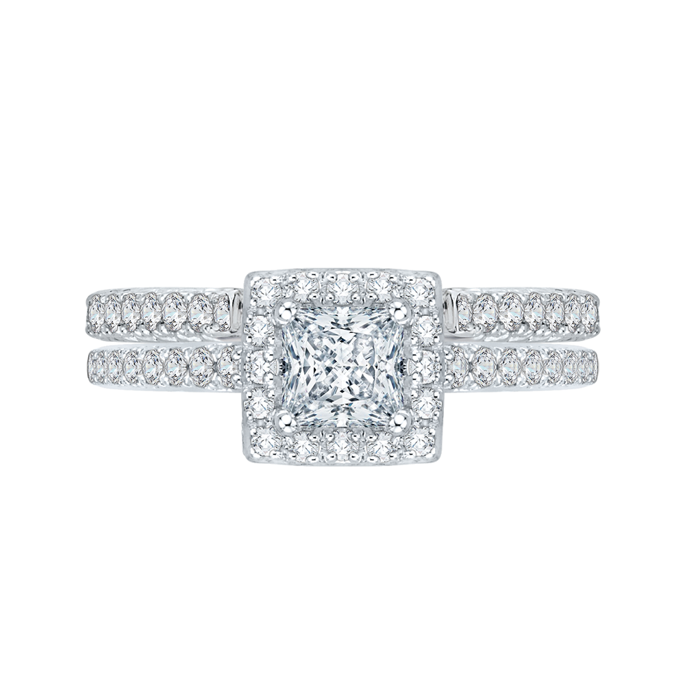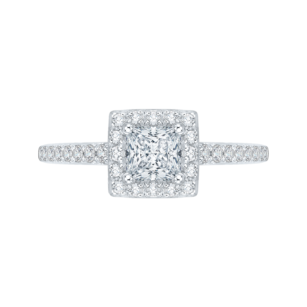 Princess Cut Diamond Halo Engagement Ring in 14K White Gold