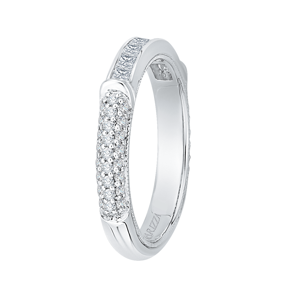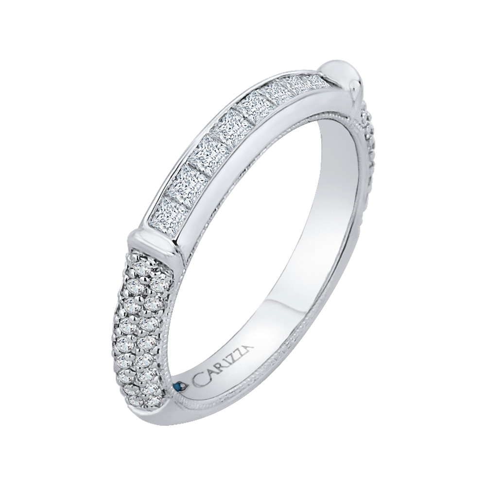 Princess Cut & Round Diamond Wedding Band in 14K White Gold