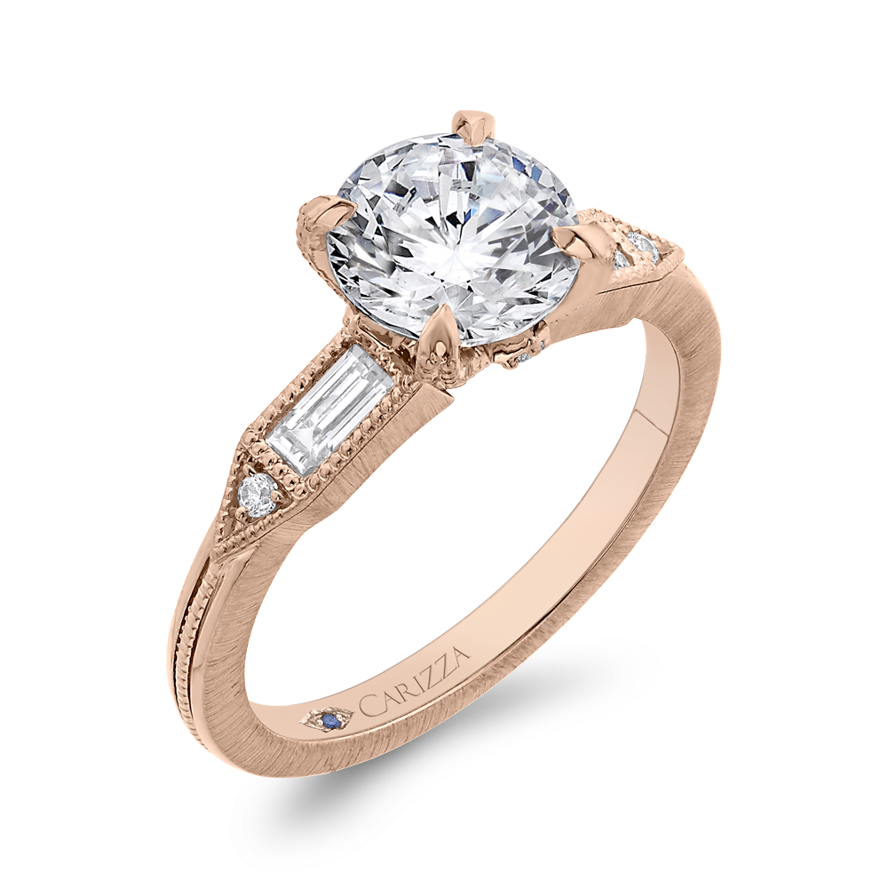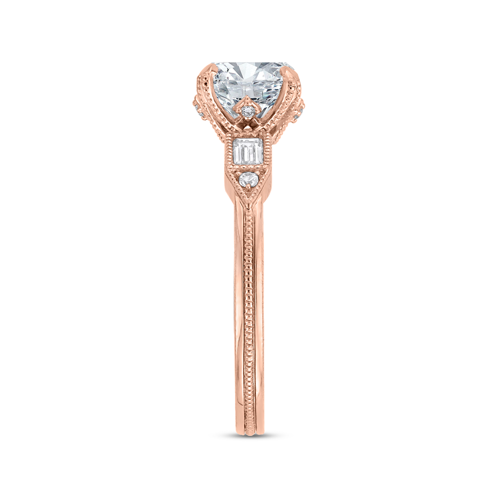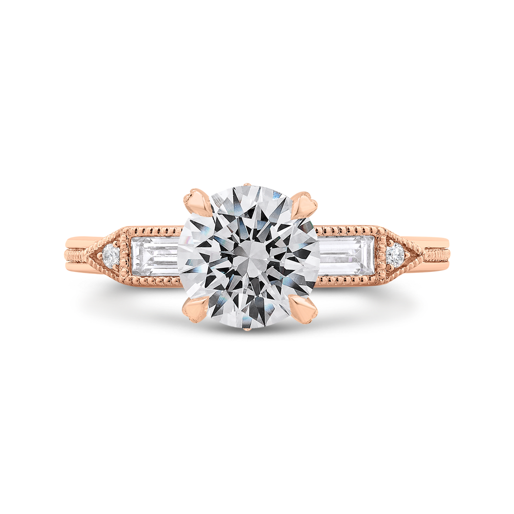 Round and Baguette Cut Diamond Engagement Ring in 14K Rose Gold (Semi-Mount)