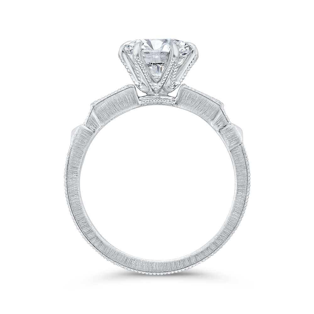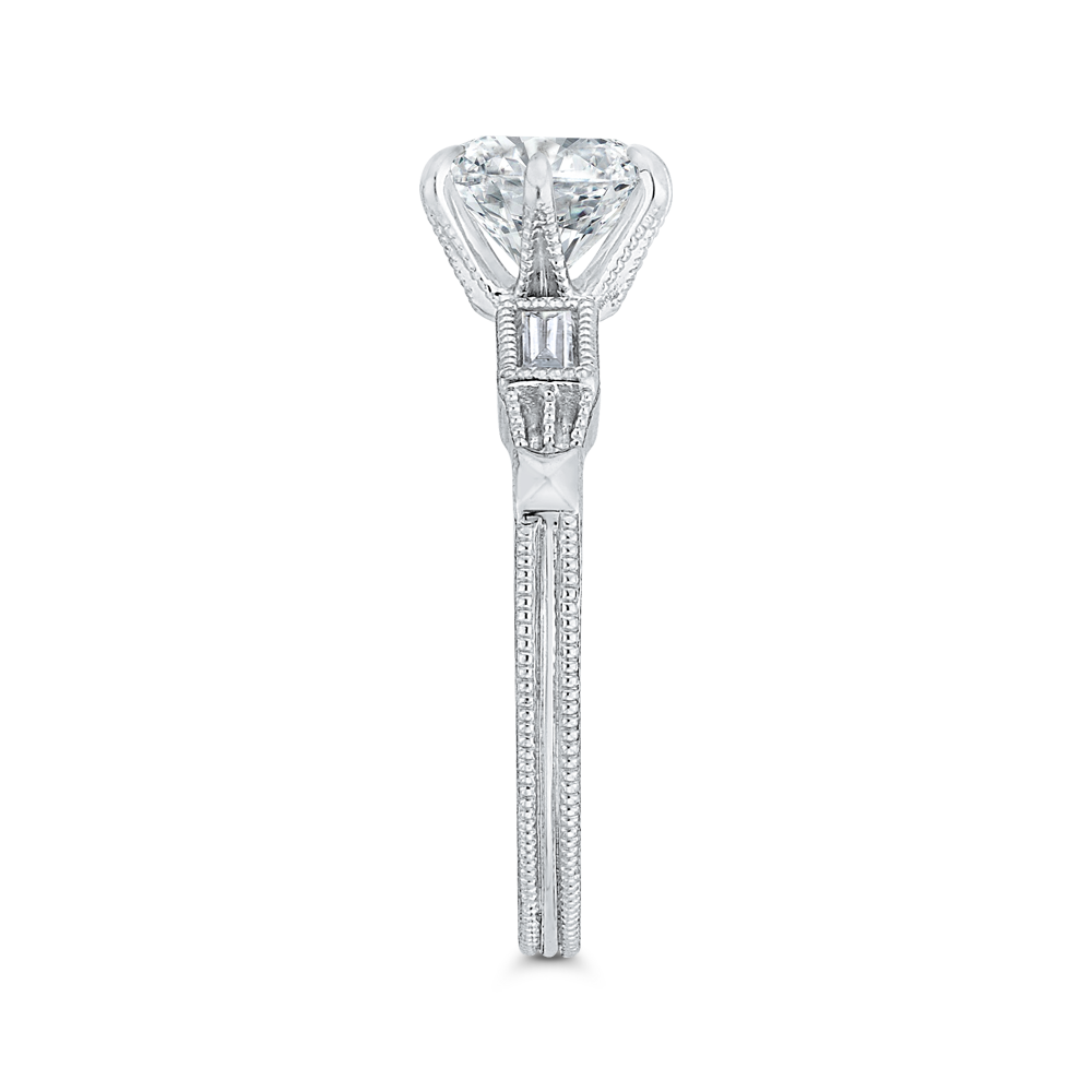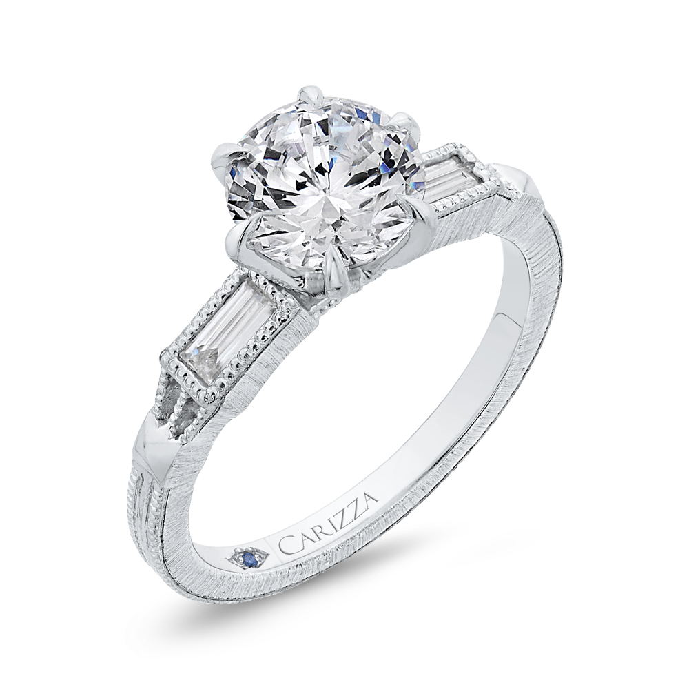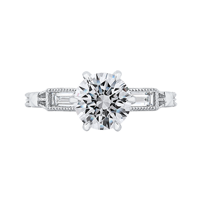Round and Baguette Cut Diamond Engagement Ring in 14K White Gold (Semi-Mount)