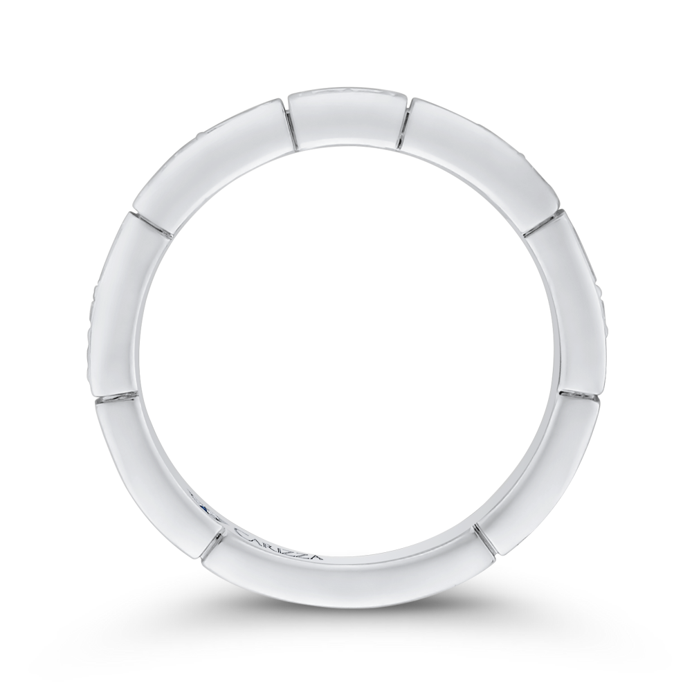 Round and Baguette Cut Diamond Wedding Band in 14K White Gold