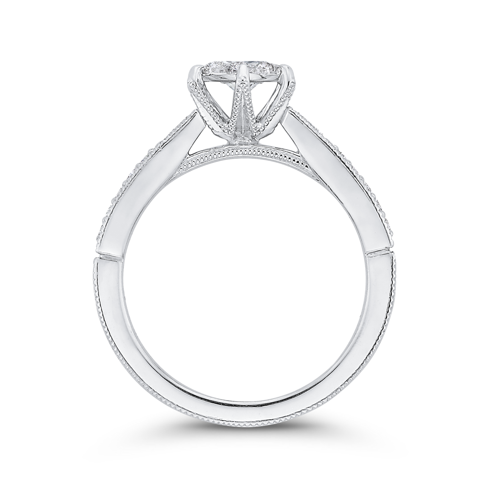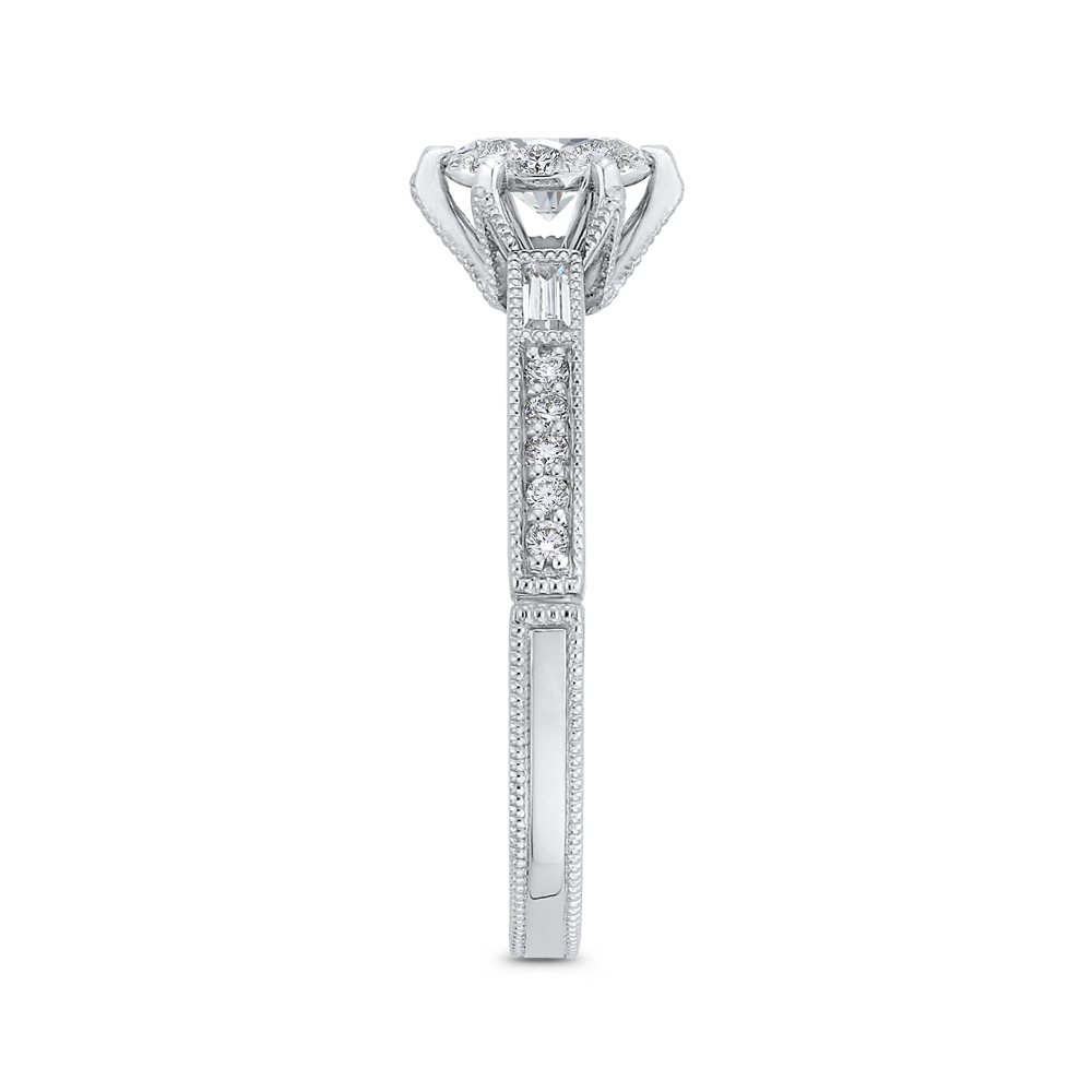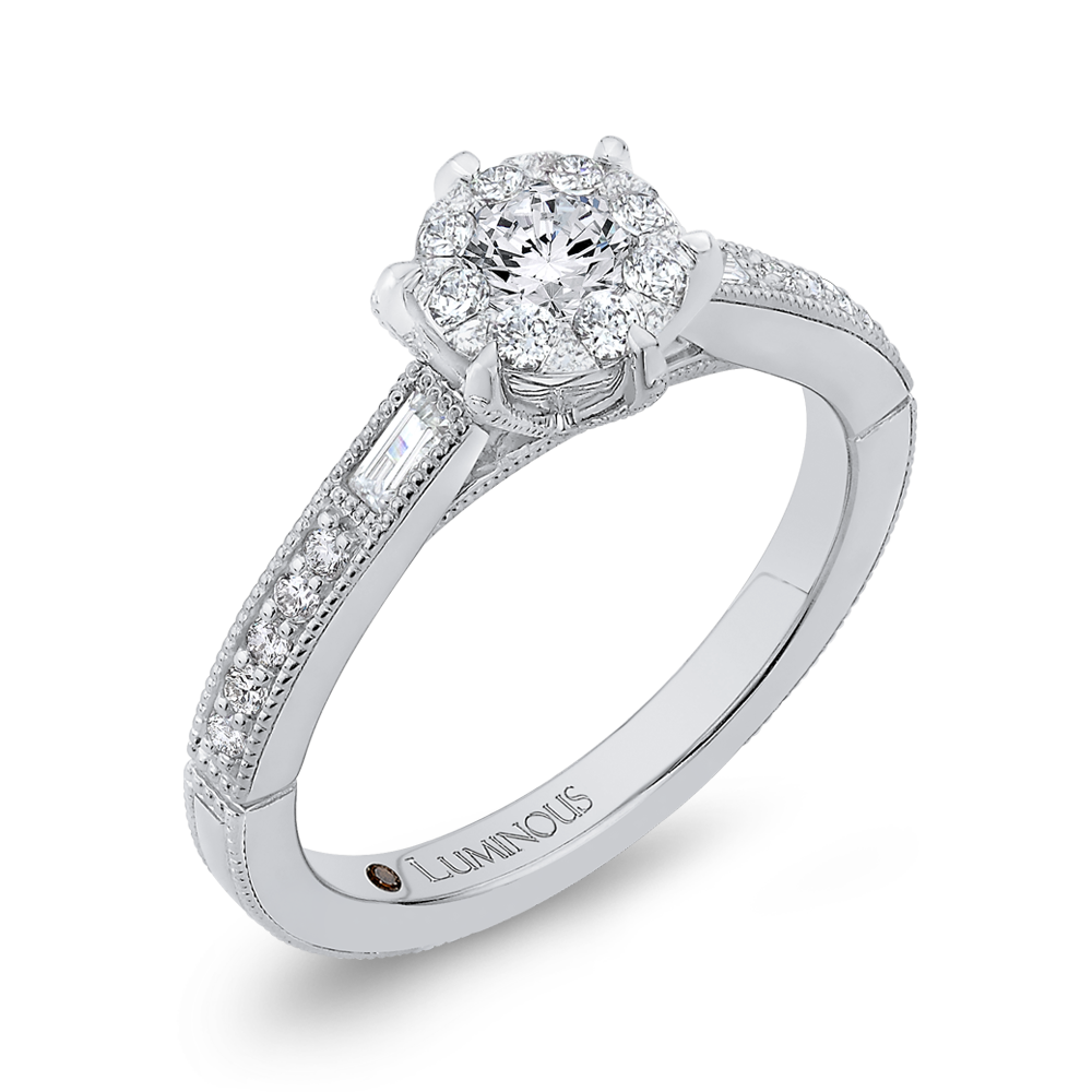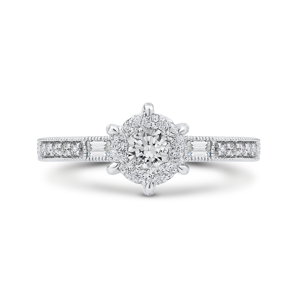 Round & Baguette Cut Diamond Engagement Ring in 14K White Gold