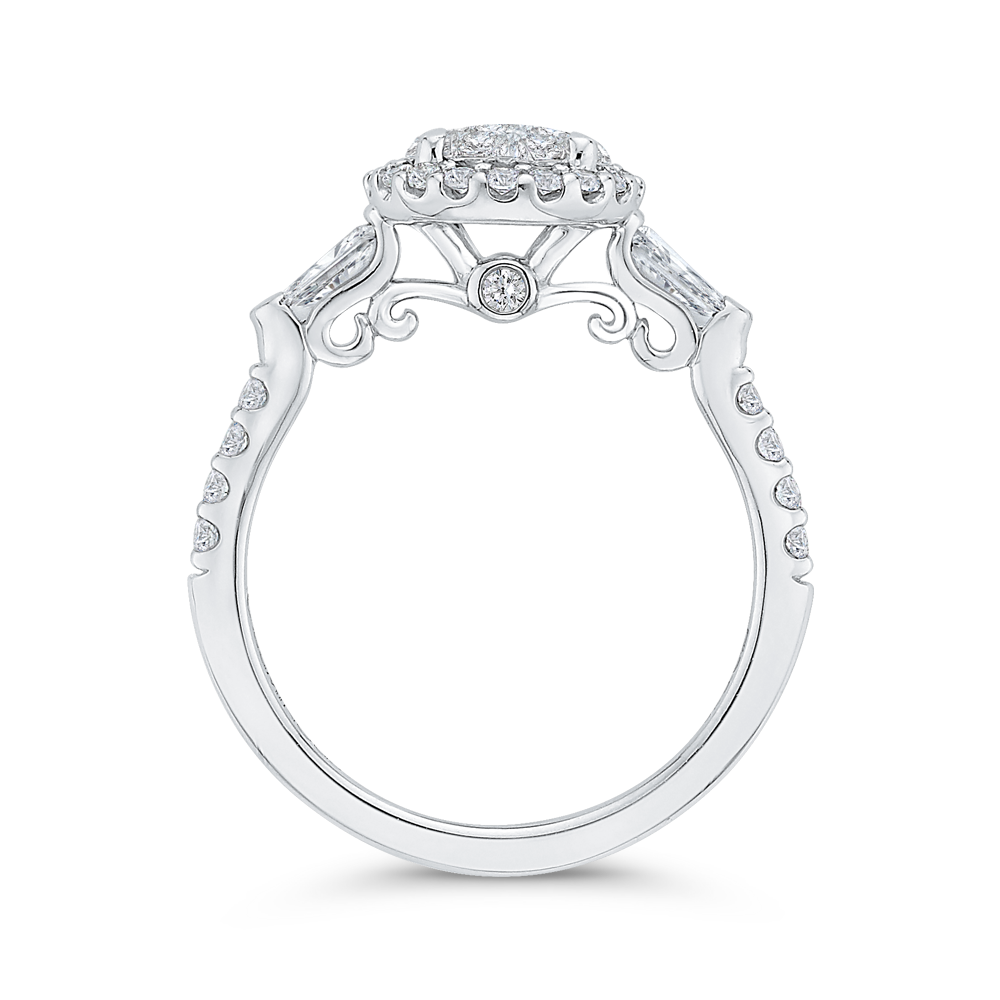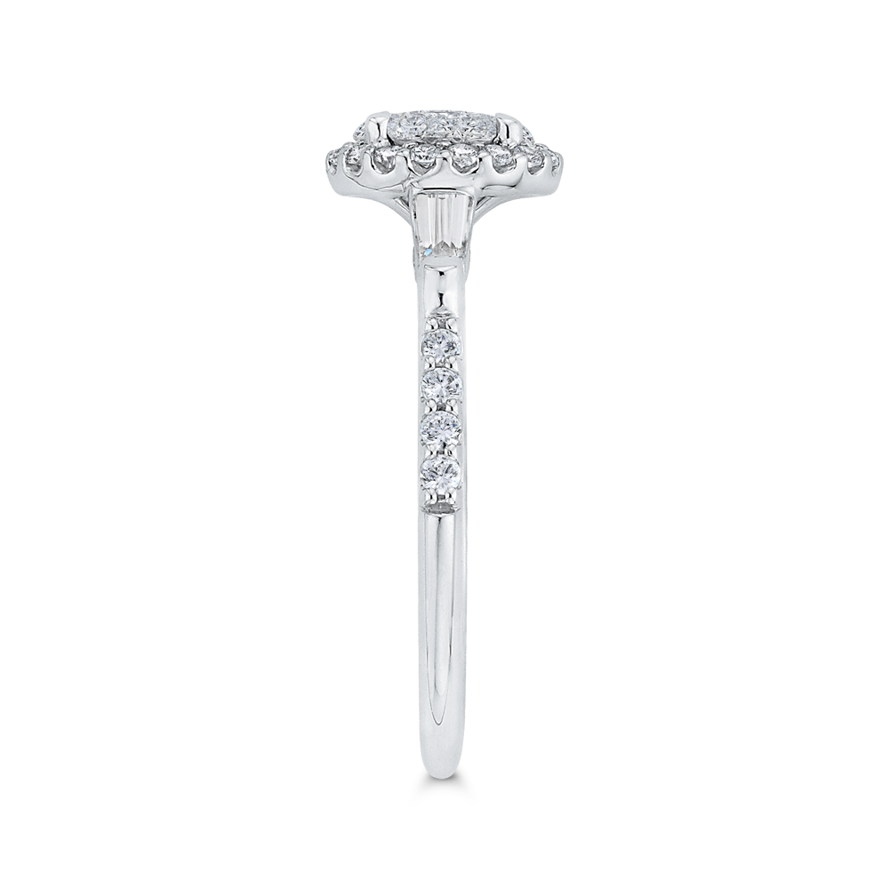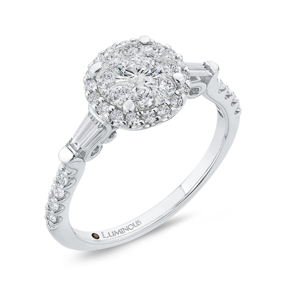 Round & Baguette Cut Diamond Halo Engagement Ring in 14K White Gold