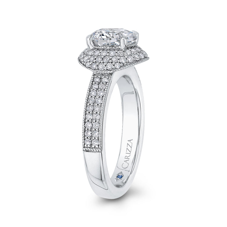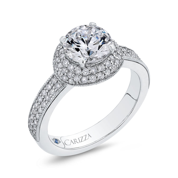 Round Cut Diamond Engagement Ring In 14K White Gold (Semi-Mount)