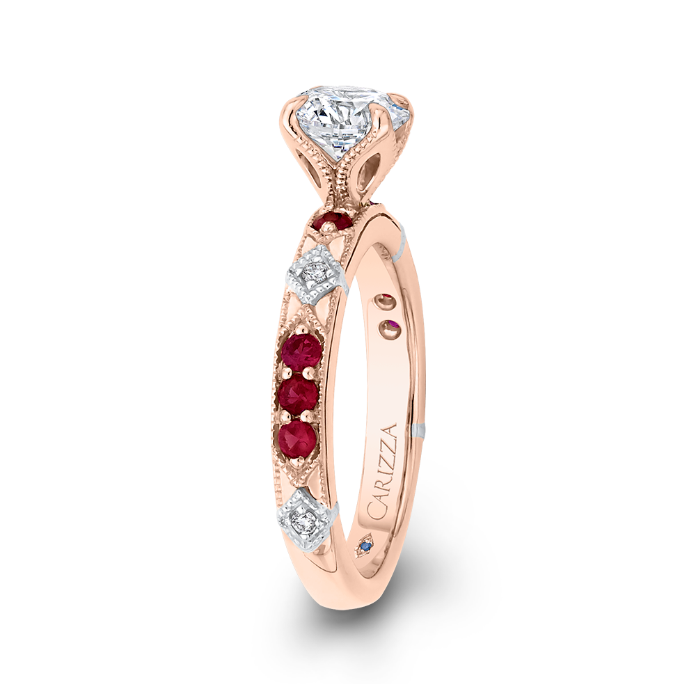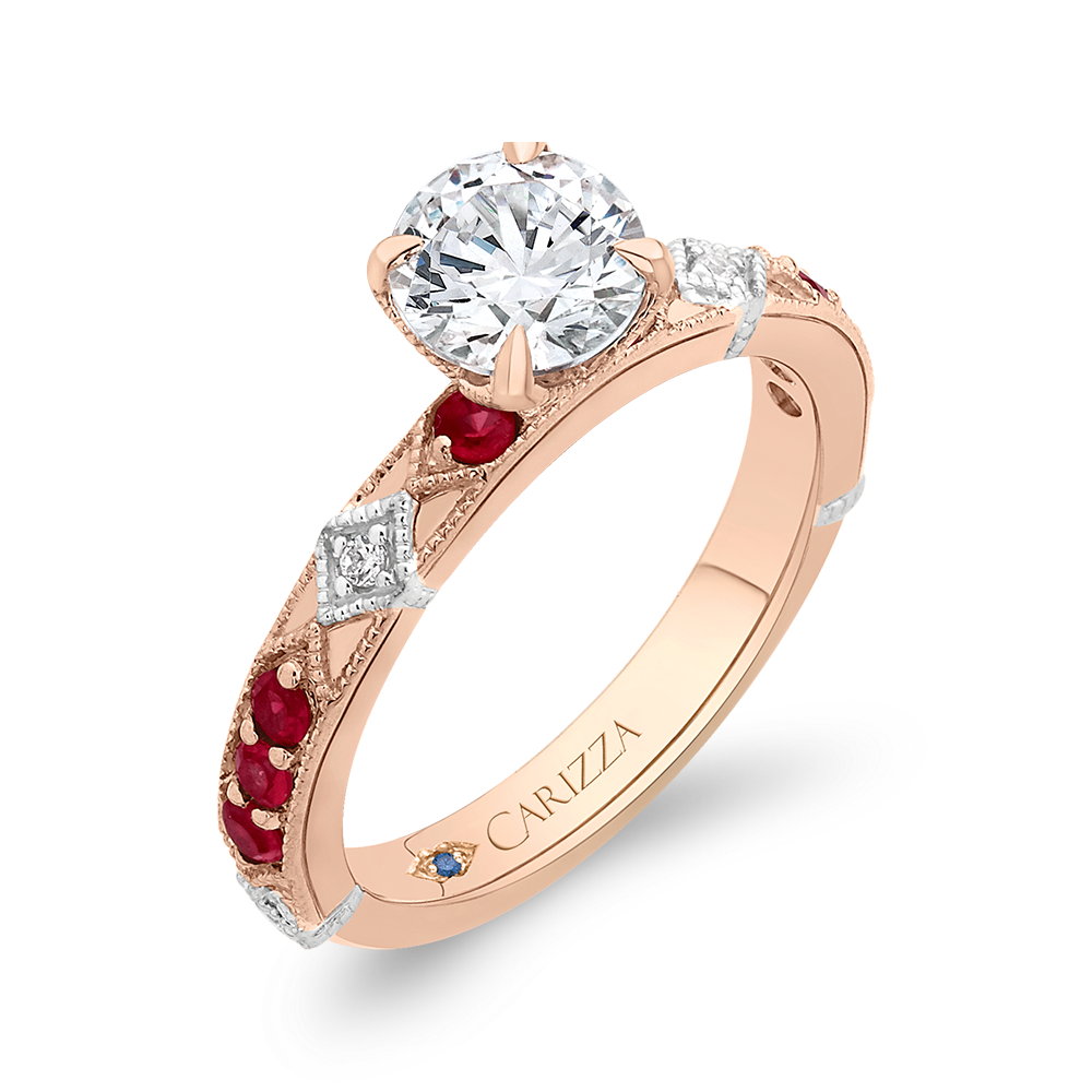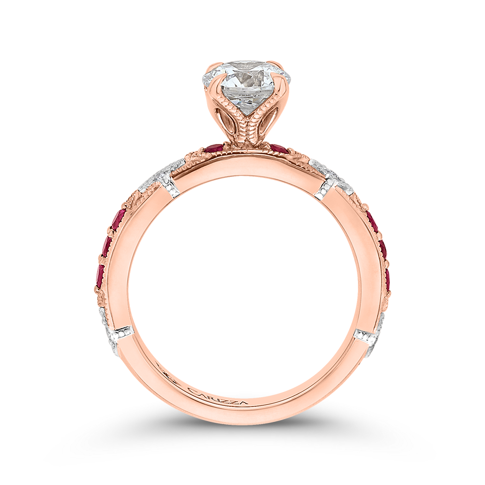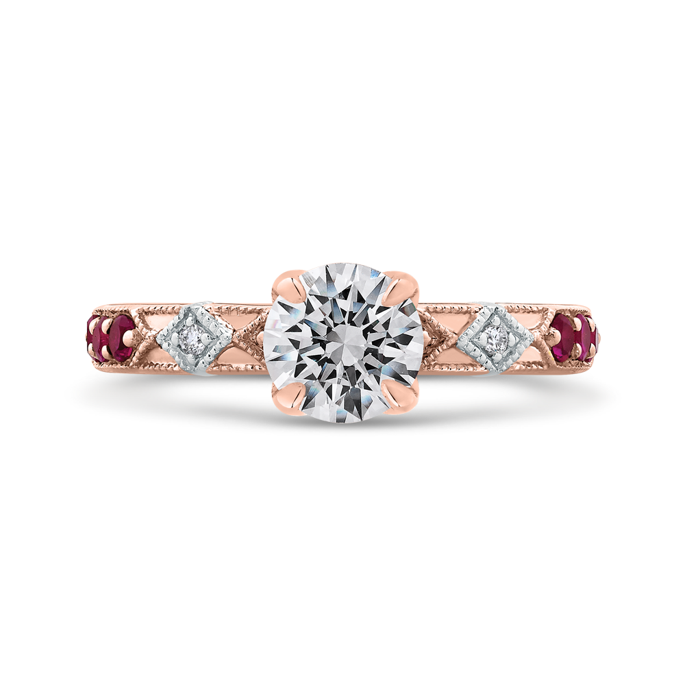 Round Diamond and Ruby Engagement Ring in 14K Two Tone Gold (Semi-Mount)