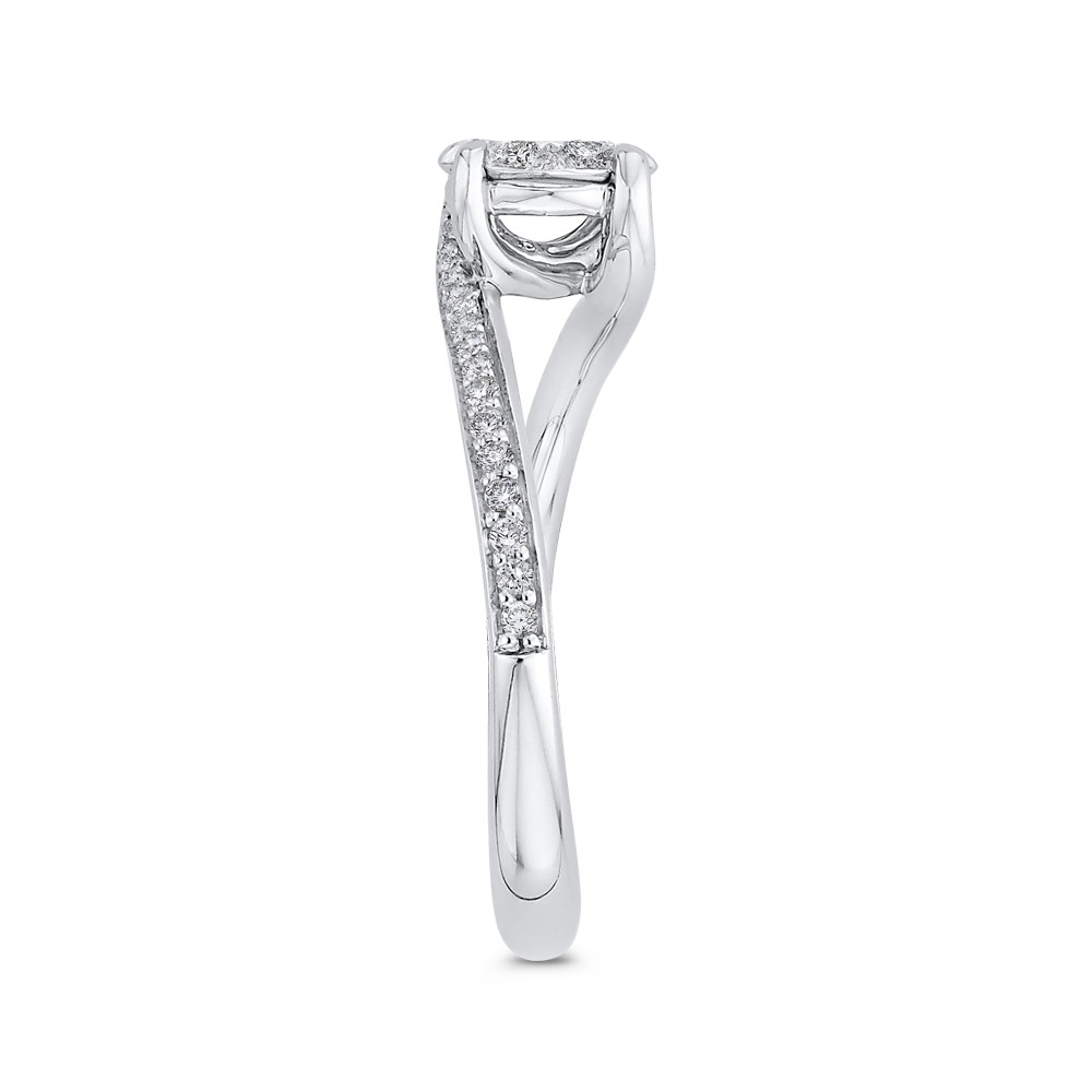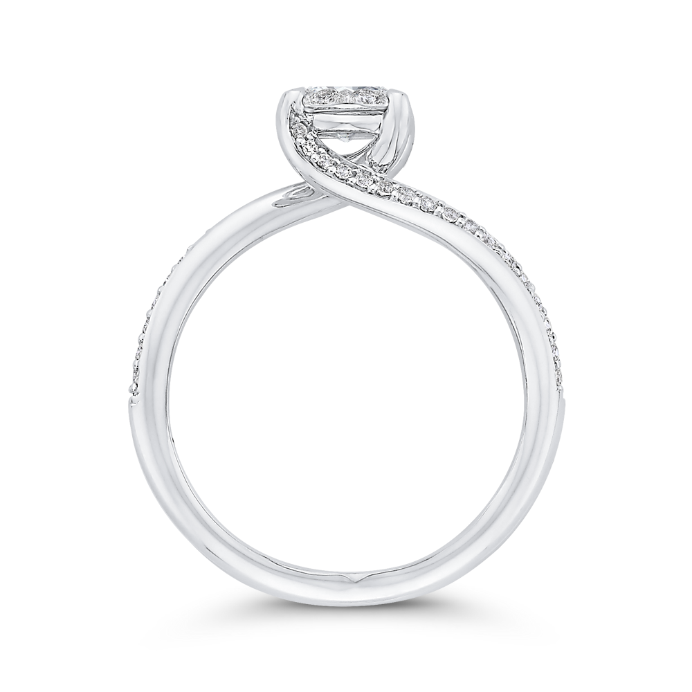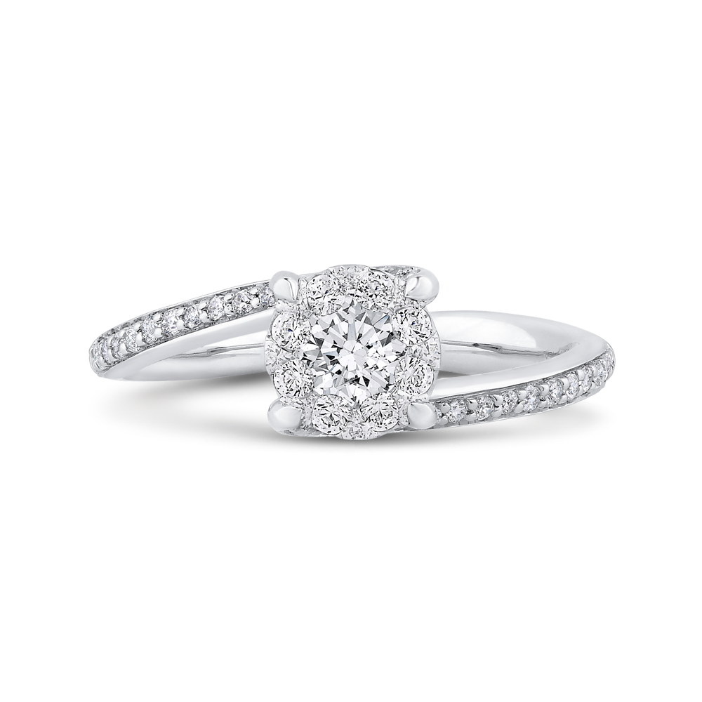 Round Diamond Bypass Engagement Ring in 14K White Gold