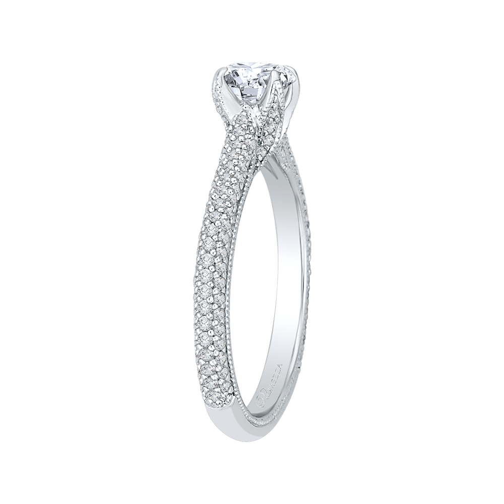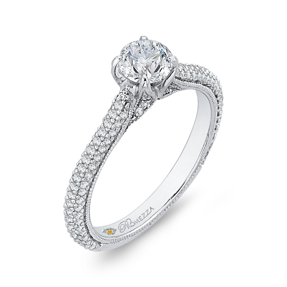 Round Diamond Cathedral Style Engagement Ring in 14K White Gold