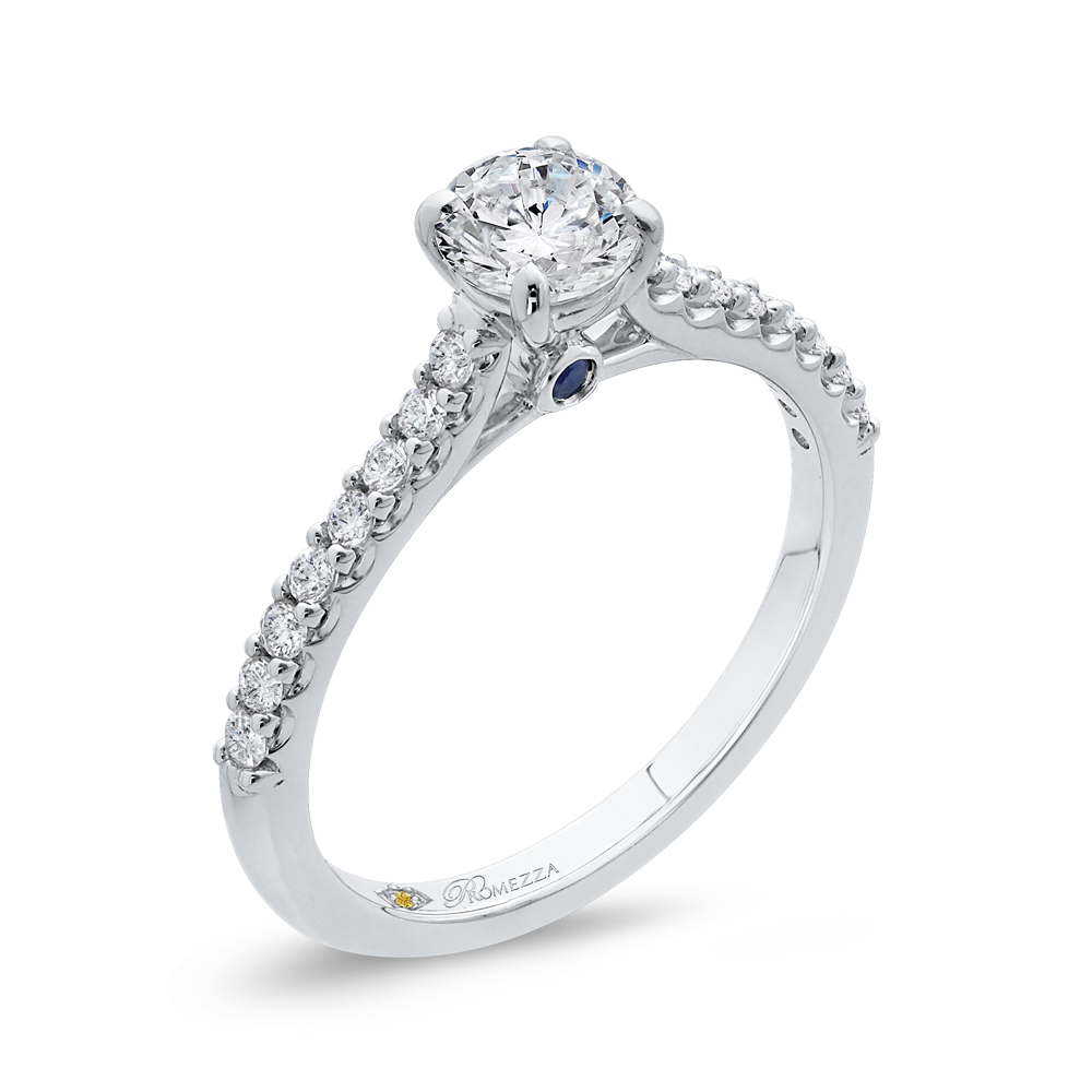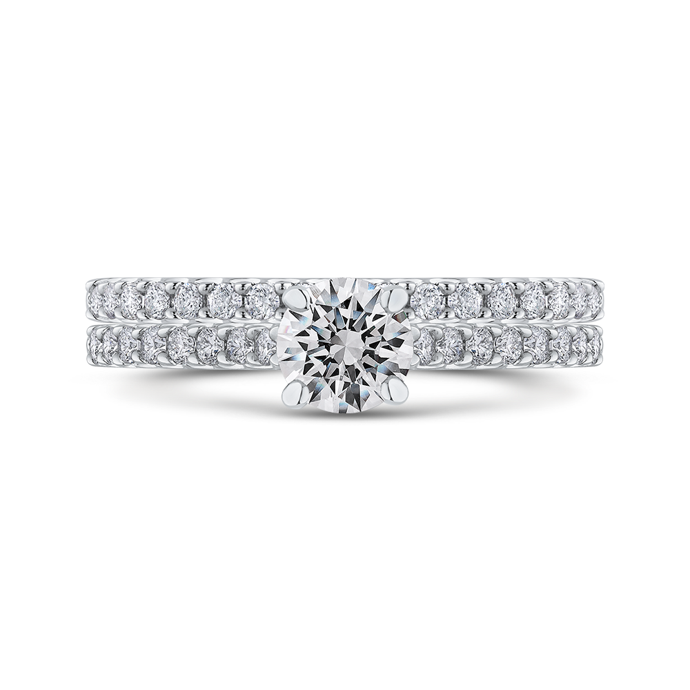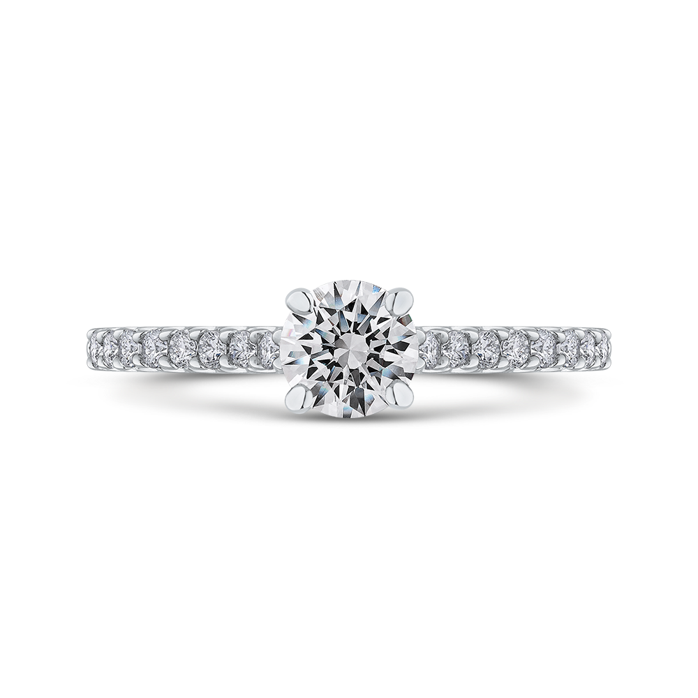 Round Diamond Cathedral Style Engagement Ring in 14K White Gold