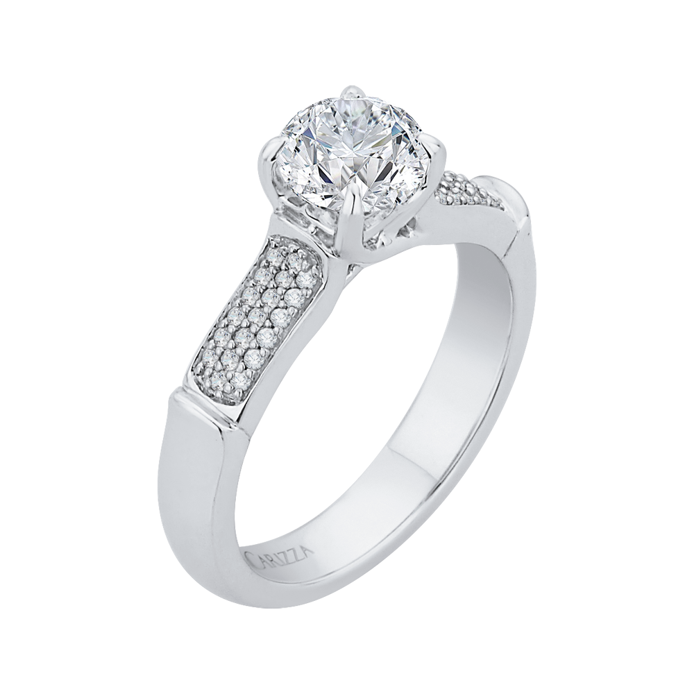 Round Diamond Cathedral Style Engagement Ring in 14K White Gold (Semi-Mount)