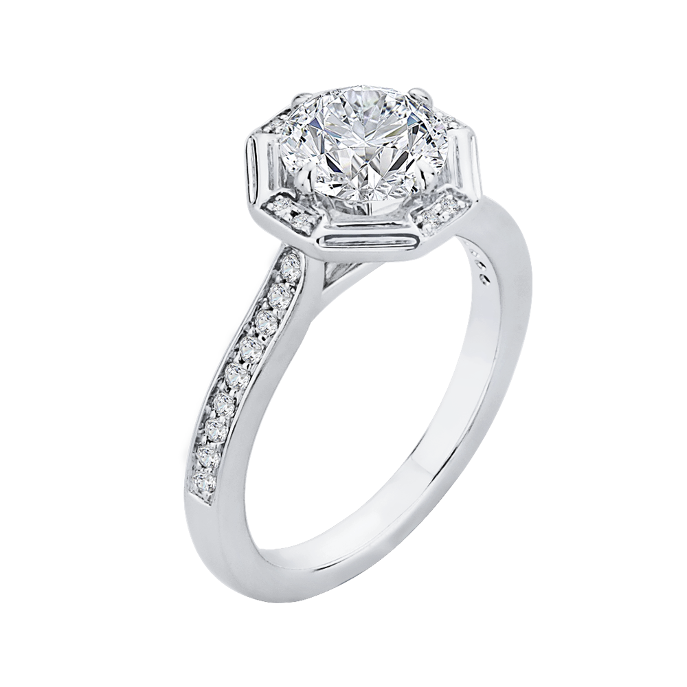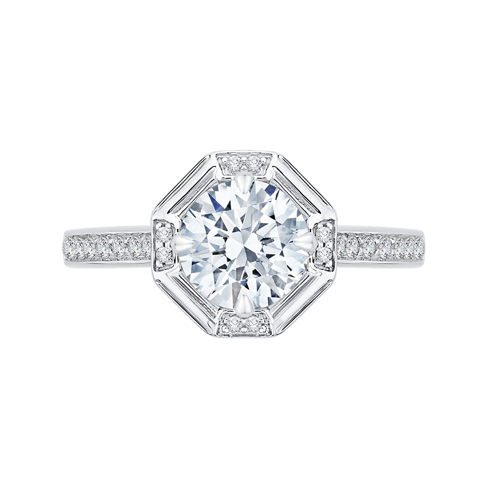 Round Diamond Cathedral Style Engagement Ring in 14K White Gold (Semi-Mount)