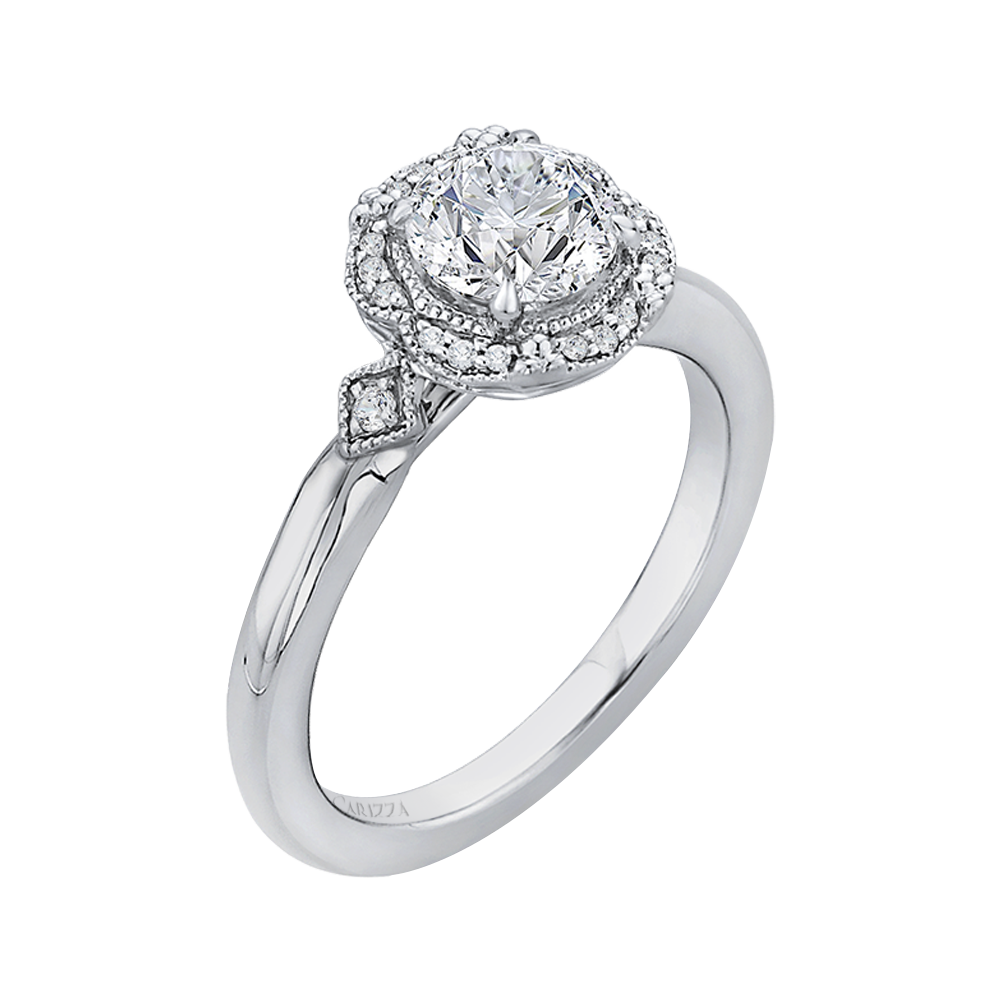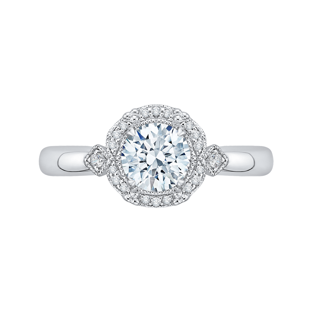 Round Diamond Cathedral Style Engagement Ring in 14K White Gold (Semi-Mount)