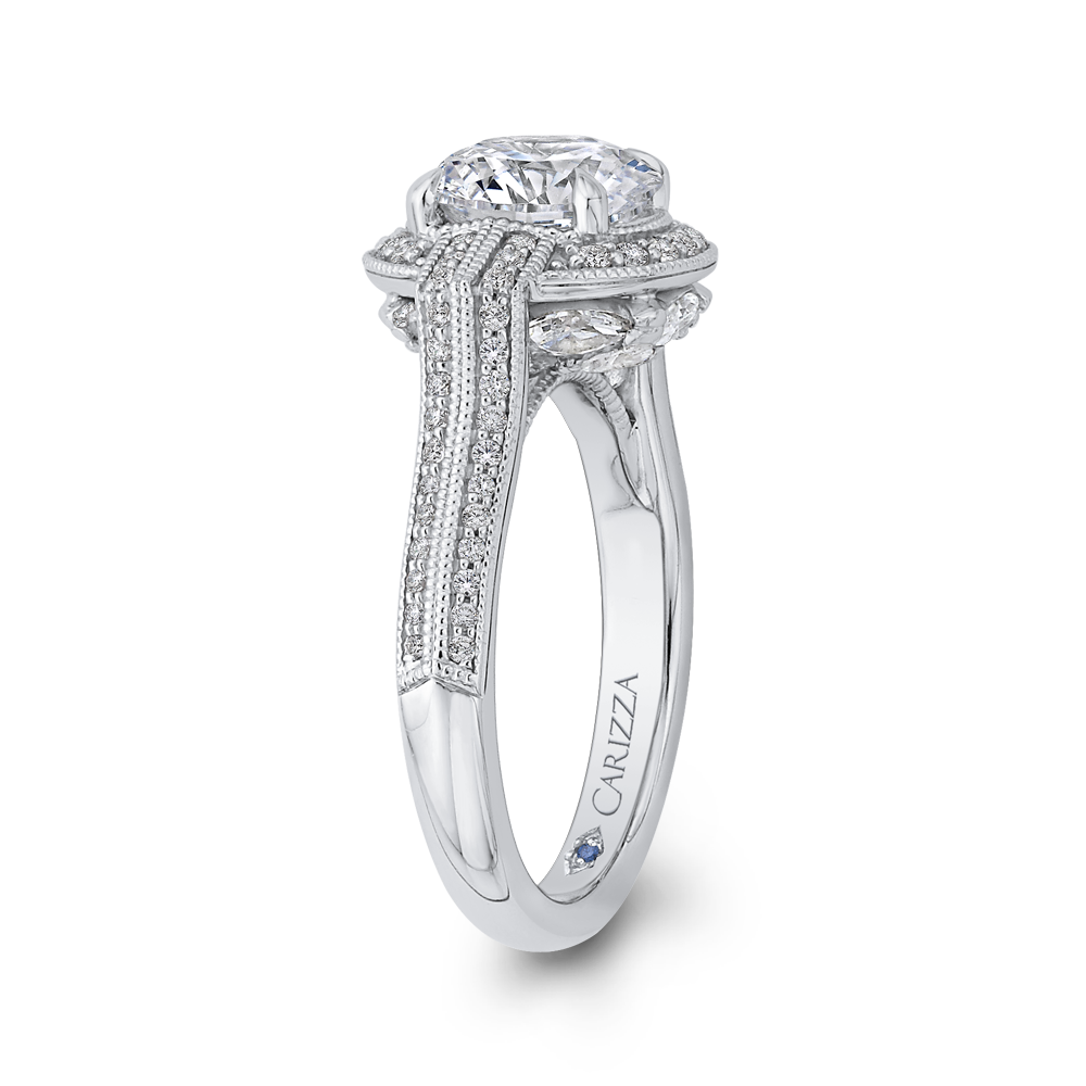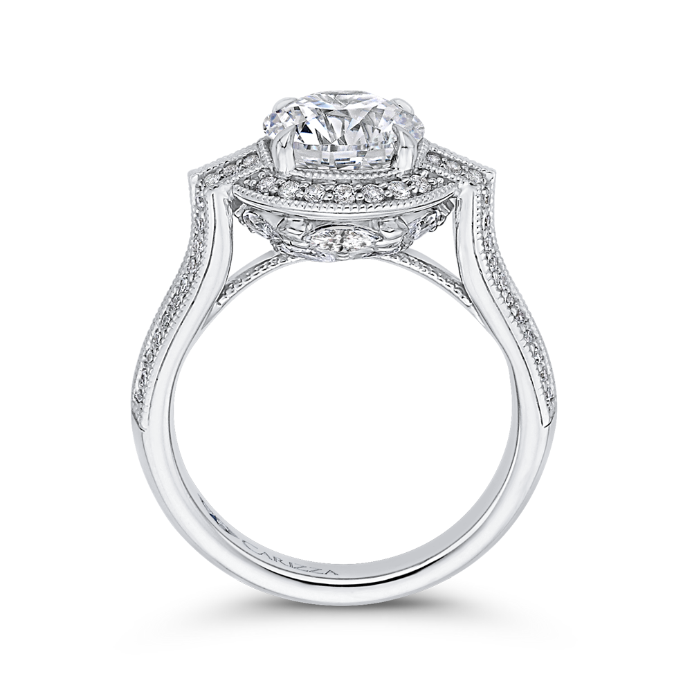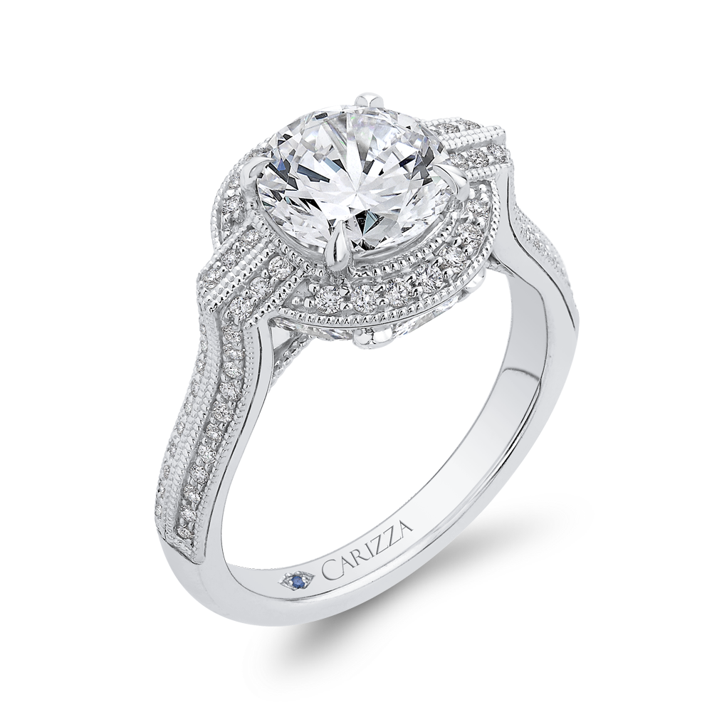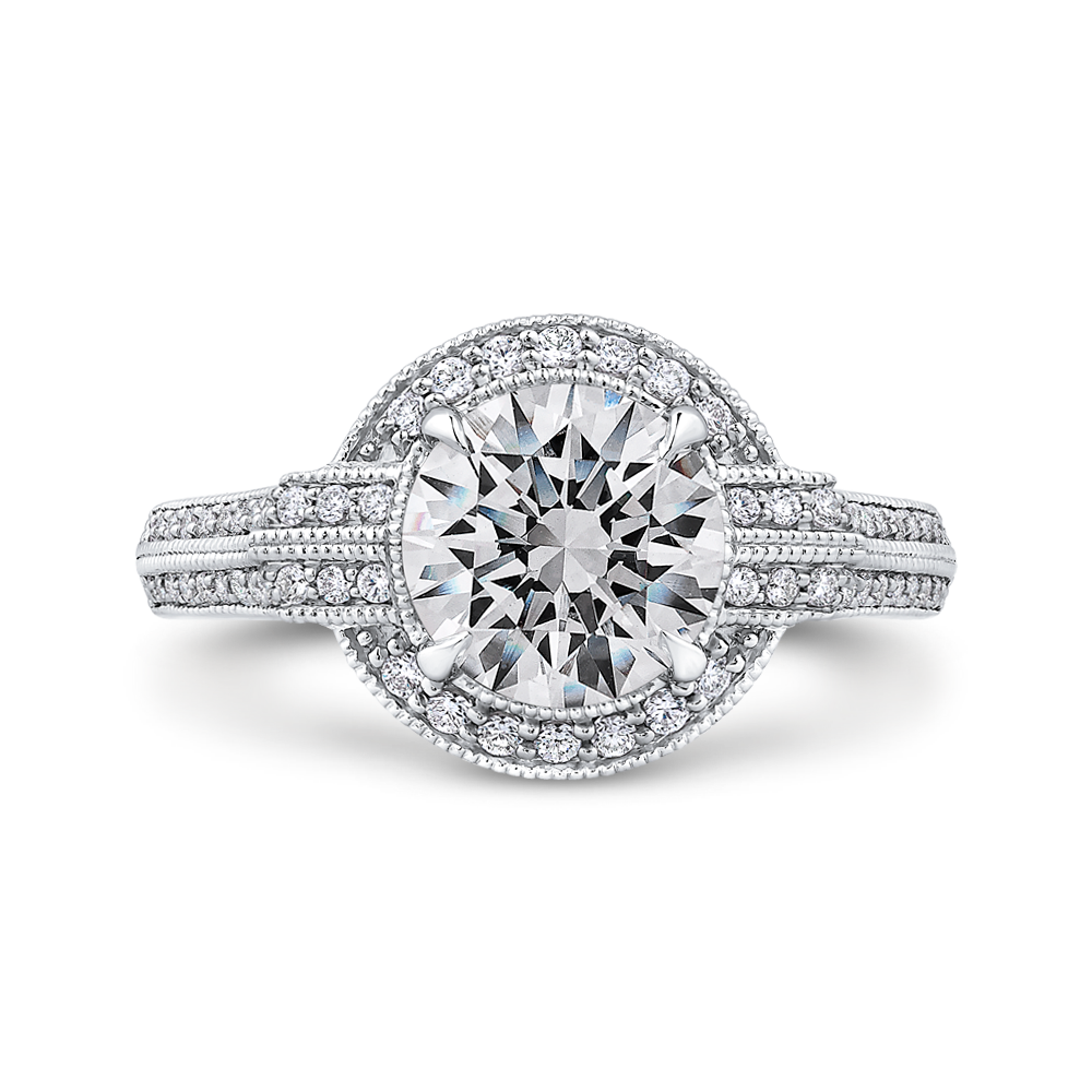 Round Diamond Cathedral Style Engagement Ring in 14K White Gold (Semi-Mount)