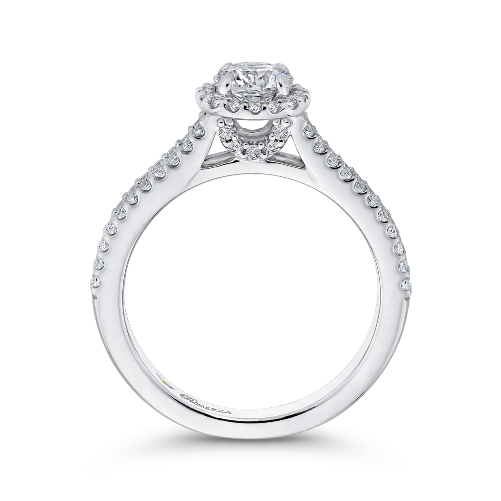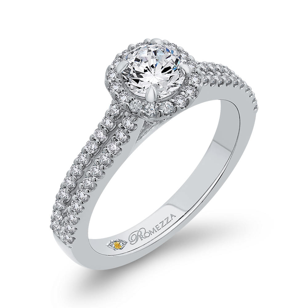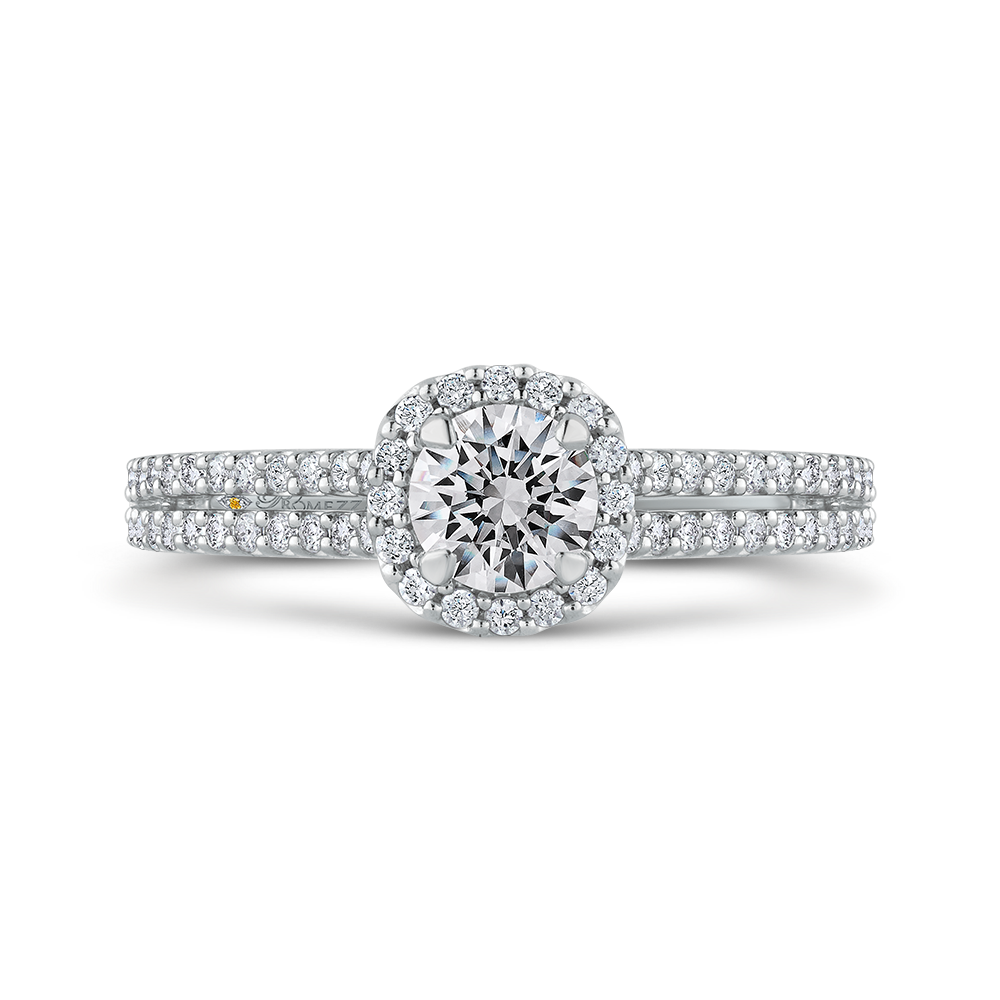 Round Diamond Cathedral Style Halo Engagement Ring in 14K White Gold