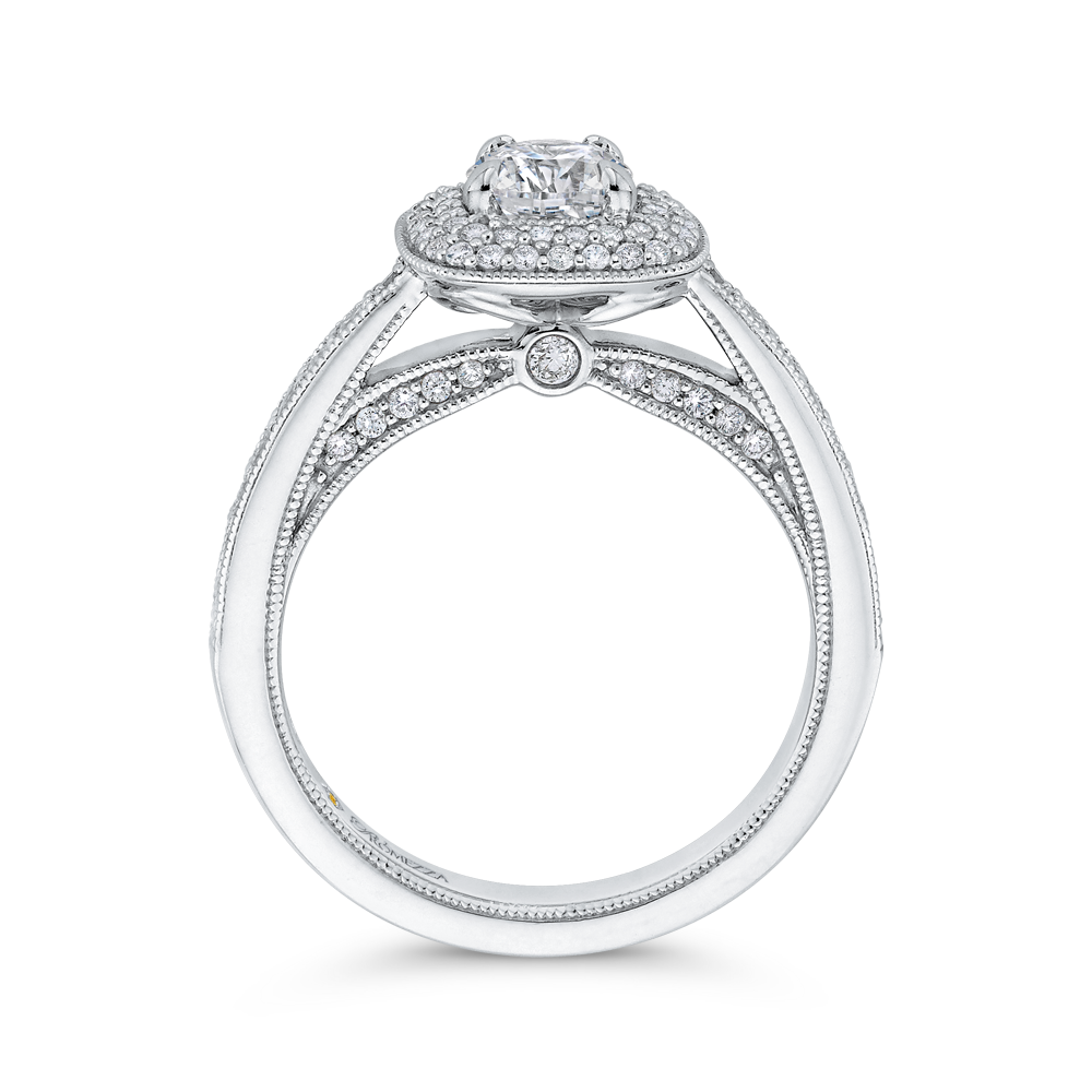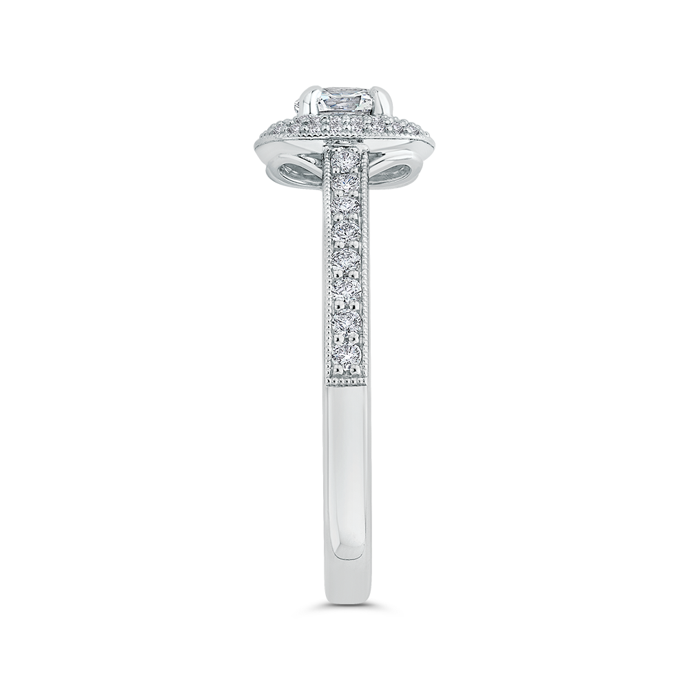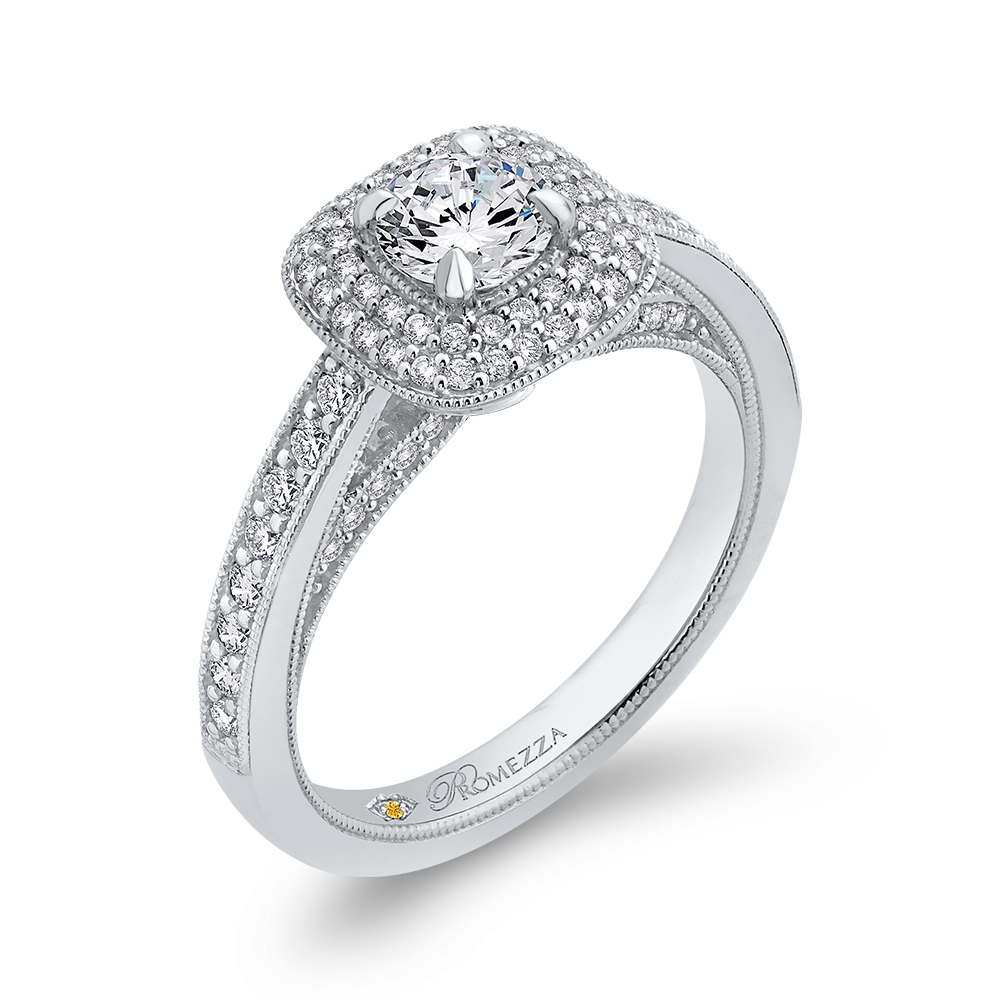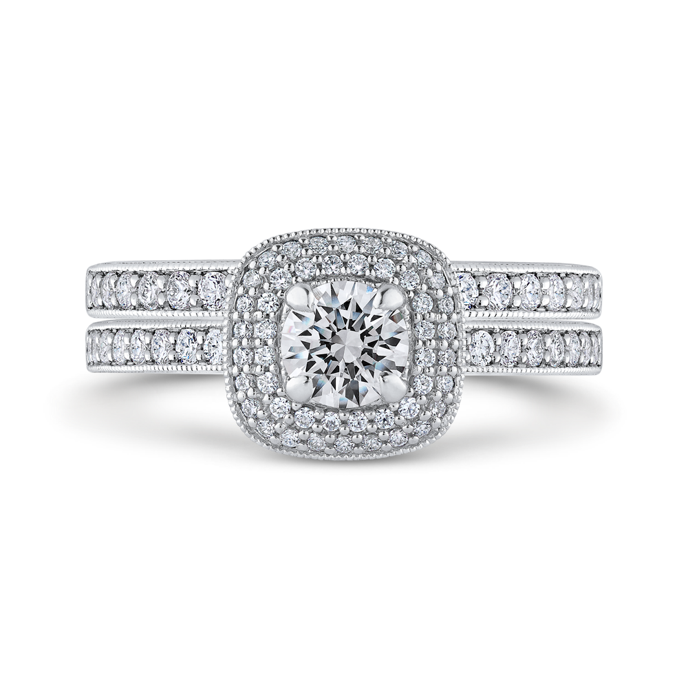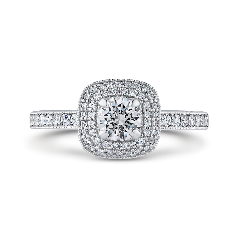 Round Diamond Double Halo Cathedral Style Engagement Ring in 14K White Gold