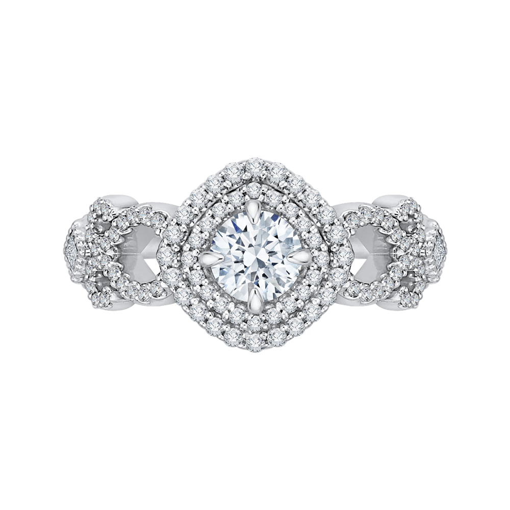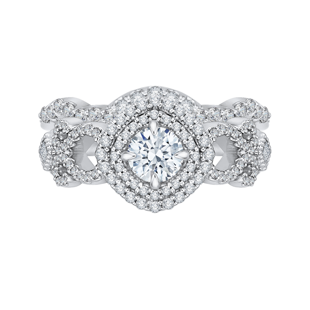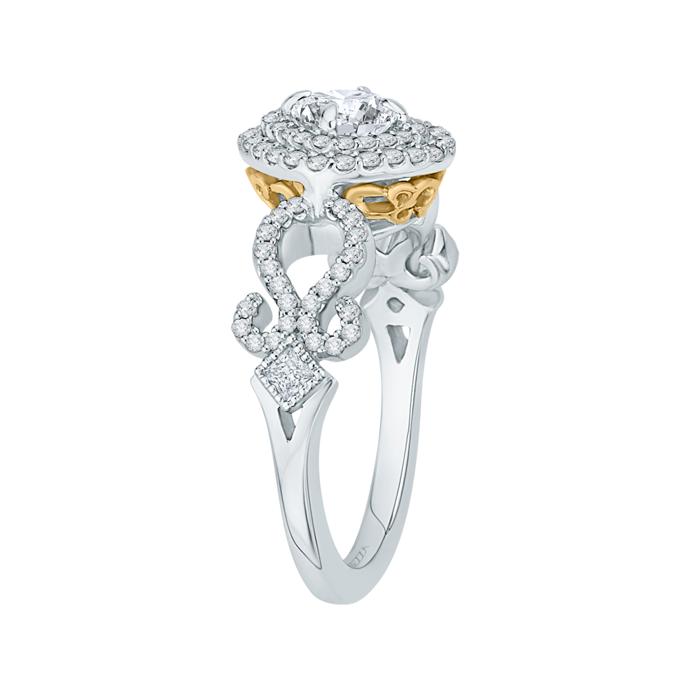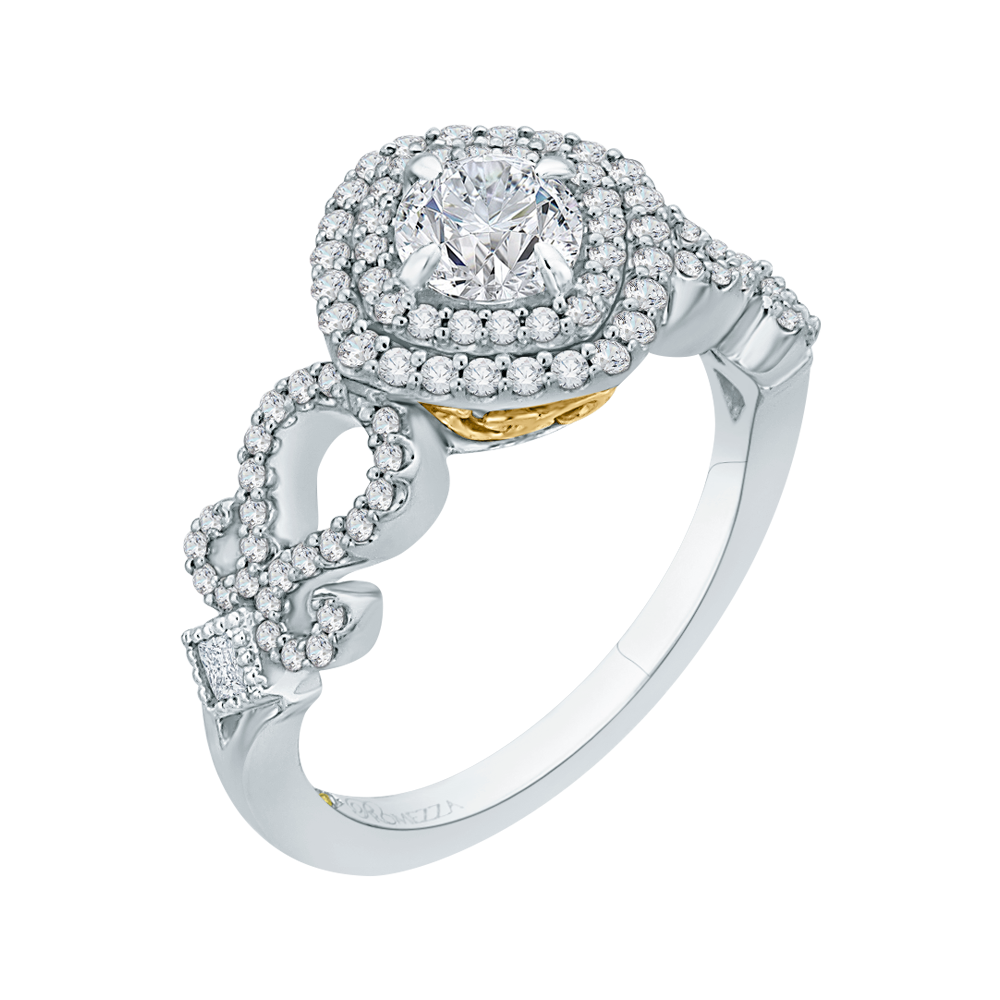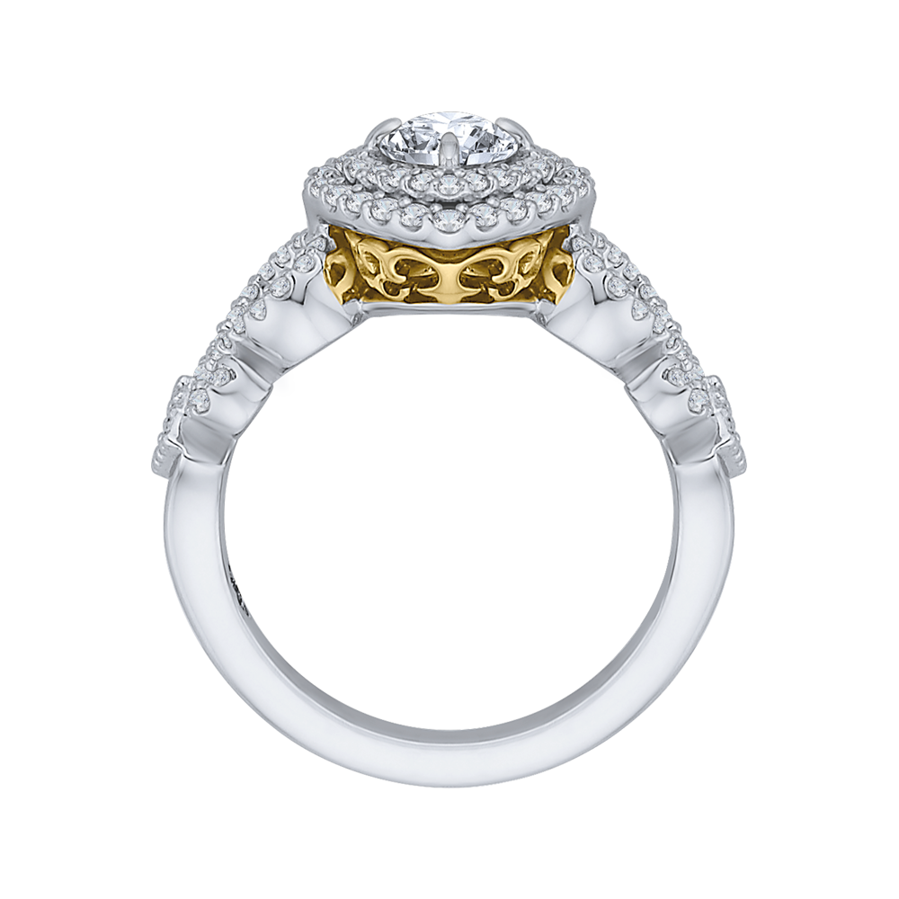 Round Diamond Double Halo Engagement Ring in 14K Two Tone Gold