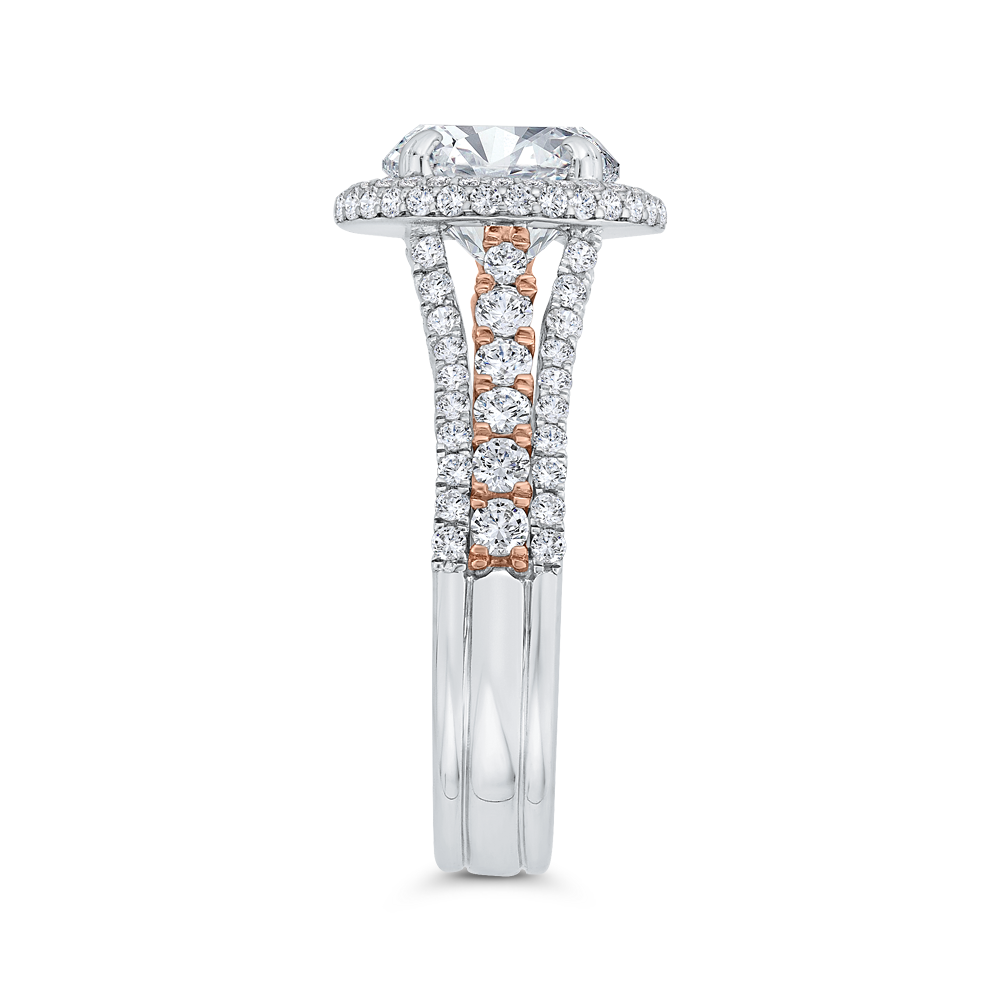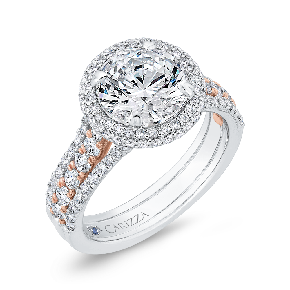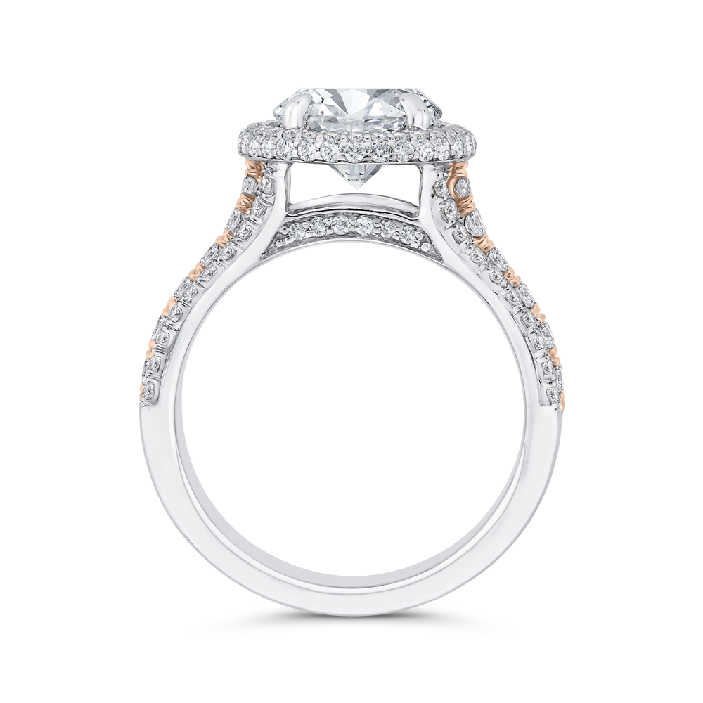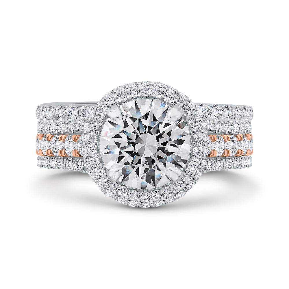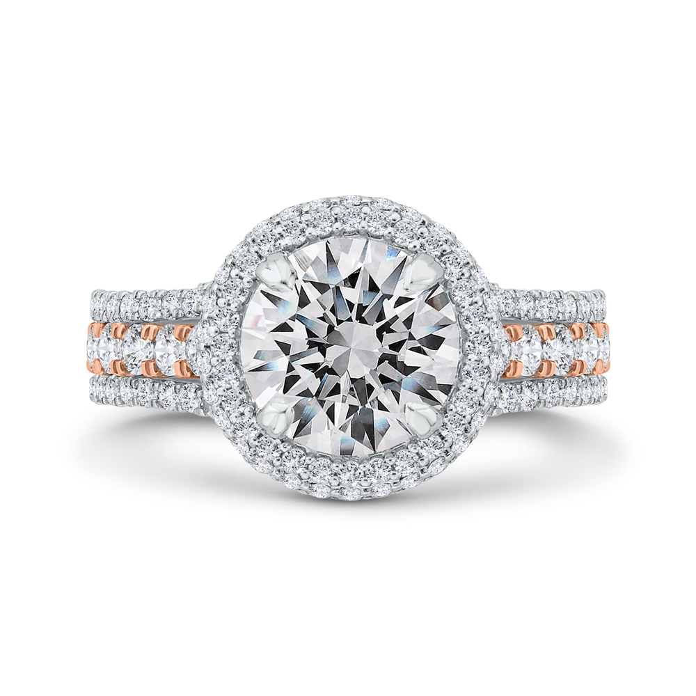 Round Diamond Double Halo Engagement Ring in 14K Two Tone Gold (Semi-Mount)