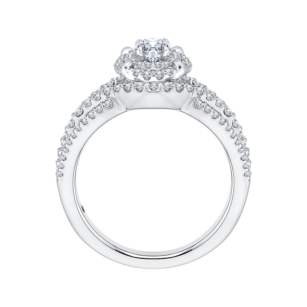 Round Diamond Double Halo Engagement Ring in 14K White Gold
