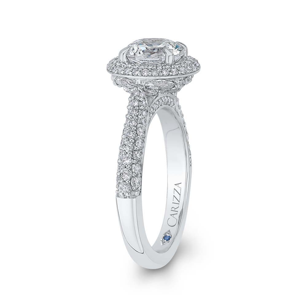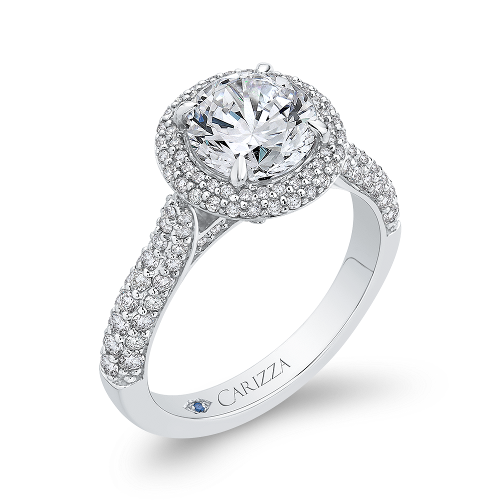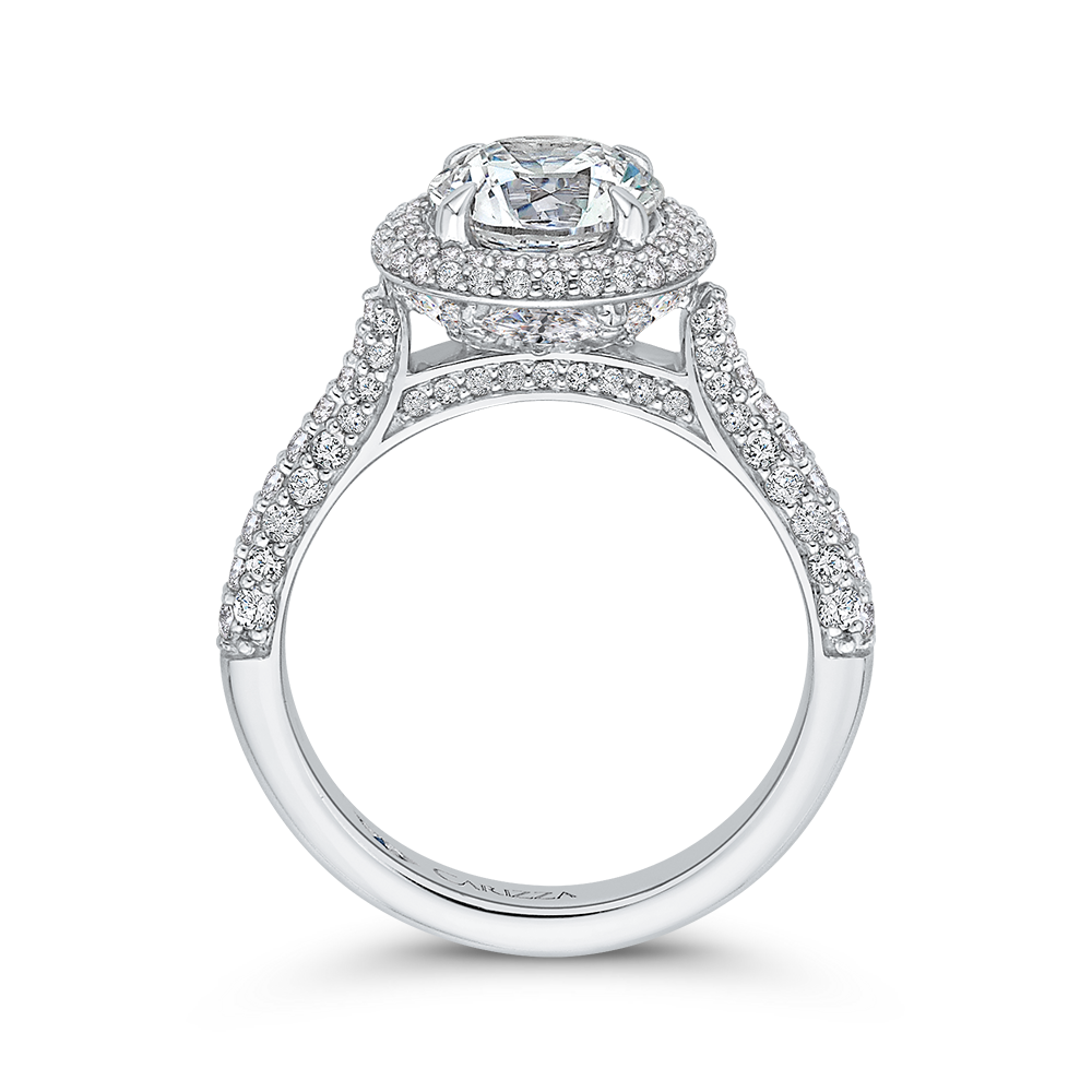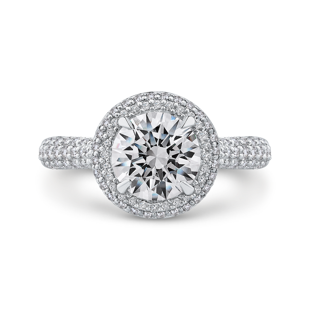 Round Diamond Double Halo Engagement Ring in 14K White Gold (Semi-Mount)