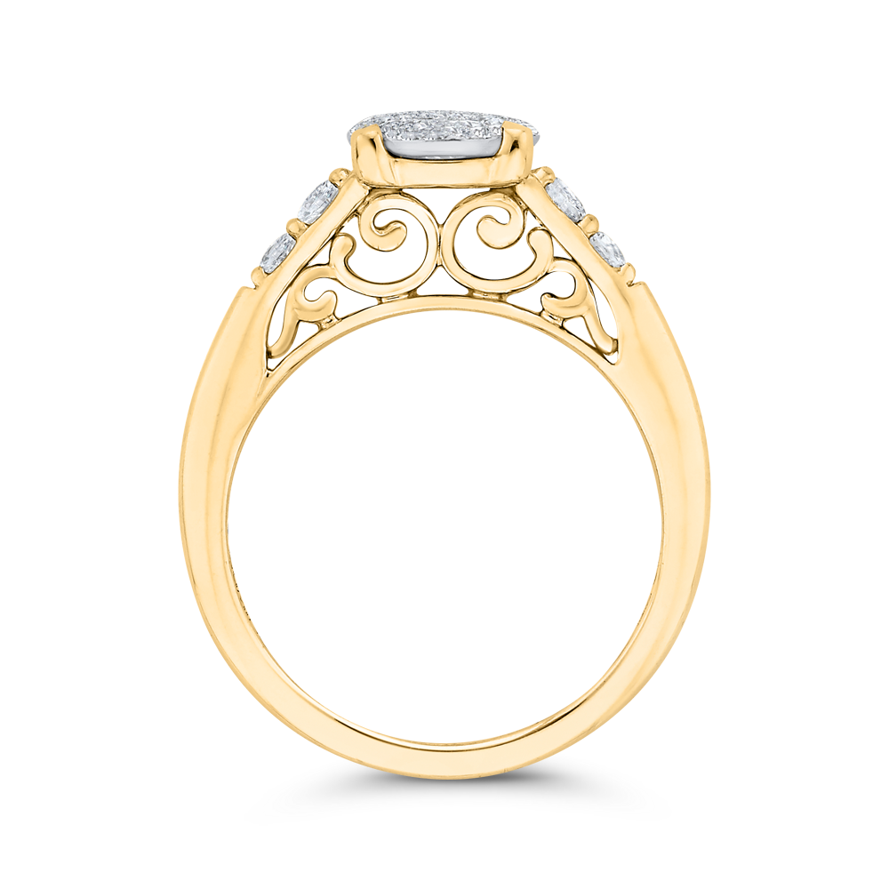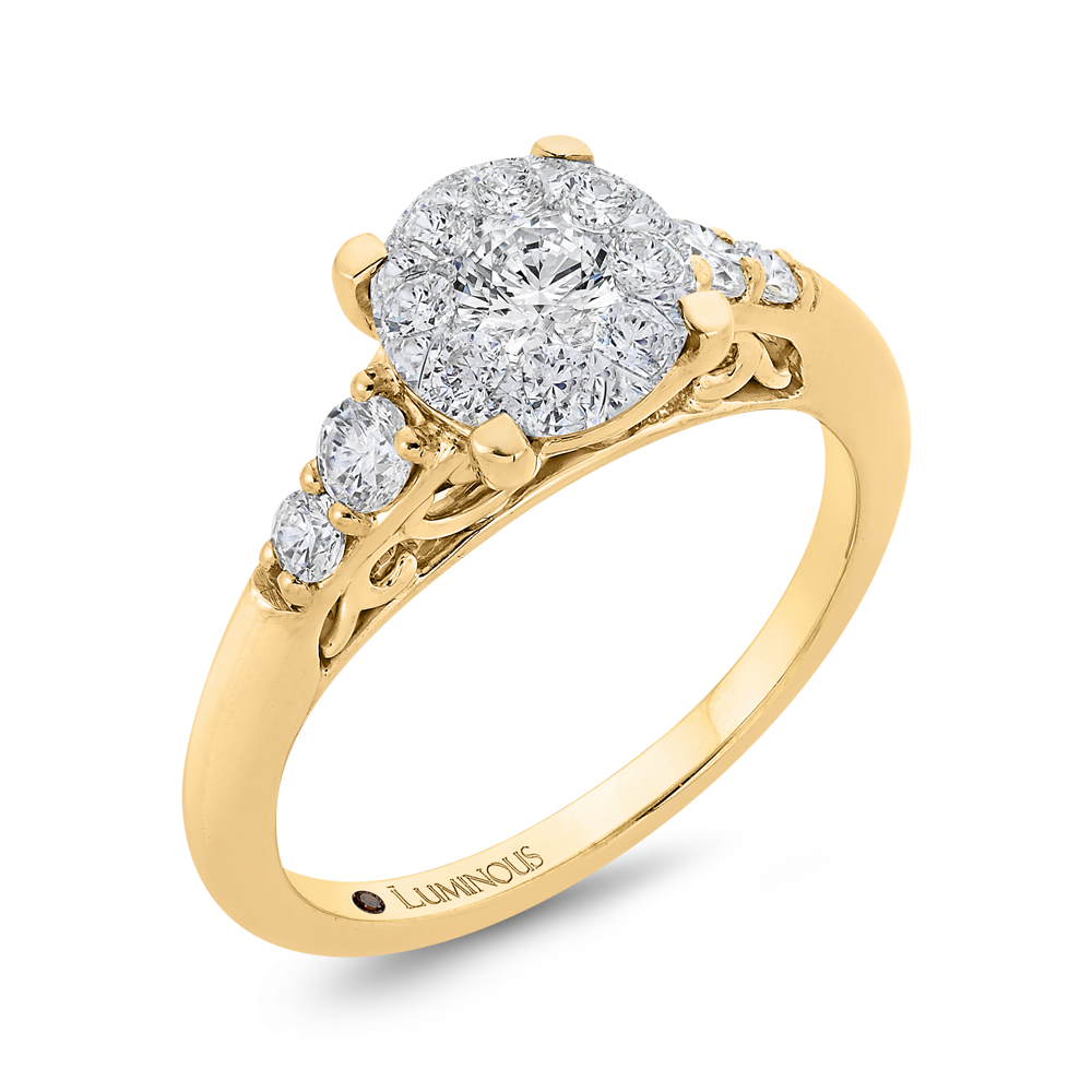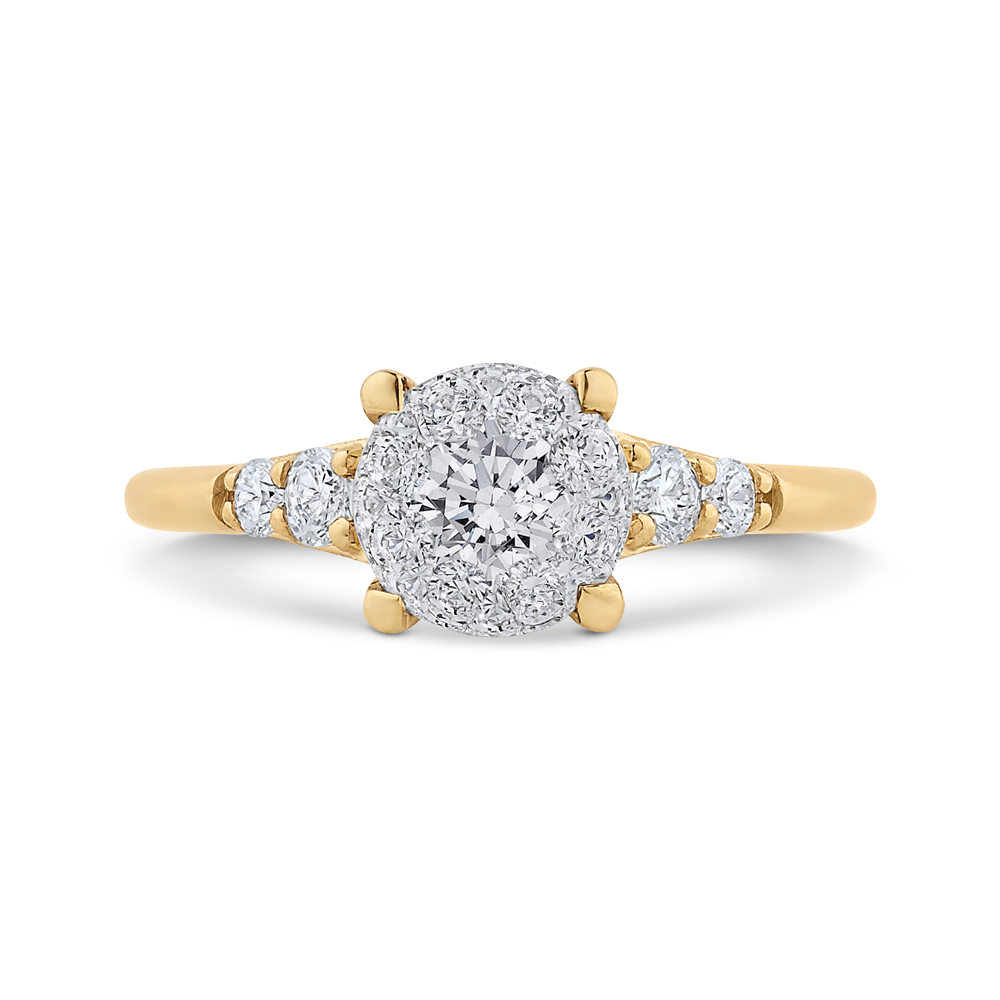 This exquisite round diamond engagement ring exudes timeless elegance and sophistication. Crafted in 14K two tone gold, the contrasting colors of white and yellow gold beautifully complement the brilliance of the center diamond. A symbol of everlasting love and commitment, this ring is sure to capture her heart.