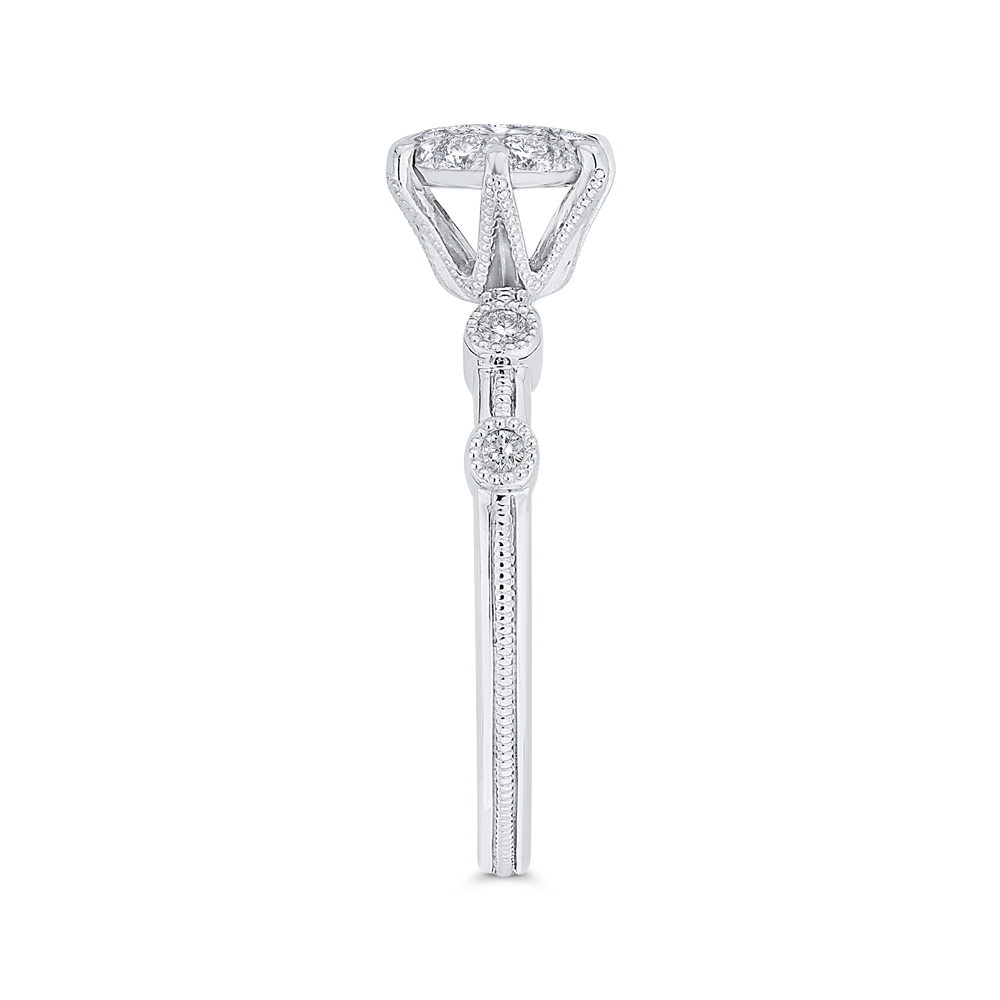 This exquisite round diamond engagement ring in 14K white gold exudes timeless elegance and sophistication. The brilliant round diamond is set in a classic four-prong setting, allowing the stone to sparkle and shine with unparalleled beauty. A symbol of everlasting love and commitment, this stunning ring is the perfect choice for your special moment.