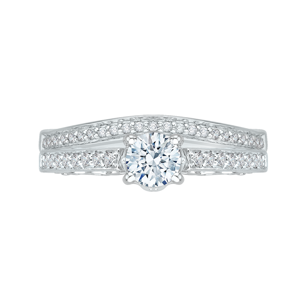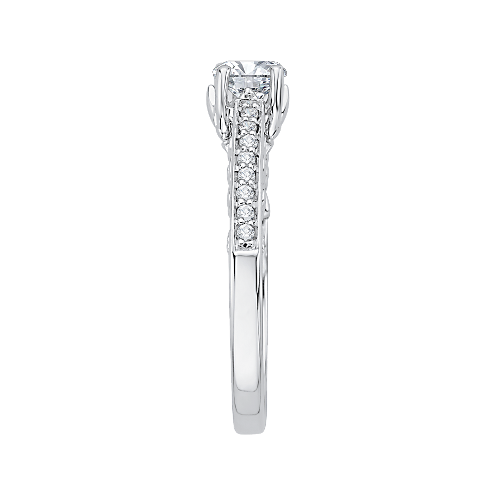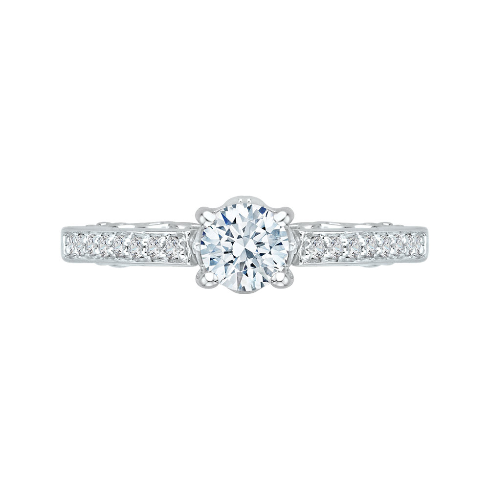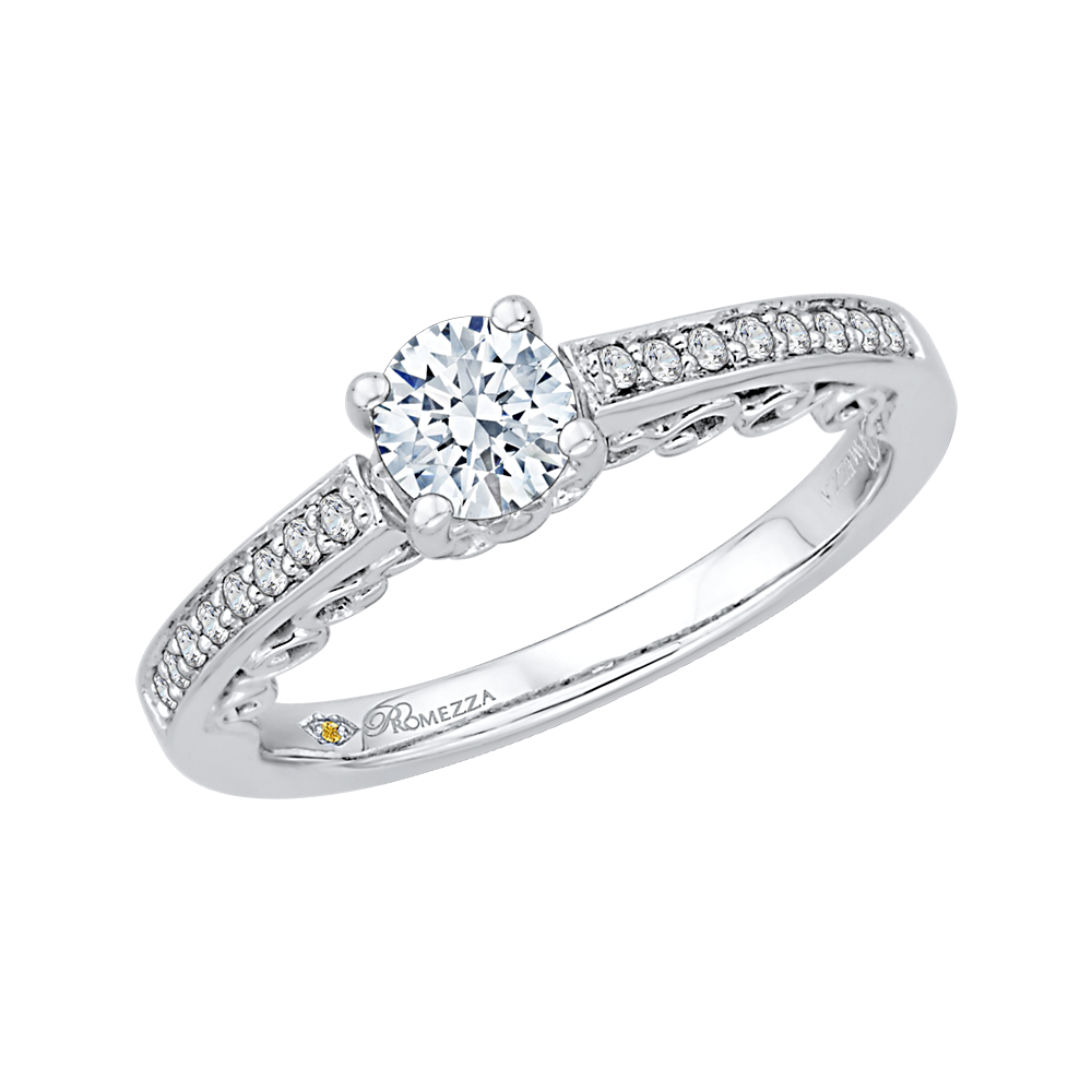Elegantly crafted in 14K white gold, this exquisite engagement ring features a stunning round diamond at its center. The timeless design and classic setting make it the perfect symbol of everlasting love and commitment. A truly timeless piece that will be cherished for a lifetime.