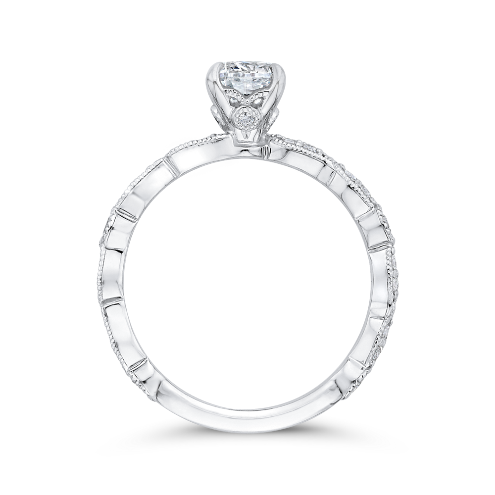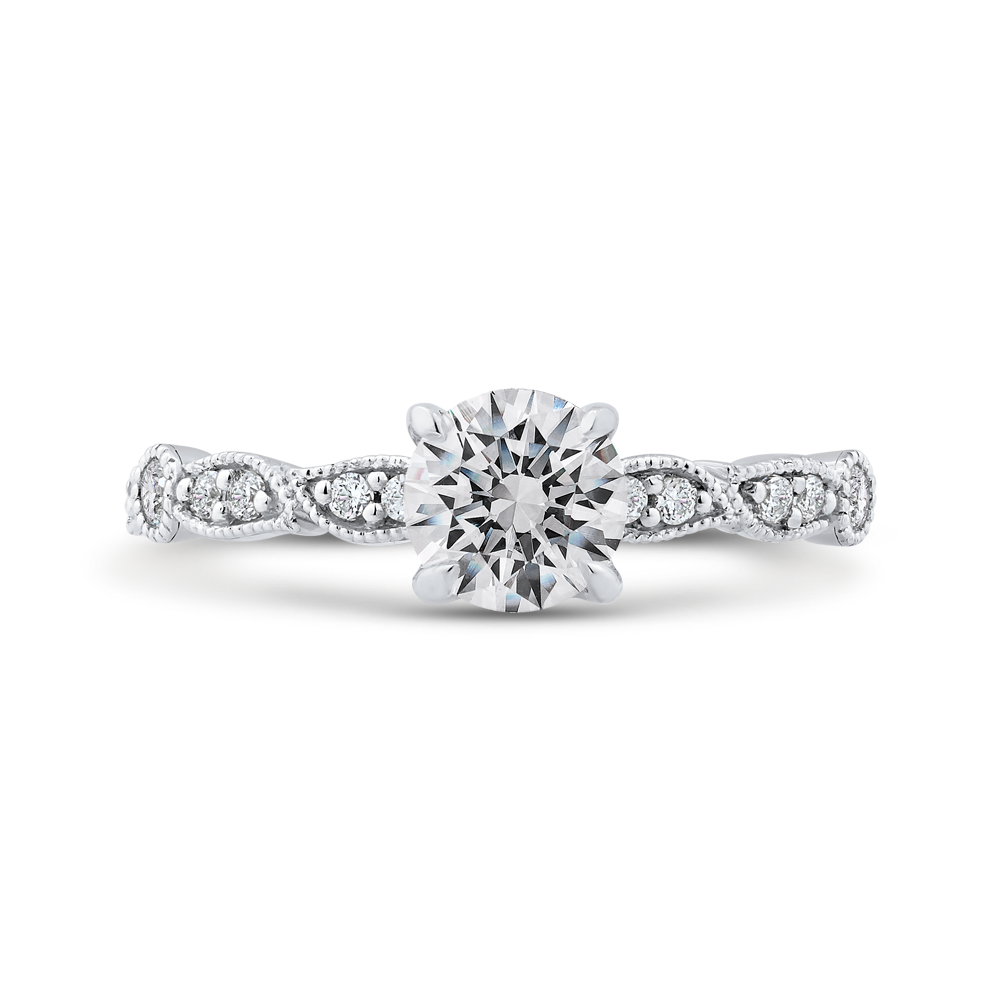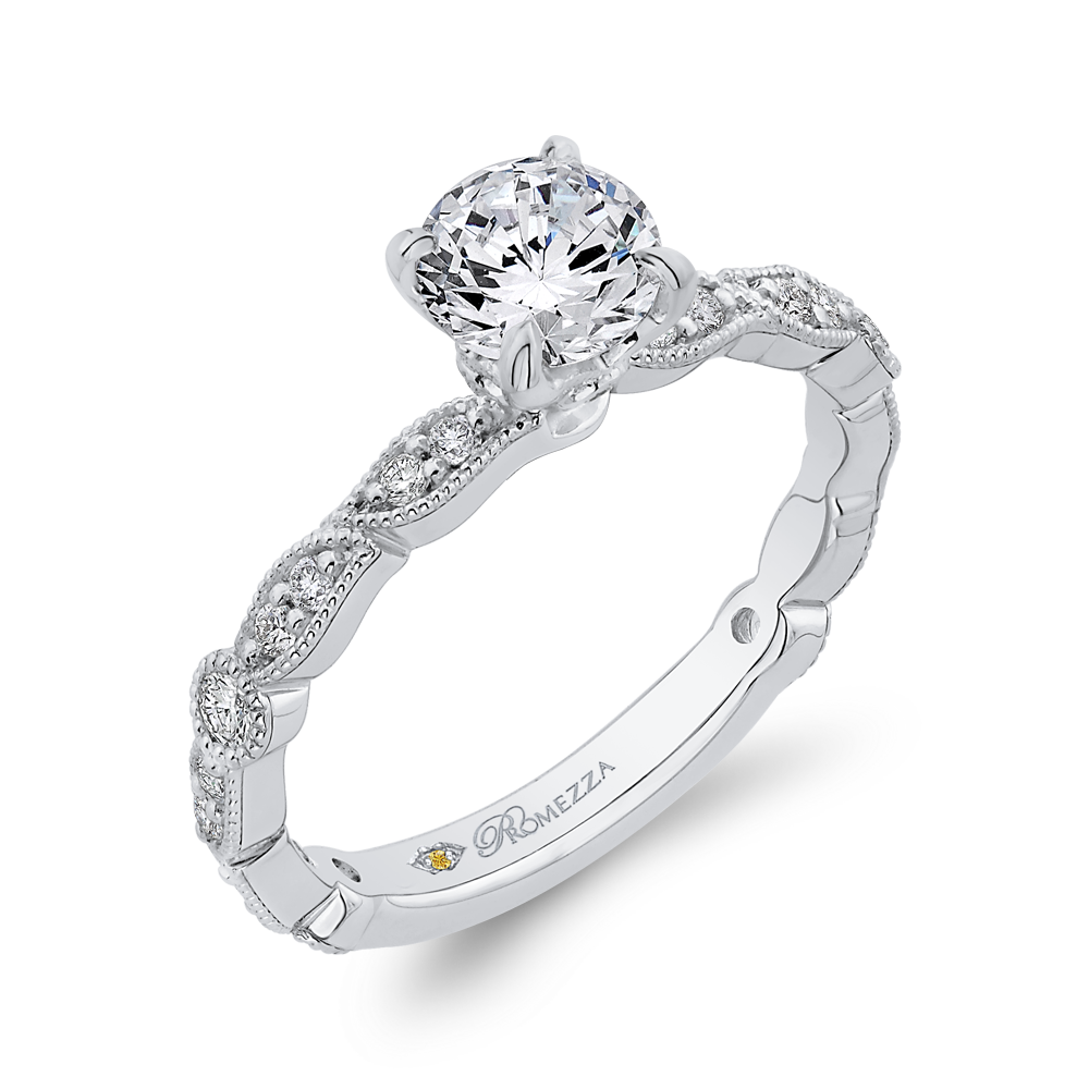 This exquisite round diamond engagement ring in 14K white gold exudes timeless elegance and sophistication. The brilliant round diamond is set in a classic four-prong setting, allowing the stone to sparkle and shine with unparalleled beauty. A symbol of everlasting love and commitment, this stunning ring is the perfect choice for your special moment.