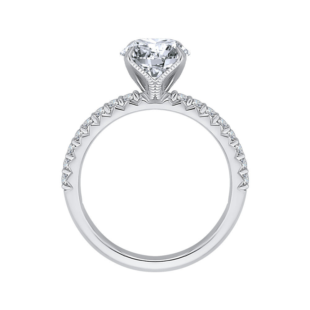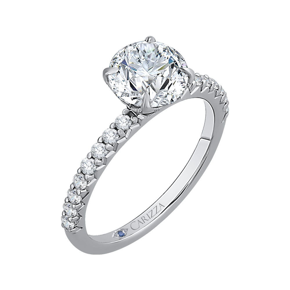 This exquisite round diamond engagement ring in 14K white gold is the epitome of timeless elegance. The semi-mount setting allows you to choose the perfect center stone to create a personalized and stunning piece. A symbol of everlasting love and commitment, this ring is sure to capture the heart of your beloved.