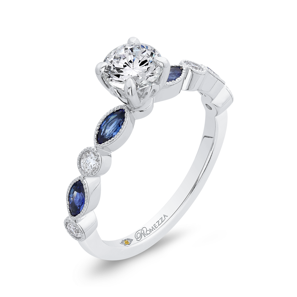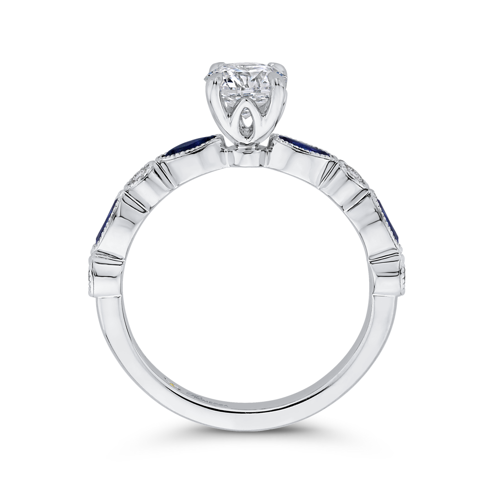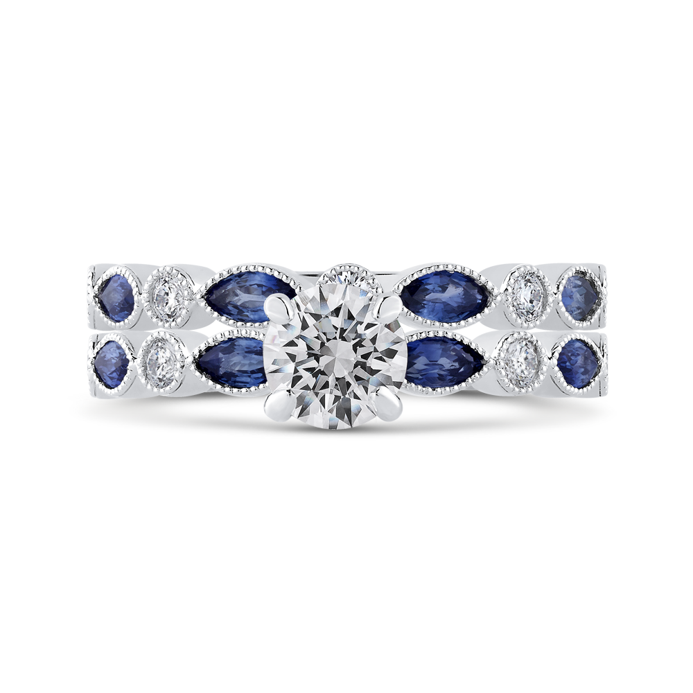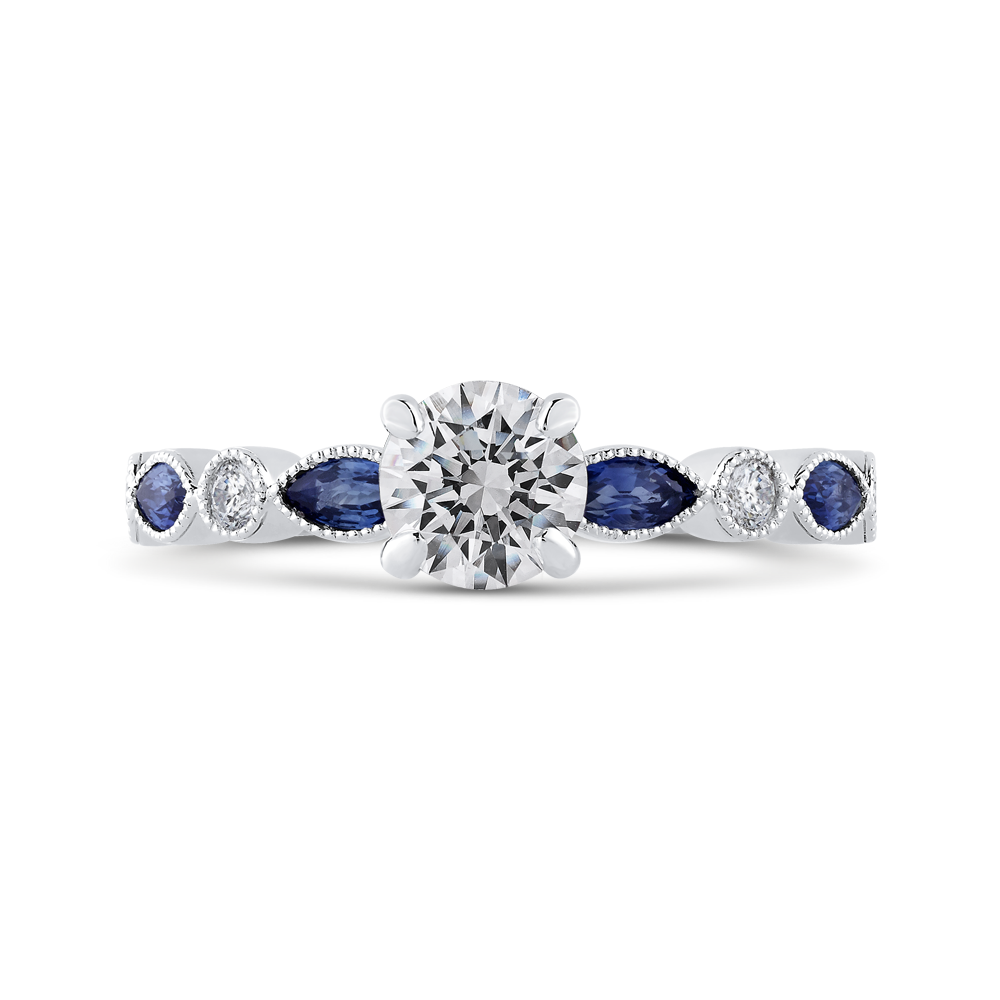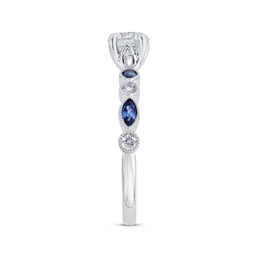 Round Diamond Engagement Ring with Pear Cut Sapphire in 14K White Gold