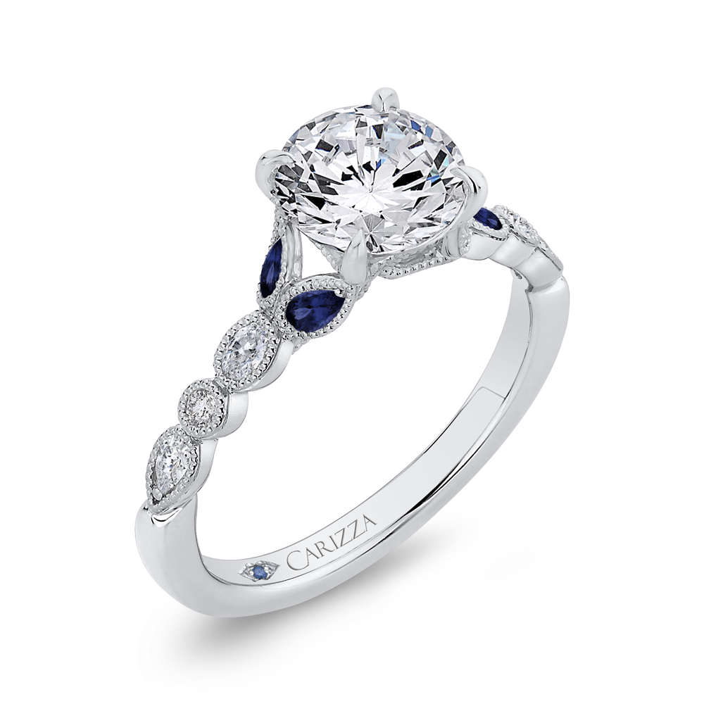 Round Diamond Engagement Ring with Sapphire in 14K White Gold (Semi-Mount)
