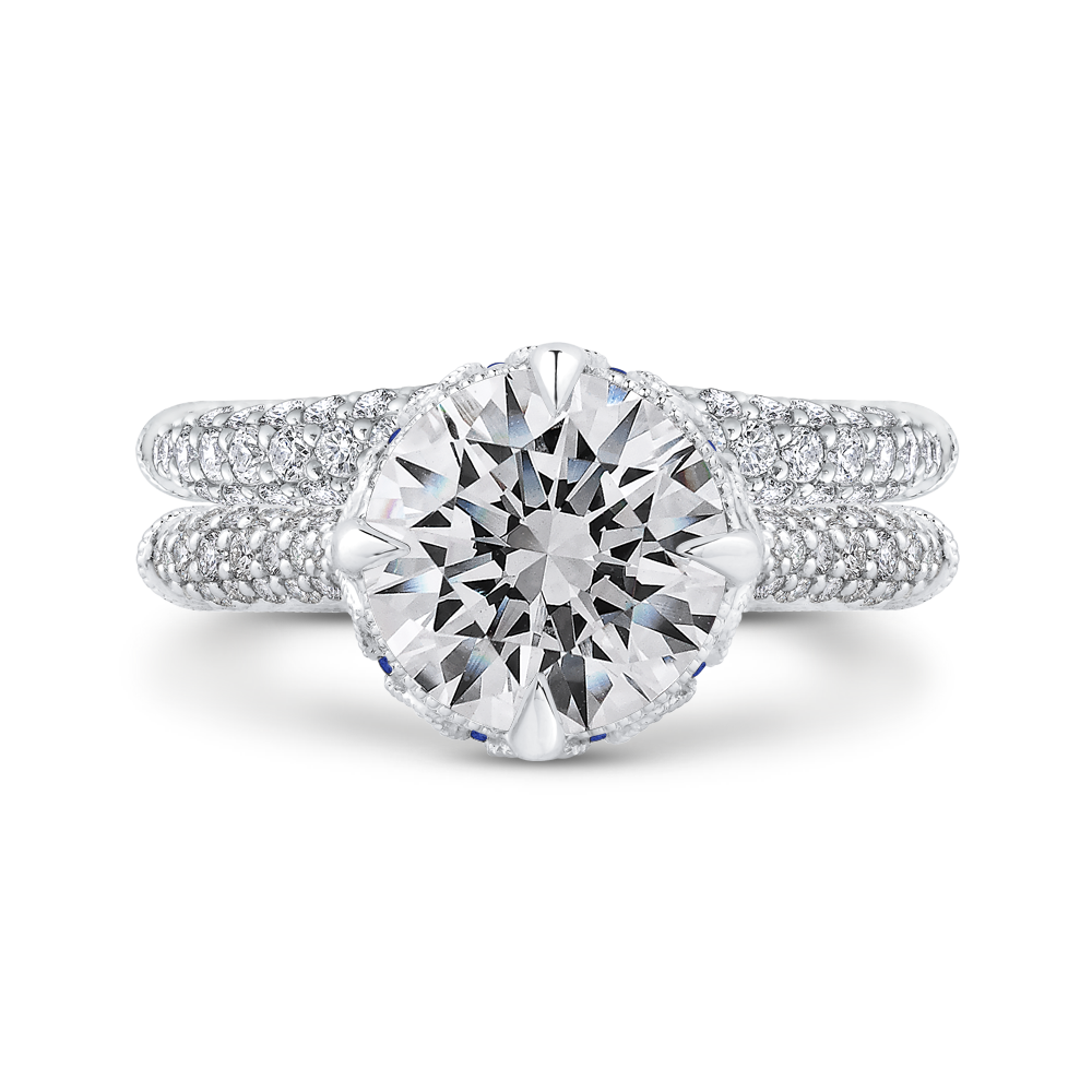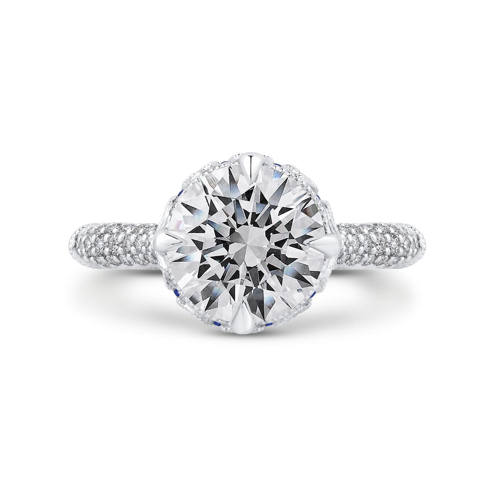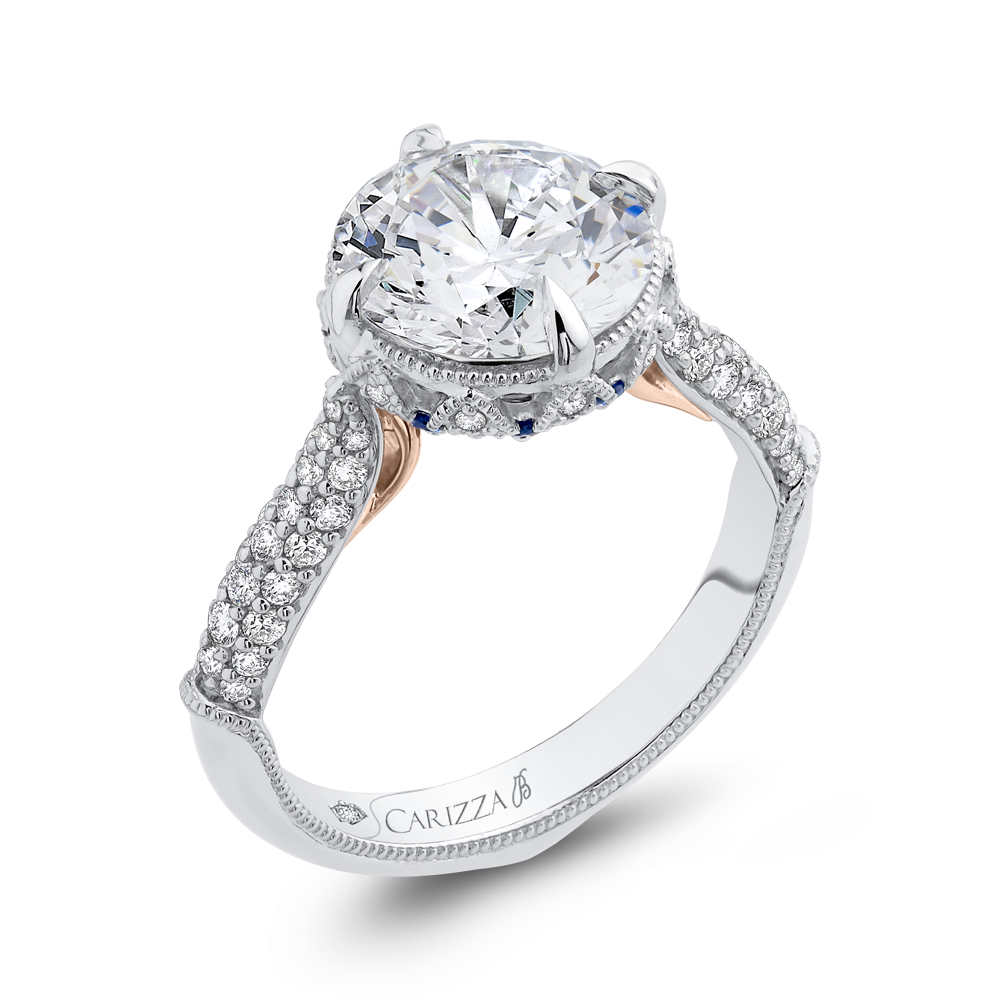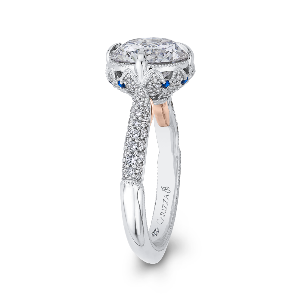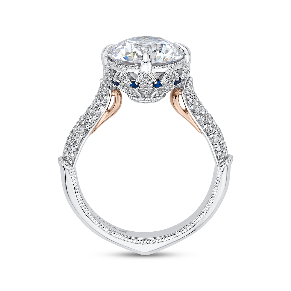 Round Diamond Engagement Ring with Sapphire in 18K Two-Tone Gold (Semi-Mount)