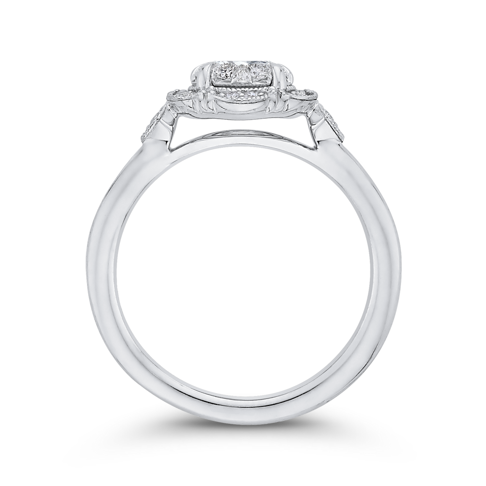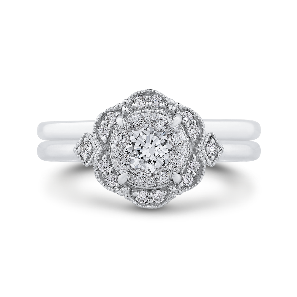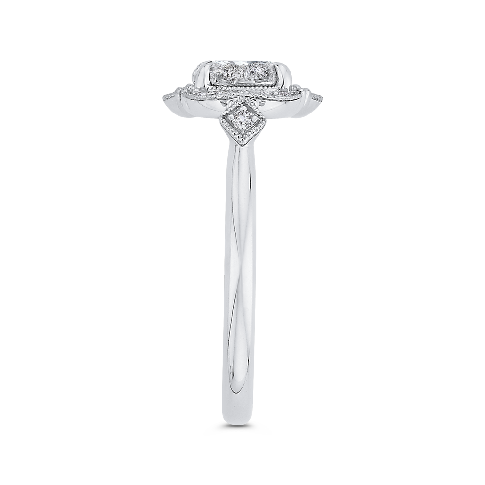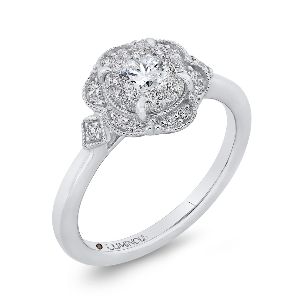 Round Diamond Floral Engagement Ring in 14K White Gold