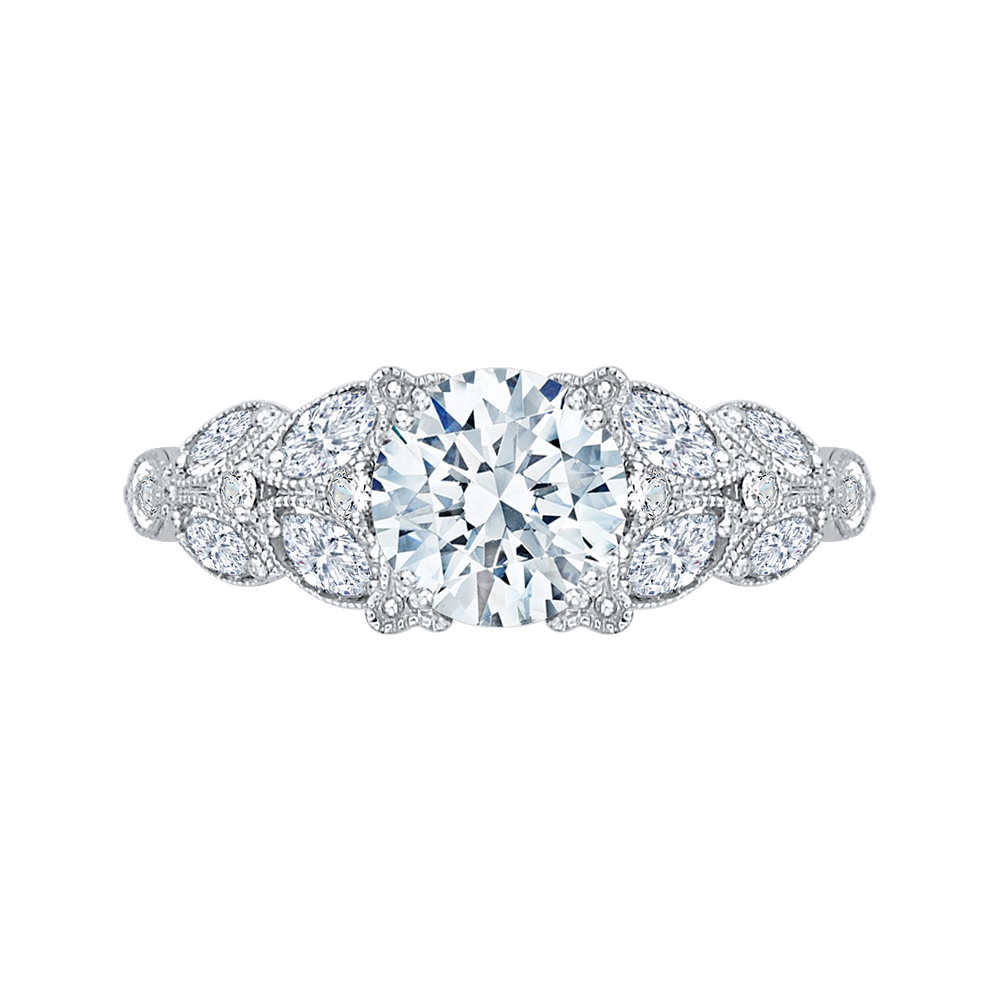 Round Diamond Floral Engagement Ring in 14K White Gold (Semi-Mount)