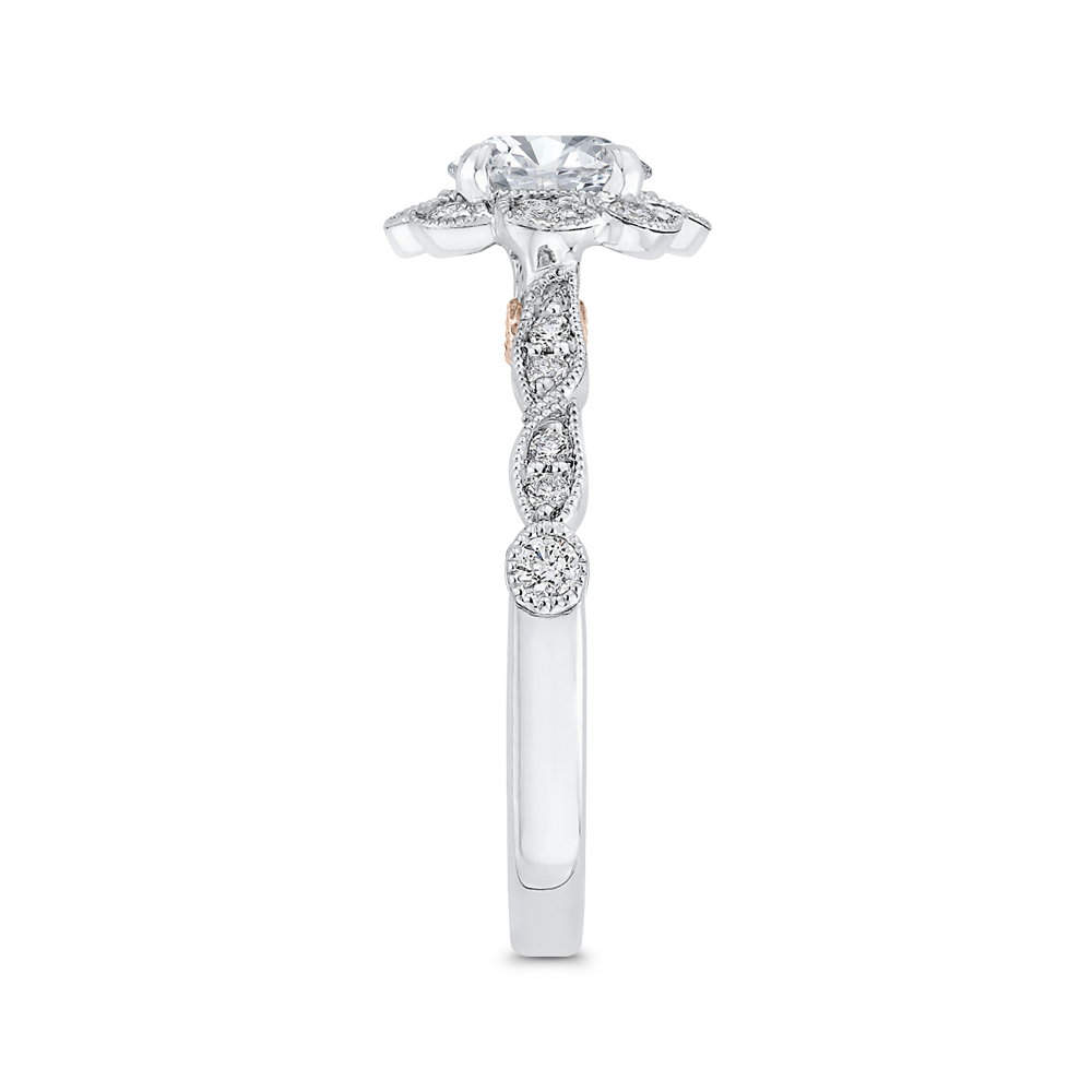 Round Diamond Floral Halo Engagement Ring in 14K Two Tone Gold (Semi-Mount)
