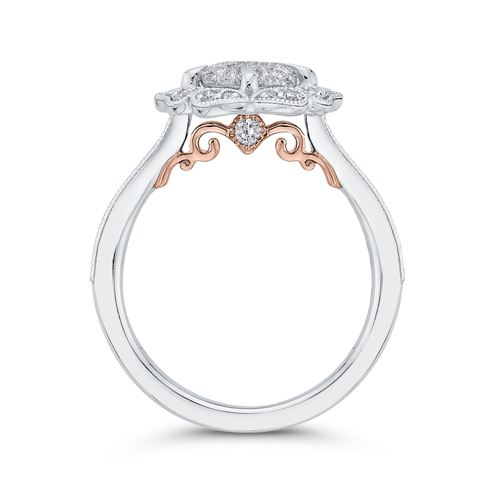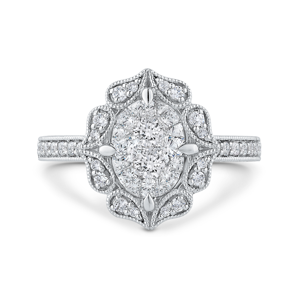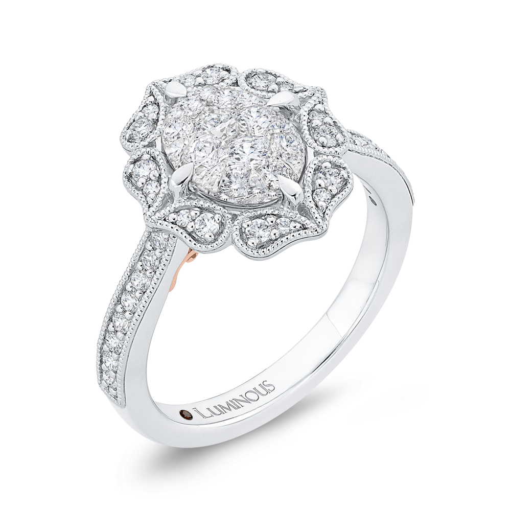 Round Diamond Flower Engagement Ring in 14K White Gold