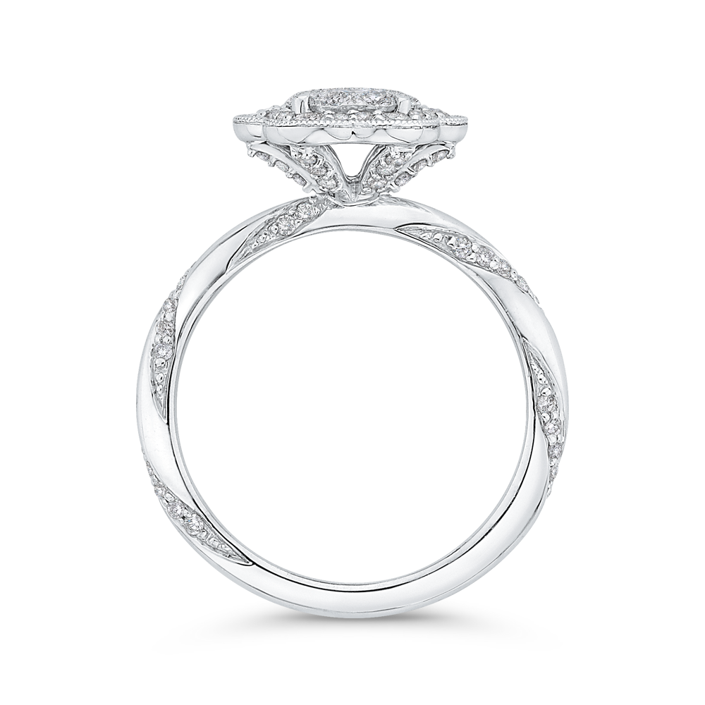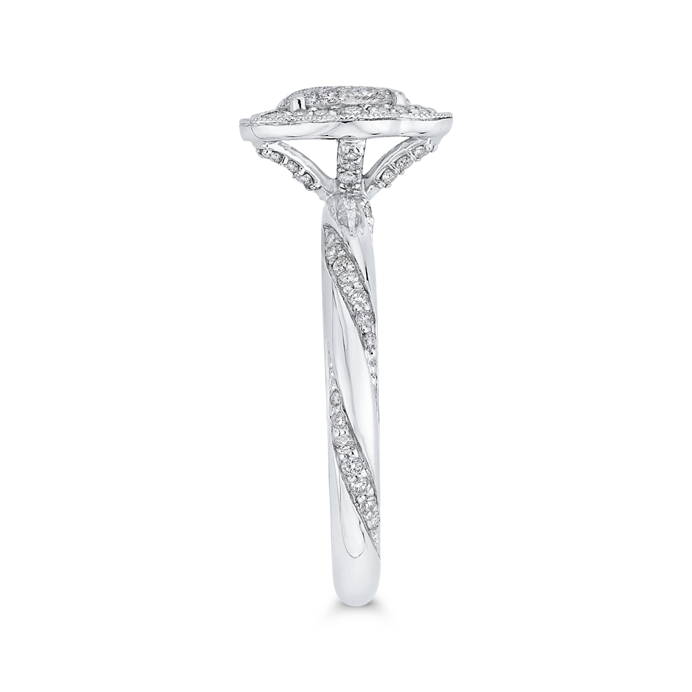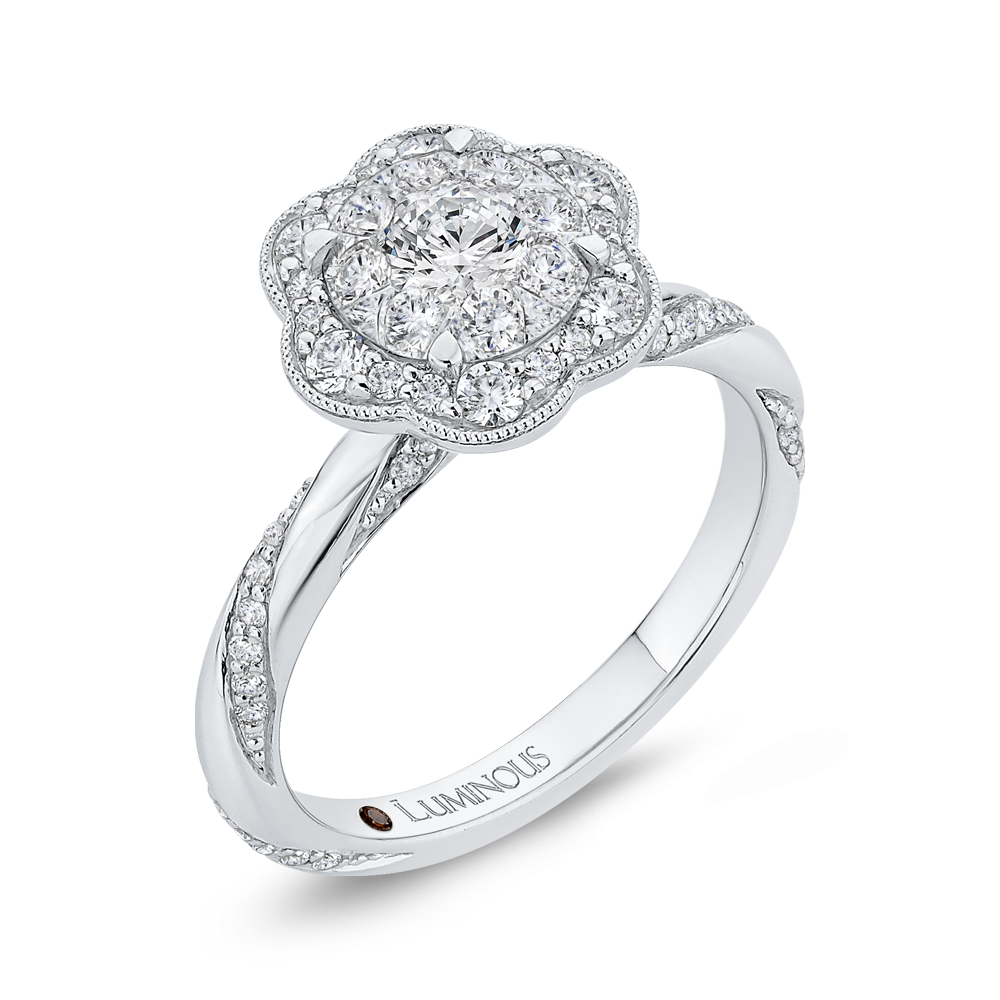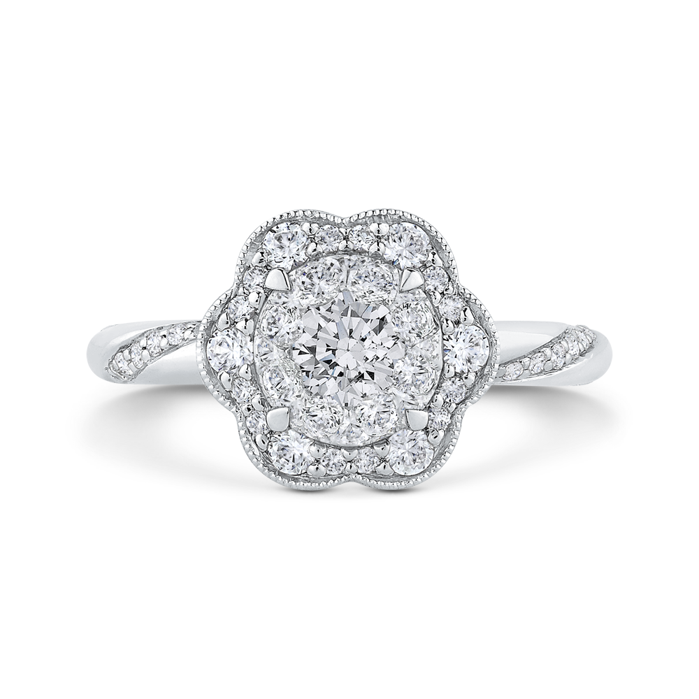 Round Diamond Flower Style Engagement Ring in 14K White Gold