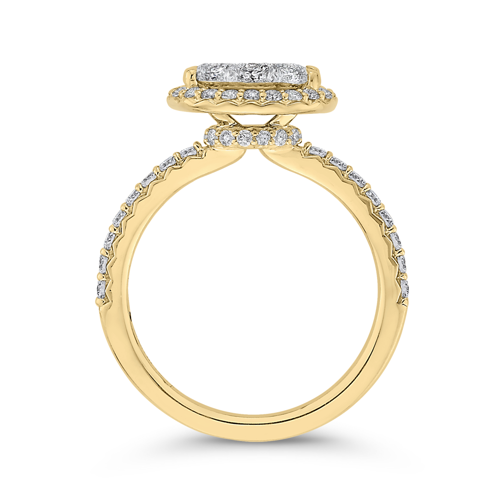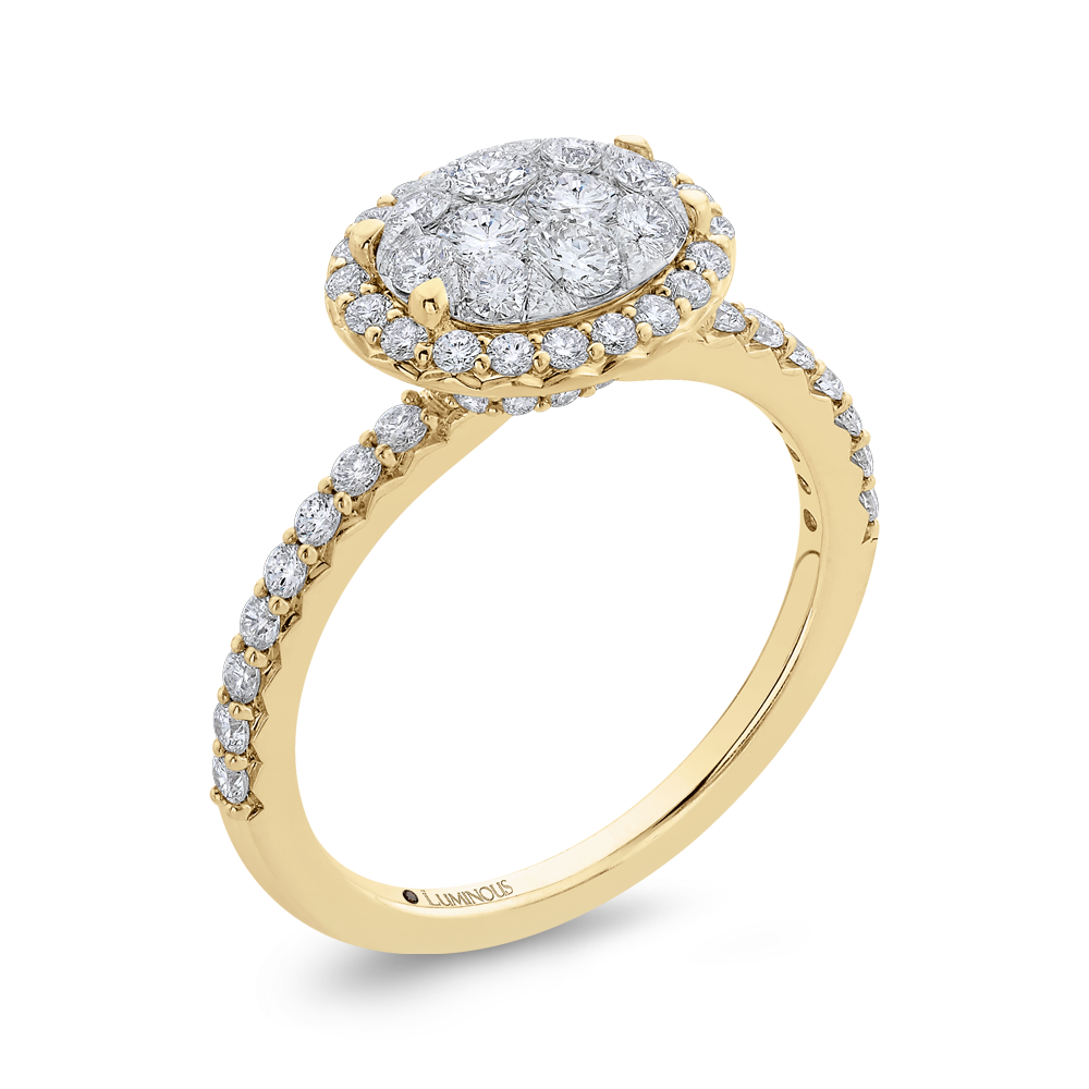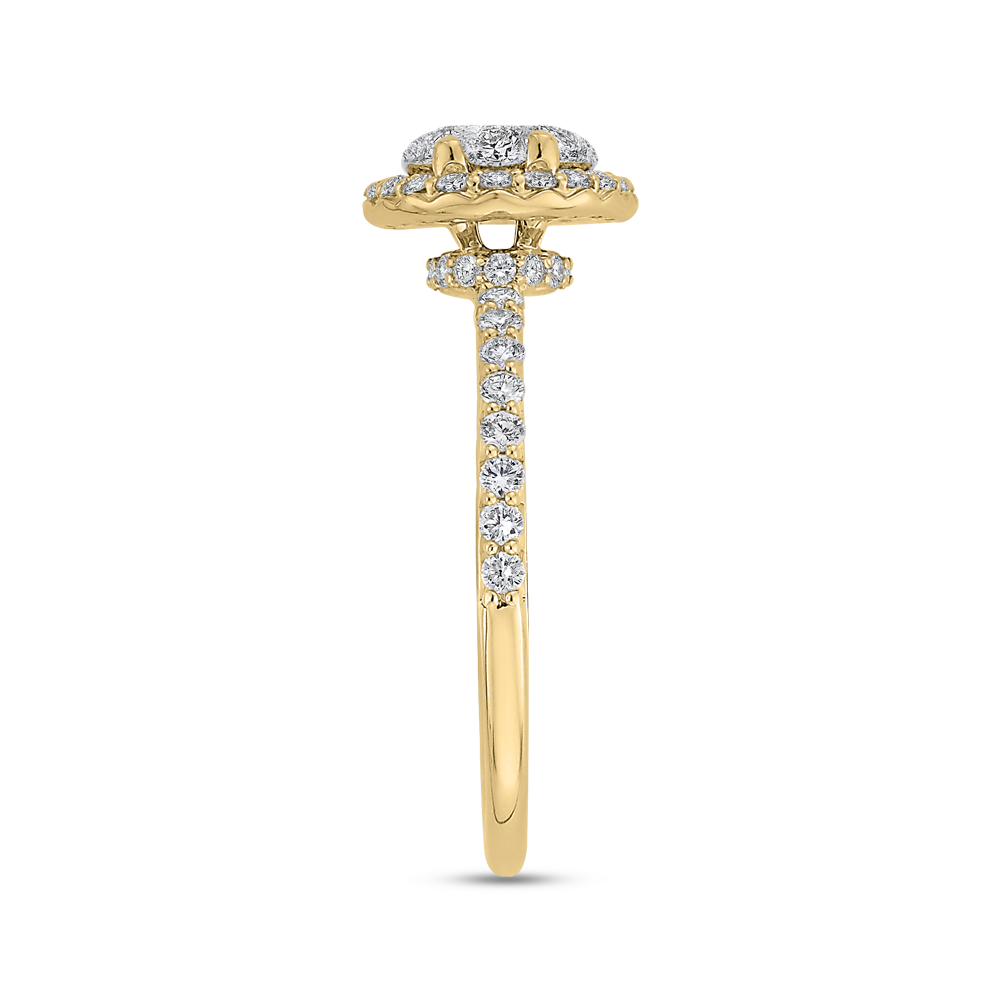 This exquisite round diamond halo engagement ring exudes timeless elegance and sophistication. Crafted in 14K two tone gold, the dazzling center diamond is surrounded by a halo of smaller diamonds, creating a stunning and radiant display of sparkle. A perfect symbol of everlasting love and commitment, this ring is sure to capture the heart of your beloved.