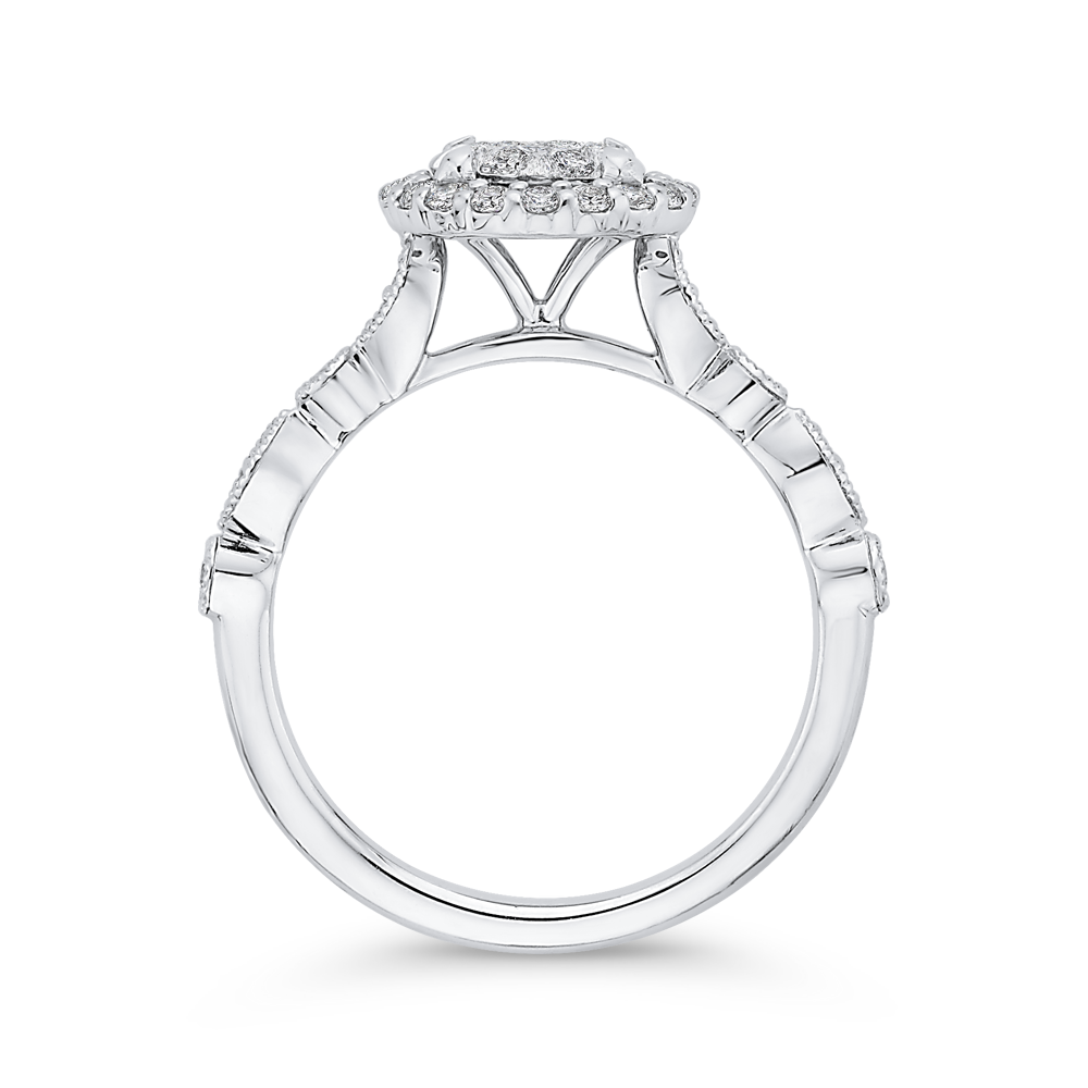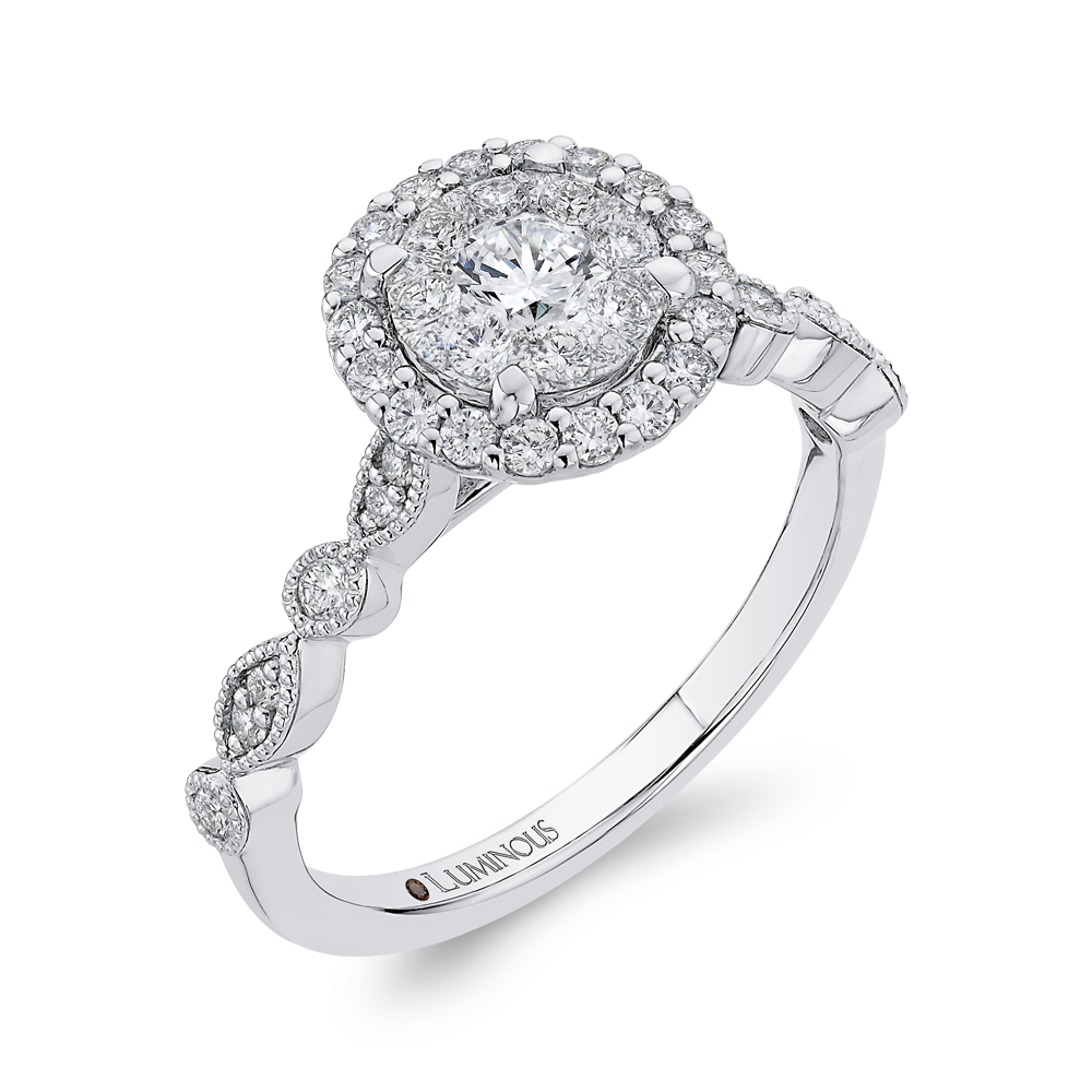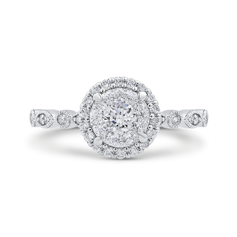 Round Diamond Halo Engagement Ring in 14K White Gold
