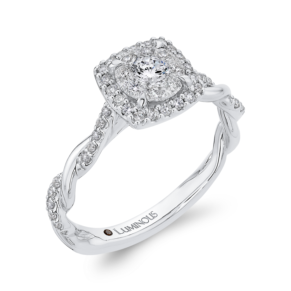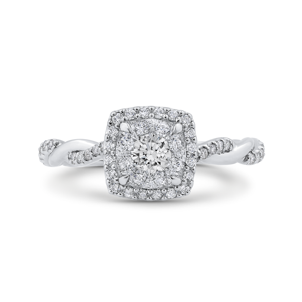 Round Diamond Halo Engagement Ring in 14K White Gold