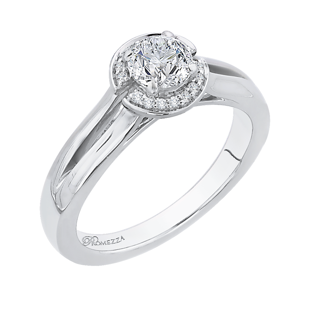 Round Diamond Halo Engagement Ring in 14K White Gold
