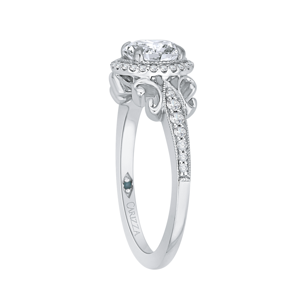 Round Diamond Halo Engagement Ring in 14K White Gold (Semi-Mount)