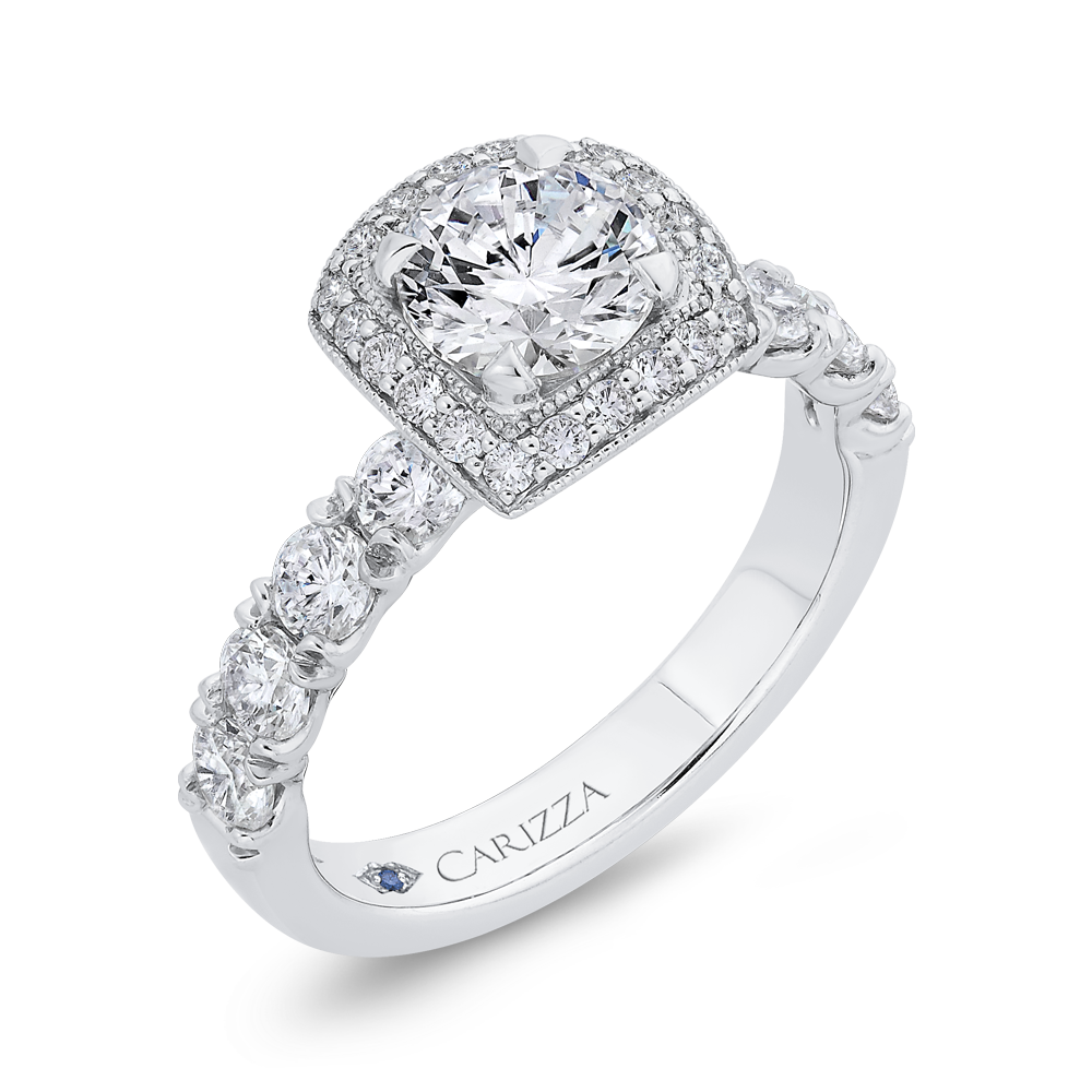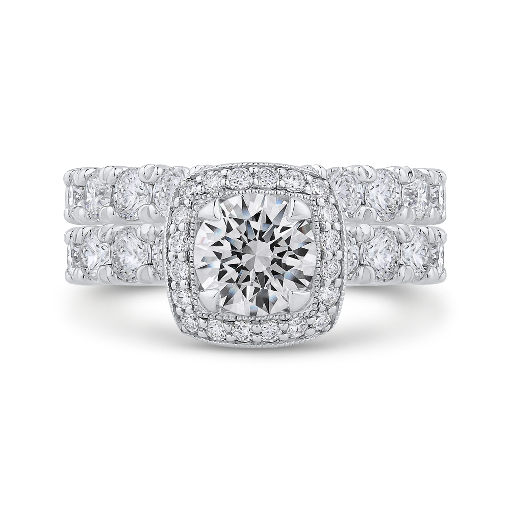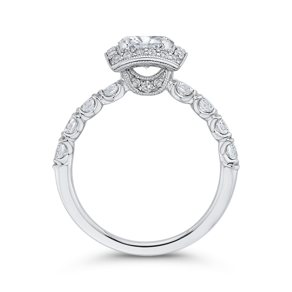 Round Diamond Halo Engagement Ring in 14K White Gold (Semi-Mount)